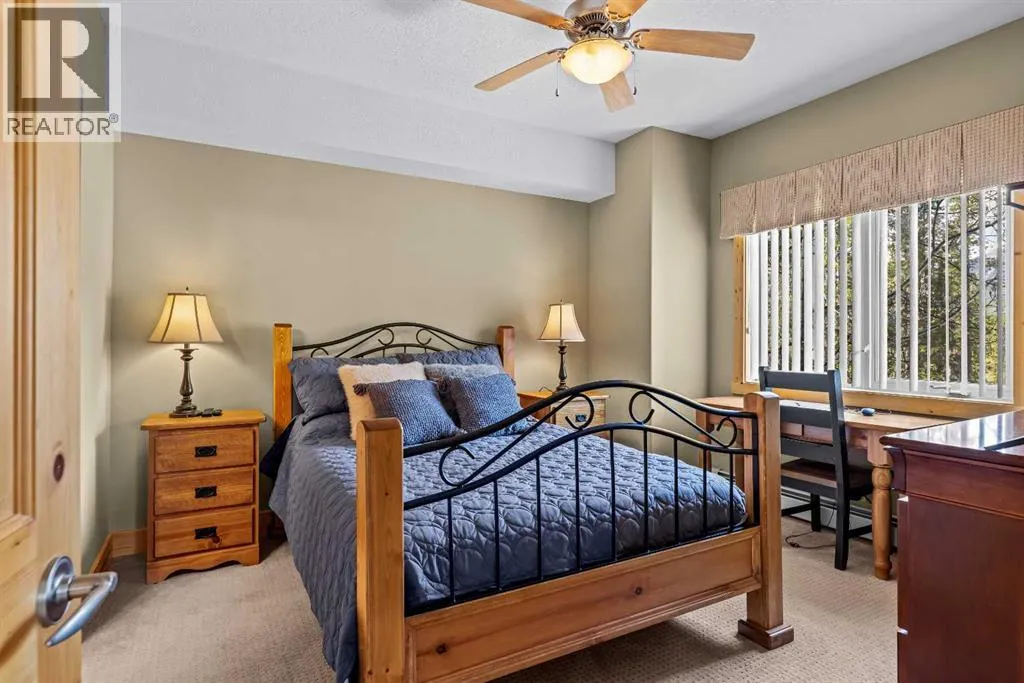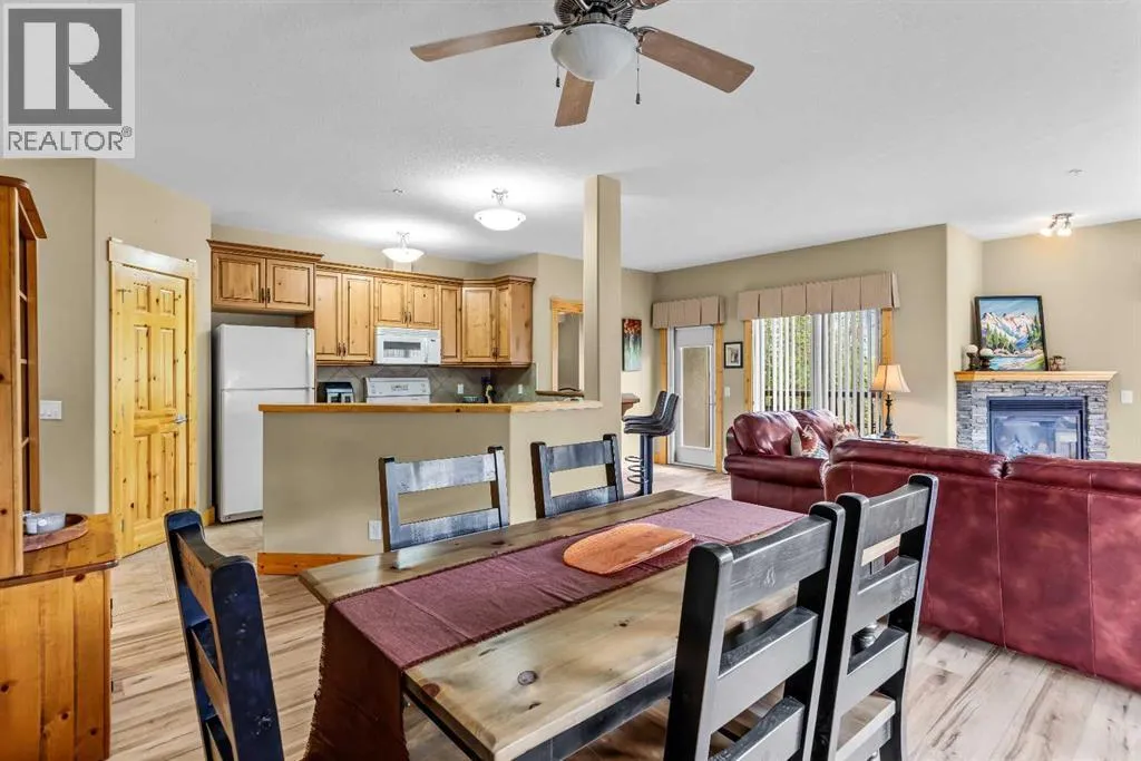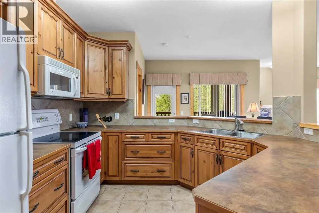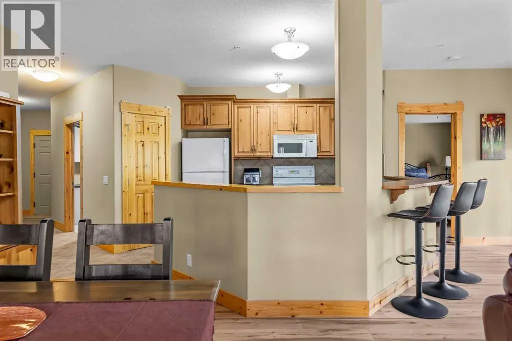 This thoughtfully laid out 2-bedroom, 2-bathroom corner unit offers 1,237 sq ft of bright, open-concept living space, featuring two spacious primary suitesâeach with its own ensuite. The main living area is enhanced by new luxury vinyl plank flooring, while two peaceful decks provide quiet outdoor retreats backing onto serene wooded greenspaceâjust steps from the Bow River. Owners enjoy access to a first-class clubhouse with an indoor pool, indoor/outdoor hot tub, sauna, steam room, fitness centre, theatre, event space, and games area with billiards, table tennis, and shuffleboard. Complete with titled underground parking and a secure storage locker, this is low-maintenance living in one of Canmoreâs finest adult communities. Furnishings Negotiable. -Listing Agents are Related to the Sellers. (id:27476)