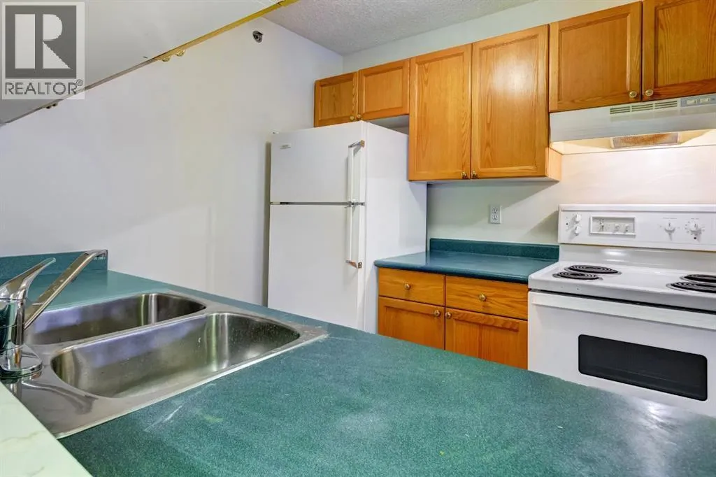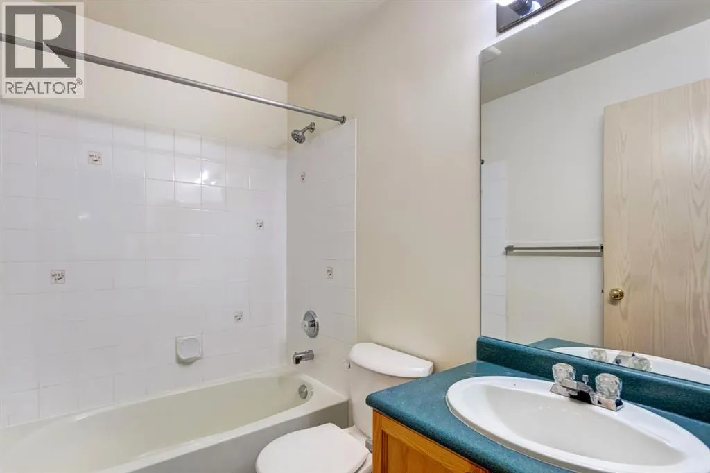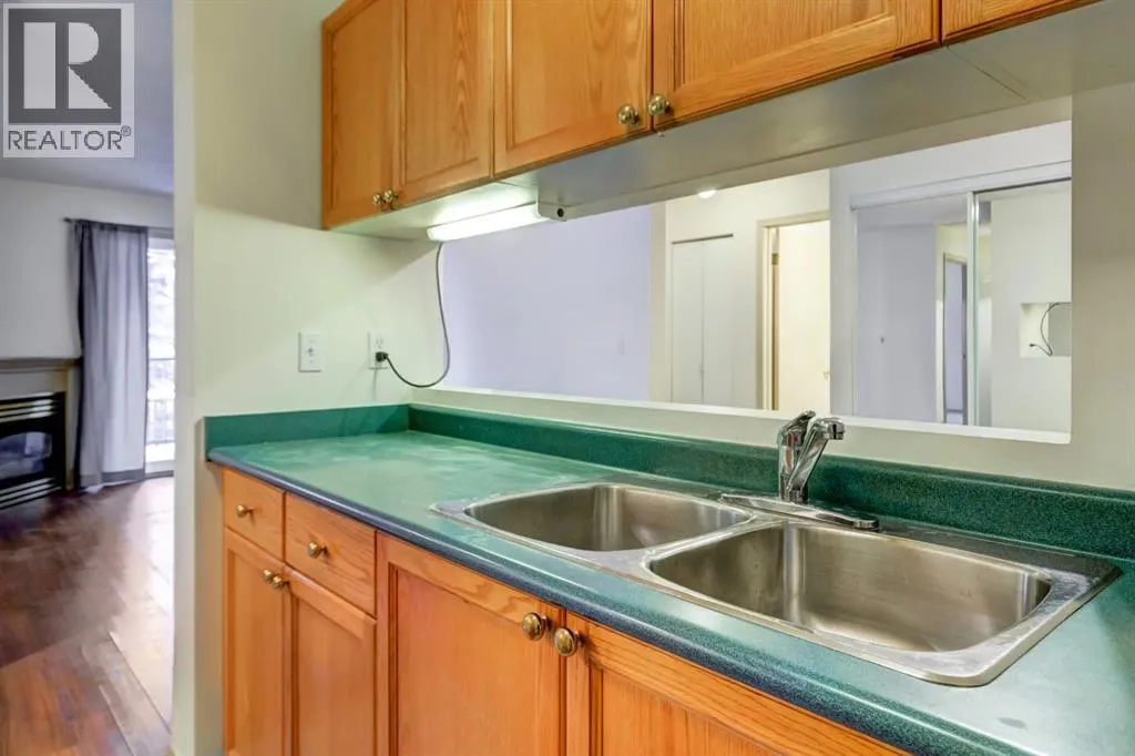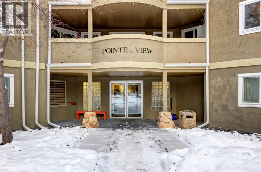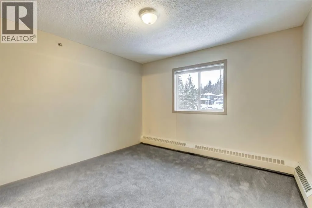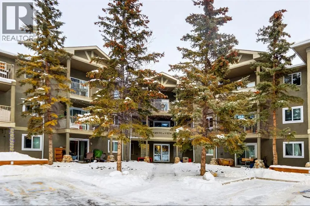 Spacious two bedroom apartment with mountain views. This thoughtfully designed two bedroom, two bathroom residence is located in the well maintained Pointe of View complex and features new flooring throughout. The open concept layout offers a welcoming living space centered around a cozy gas fireplace, complemented by large windows that frame panoramic mountain views. Step outside to a generous patio, perfect for enjoying fresh mountain air. The primary suite features a walk through closet and a private ensuite, while a second well proportioned bedroom and full bathroom provide comfortable accommodations for family or guests. Additional highlights include in suite laundry and assigned parking. Situated in a low density neighbourhood, residents enjoy access to an outdoor playground ideal for young families. This pet friendly community is located directly across from world class trail systems, making it an excellent choice for outdoor enthusiasts seeking both comfort and convenience in the heart of Canmore. (id:27476)