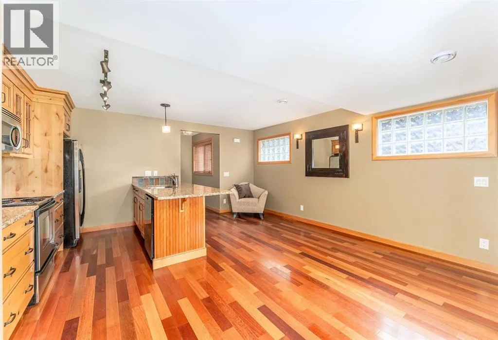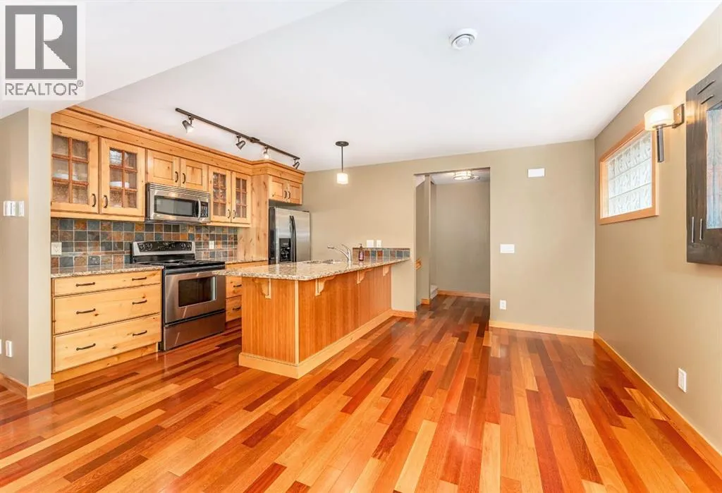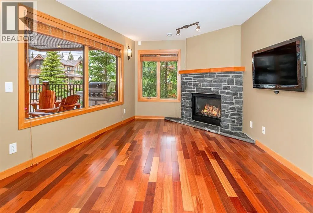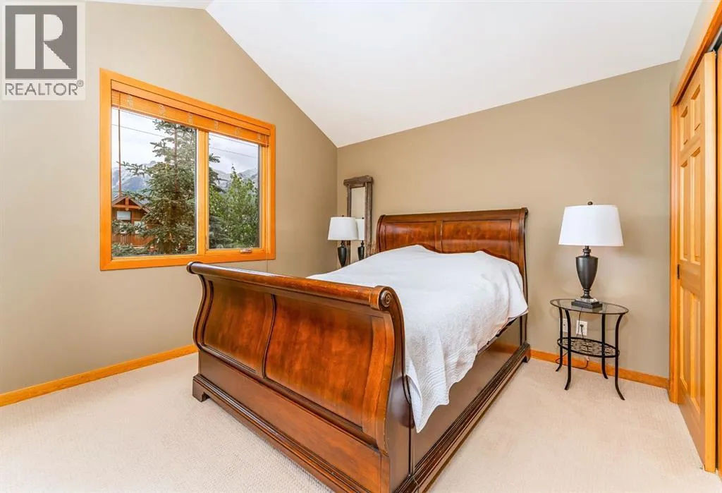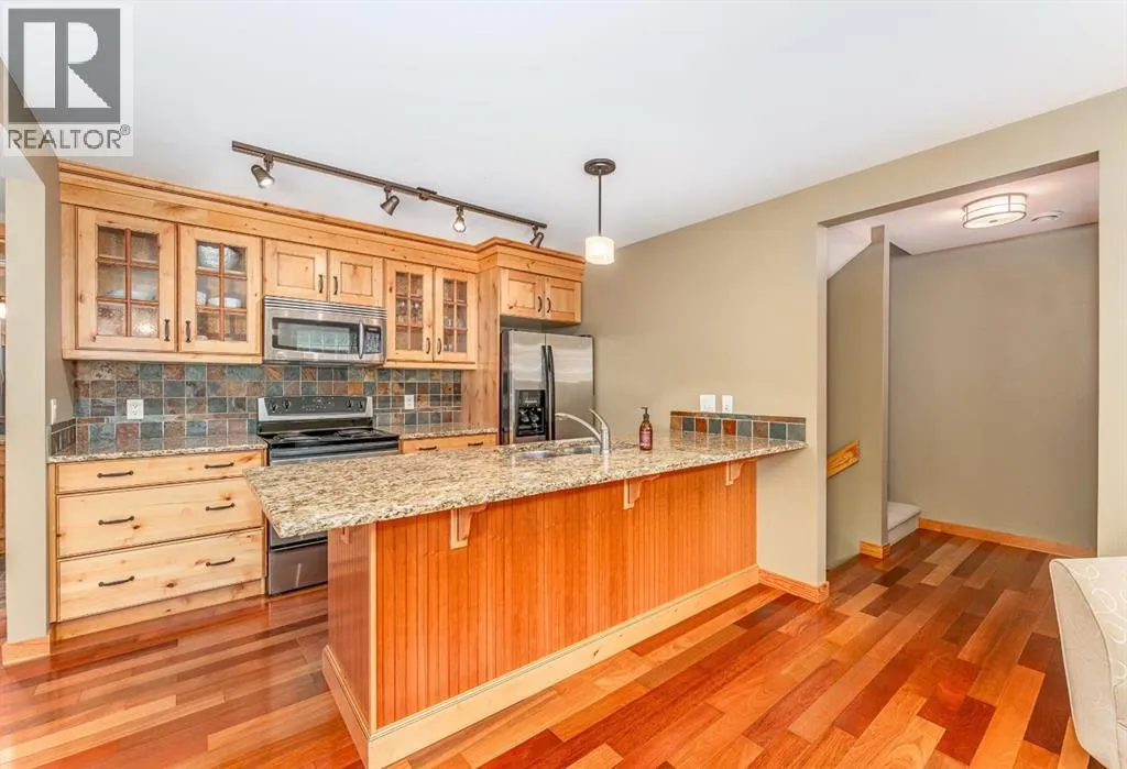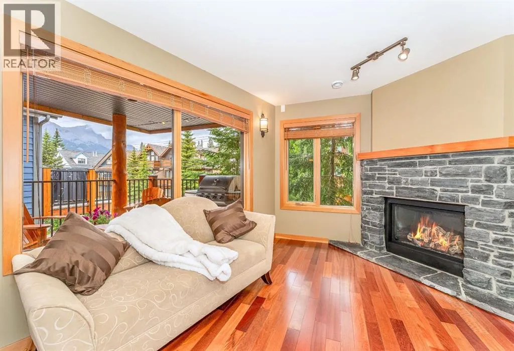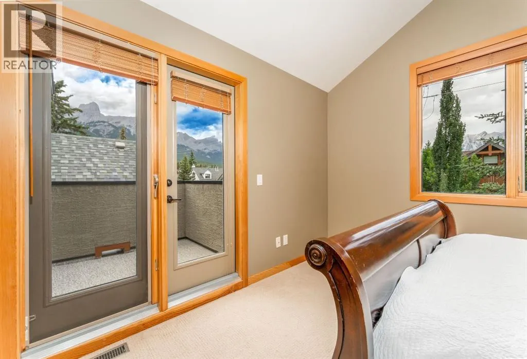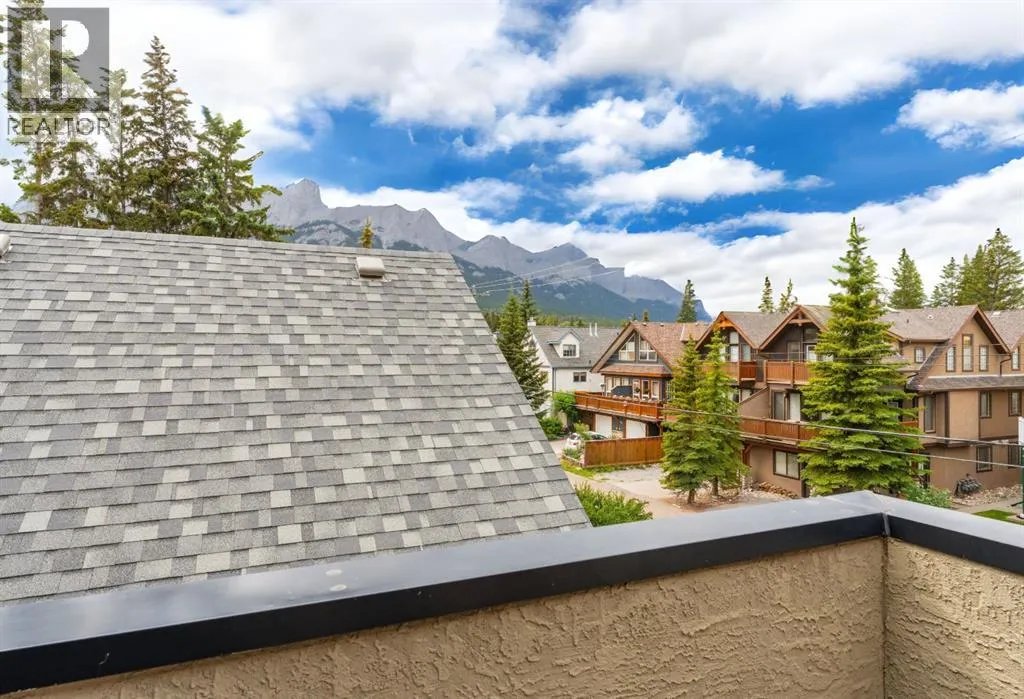 Located on a quiet street in one of Canmoreâs most sought-after neighbourhoods. This beautifully maintained 2 bedroom, 2 bathroom townhome offers a perfect blend of comfort, views, and walkability. With only one owner since new, the home has been lovingly cared for and includes a notably healthy reserve fund and a much larger square footage of living space than many newer builds today. Functional and Comfortable: Featuring 2 assigned parking stalls, and a very handy storage room under the stairs on the ground floor both provide the functionality. A bright and airy open-concept living area, cozy gas fireplace and beautiful mountain views are the comfort and relaxation part. The nicely appointed kitchen with plenty of cabinetry, counter space and handy eating bar, is a little bit of both! Upstairs, both spacious bedrooms feature vaulted ceilings that bring in natural light and mountain views. Step out onto one of two balconies to enjoy your morning coffee or evening glass of wine surrounded by the Canadian Rockies.Located just a short walk from the shops, dining, and charm of downtown Canmore, while you can also stroll to the parks, river, and trails. Contact us to view today. (id:27476)