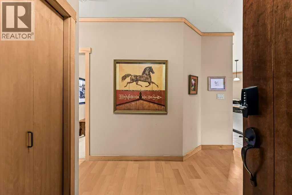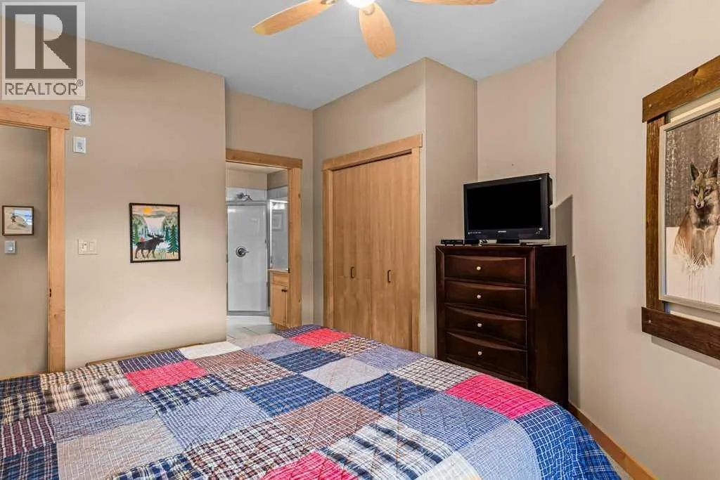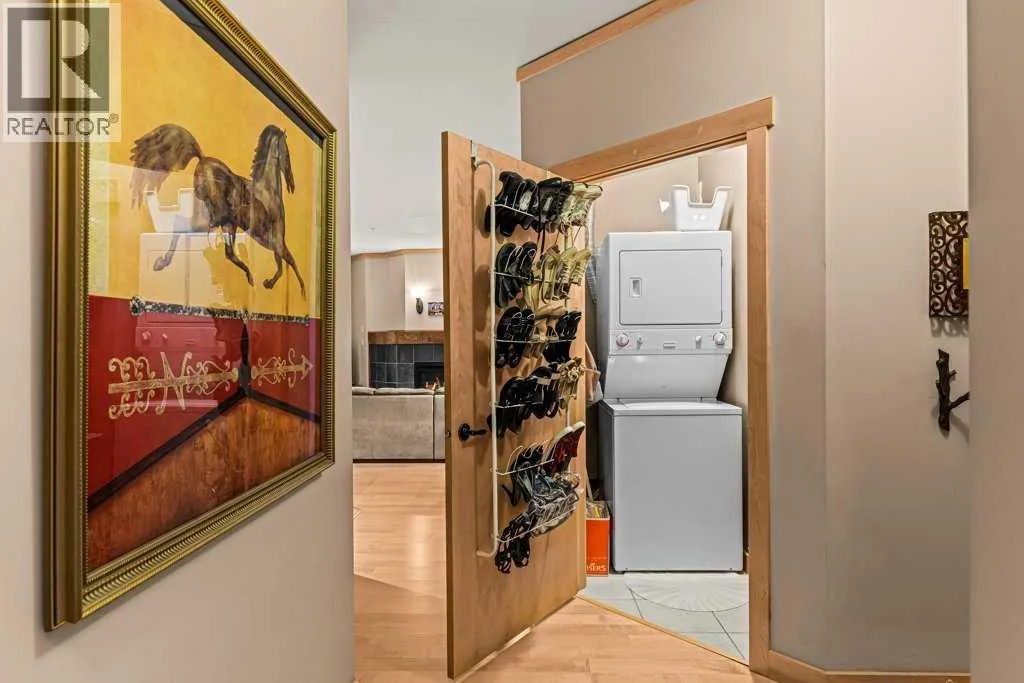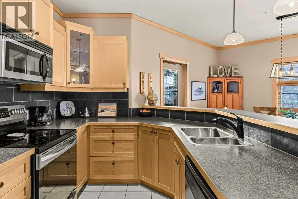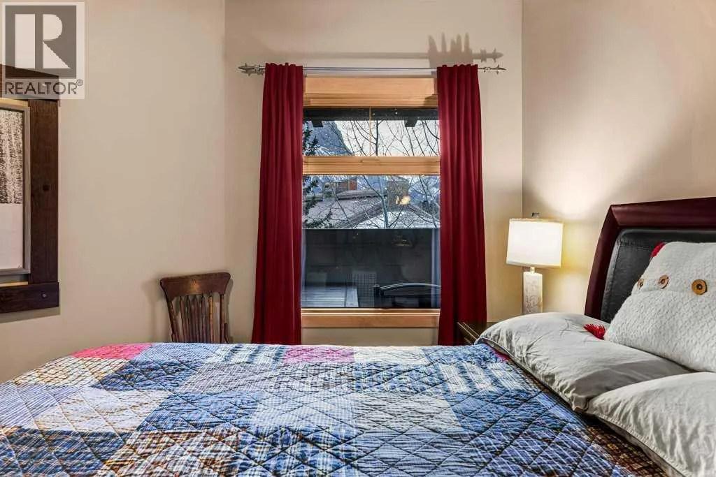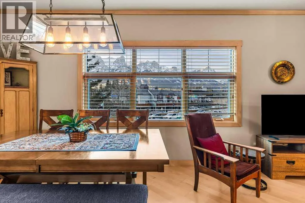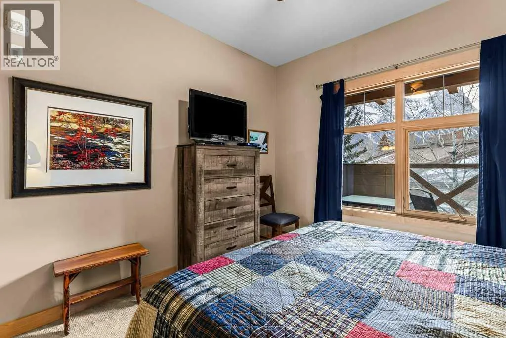Mountainview Lodge is ideally located in the heart of Canmore, meticulously maintained with exceptional care and attention to detail. Enjoy walking access to local shops, restaurants, and the Bow River. Take in stunning, iconic mountainviews from your windows and expansive sunny deck. This property offers flexibility as a private residence or a vacation home, with short-term rentals permitted. The suite features two bedrooms and two full bathrooms, including a cozy fireplace accented by a timber mantle. Designed with casual elegance, the open layout boasts 9â ceilings and in-floor heating throughout. Private residential elevator access serves only 12 tourist-zoned suites, offering exclusivity and convenience. One outdoor parking stall is included with additional visitor parking. This property comes partially furnished. (id:27476)