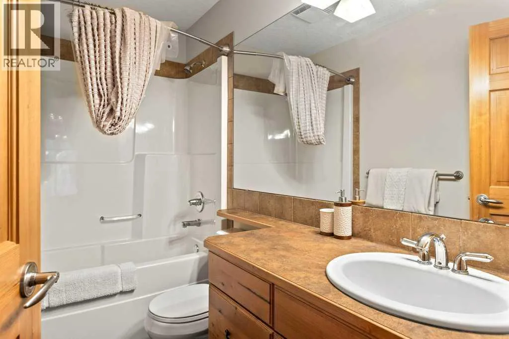 Welcome to your dream home nestled in the picturesque community of Three Sisters, Canmore. This stunning detached house boasts a perfect blend of modern luxury, breathtaking mountain views, and the tranquility of nature. With 4 total bedrooms, 3+1 baths, and a legal suite, this residence offers versatility, comfort, and the potential for rental income. As you step inside, you'll be greeted by a spacious and inviting interior flooded with natural light. The main level features a gourmet kitchen equipped with stainless appliances, stone countertops, and ample storage space. Adjacent to the kitchen, the open-concept living area is highlighted by a cozy gas fireplace, creating an ideal setting for relaxation and gatherings with loved ones. Venture upstairs to discover the luxurious master, complete with a private ensuite bath and views of the surrounding mountains. Two additional bedrooms, plus full bath, provide comfort and convenience for family members or guests. A gorgeous family room with views of Three Sisters rounds out this level. The walkout-level legal suite offers an excellent opportunity for rental income or accommodating extended family members. With 1 bedroom, a full bath, and a contemporary kitchenette, this legal suite ensures privacy and comfort for its occupants. Outside, a sprawling treed lot spanning 9569sqft offers plenty of space for outdoor activities or simply soaking in the natural beauty of the surroundings. Enjoy the convenience of a double garage, providing secure parking and storage for vehicles and outdoor gear. Whether you're unwinding on the expansive deck while admiring the majestic mountain peaks or exploring the nearby trails and parks, this residence offers the perfect retreat for embracing the mountain lifestyle. Don't miss your chance to own this exceptional property in one of Canmore's most sought-after neighbourhoods. Schedule your private tour today and experience luxury mountain living at its finest! (id:27476)