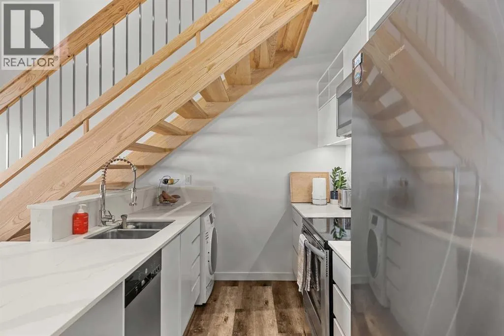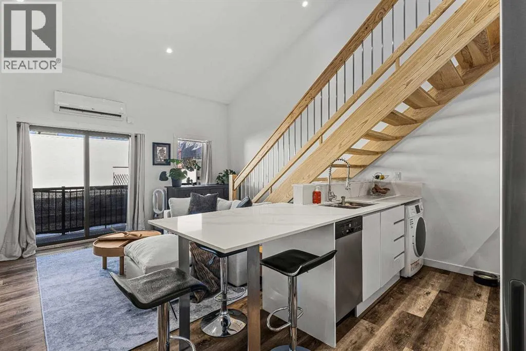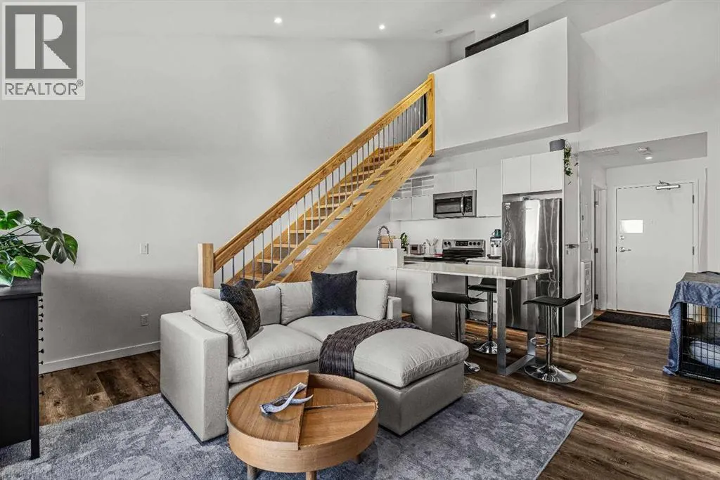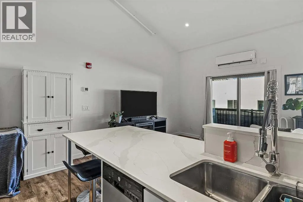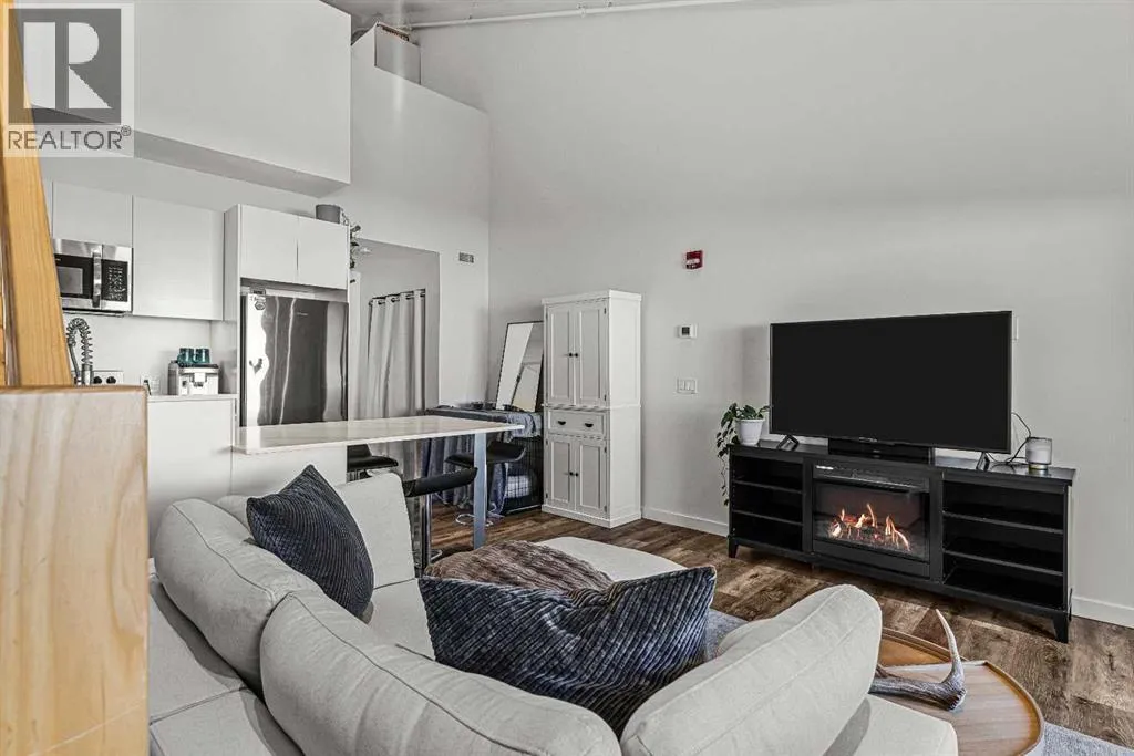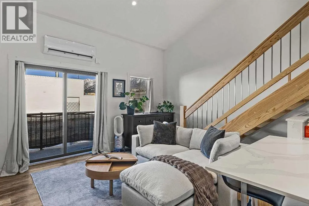 Welcome to Canmore living, where mountain views and everyday convenience come together. This west-facing 1-bedroom, loft-style home offers just over 605 sq. ft. of well-designed living space, with an open, airy layout that maximizes natural light and showcases the stunning mountain scenery that defines life in Canmore.Soaring ceilings and large windows create a bright, inviting main living area that brings the outdoors in. The kitchen features granite countertops, while the functional loft bedroom offers a flexible layout ideal for everyday living or working from home.Ideally located in a highly walkable neighbourhood, this home is steps from schools, the Canmore Arena, Canmore Golf & Curling Club, and the skate park. Walking and biking trails are right outside your door, grocery stores are minutes away, and quick highway access makes commuting to the mountains or the city effortless. Additional conveniences include secure bike storage, a separate storage locker, and access to industrial washers and dryers in the buildingâperfect for larger loads.Whether youâre a first-time buyer or looking to get into Canmore ownership, this loft at I Place delivers an exceptional blend of location, views, and lifestyle.Please note: short-term rentals are not permitted. Book your private showing today! (id:27476)