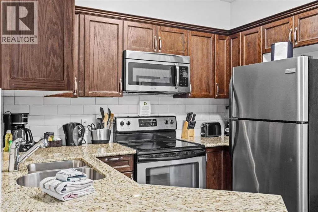 This 6-week fractional ownership opportunity offers a 2 bedroom, 2 bathroom suite located on the second floor of the highly sought-after Grande Rockies Resort in the heart of Canmore. Just a short walk to downtown shops, restaurants, and trails, this location is widely regarded as one of the best in town. The suite features granite countertops, stainless steel kitchen appliances, and in-suite laundry, along with a private patio complete with BBQ and outdoor seating, perfect for enjoying mountain evenings. Thoughtful finishes and a functional layout make this an ideal mountain retreat. Owners enjoy access to exceptional resort amenities, including an indoor swimming pool with waterslide, kiddie pool, indoor and outdoor hot tubs, fitness room, Grande Kitchen & Bar, and banquet facilities. As part of Paradise Residence Club, owners and guests also have access to the games room, outdoor BBQ area with Napoleon grills, and a gas fire pit located at the adjacent Sunset Resorts Canmore. The innovative rotation calendar provides 3 fixed peak-demand weeks on a rotating basis, plus 3 floating shoulder-season weeks, offering exceptional flexibility within the fractional ownership market. Owners may occupy the suite, lend it to friends, or participate in the established rental program. Property taxes, utilities, insurance, and professional property management are included in the annual fees, making this a truly turnkey ownership opportunity. A fantastic way to enjoy Canmore year after year, this one wonât last long. (id:27476)
