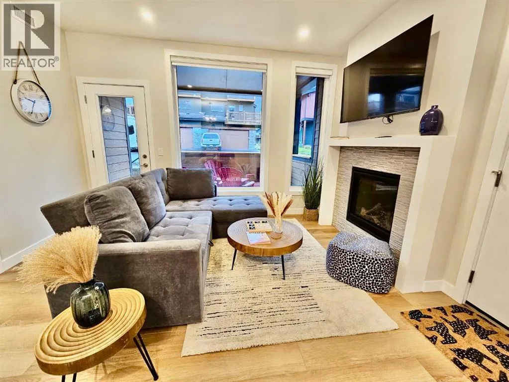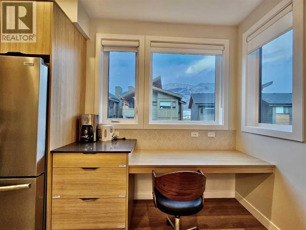 Fully Furnished, turnkey opportunity within Three Sisters Mountain Village, just under an hour from Calgary. This beautiful first-floor 2-bedroom, 2-bath unit features modern kitchens with stainless steel appliances and stone countertops, along with an oversized deck perfect for enjoying breathtaking panoramic mountain views. The primary bedroom includes a private 4-piece ensuite, while the second bedroom offers scenic views and a convenient office nook. Additional highlights include a "car-and-a-half" garage with ample storage and close proximity to the future Gateway Business District. Still covered under the Alberta New Home Warranty Program, this unit combines sustainable luxury with peace of mind. Whether for personal enjoyment or as an investment in Canmoreâs thriving real estate market, this home is priced to sell fastâdonât miss your chance to embrace the mountain lifestyle today. **The unit comes with 55' TV, Sectional, Dining Table, 2 X Beds with side tables and all Kitchen appliances and small ware** (id:27476)