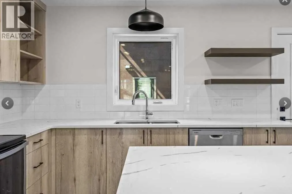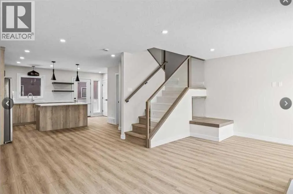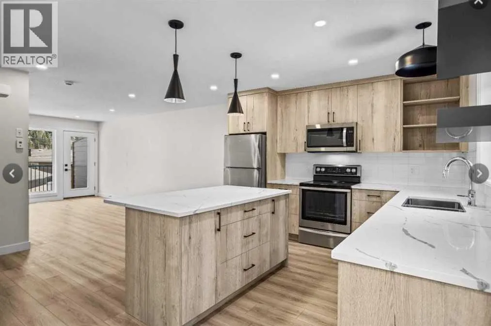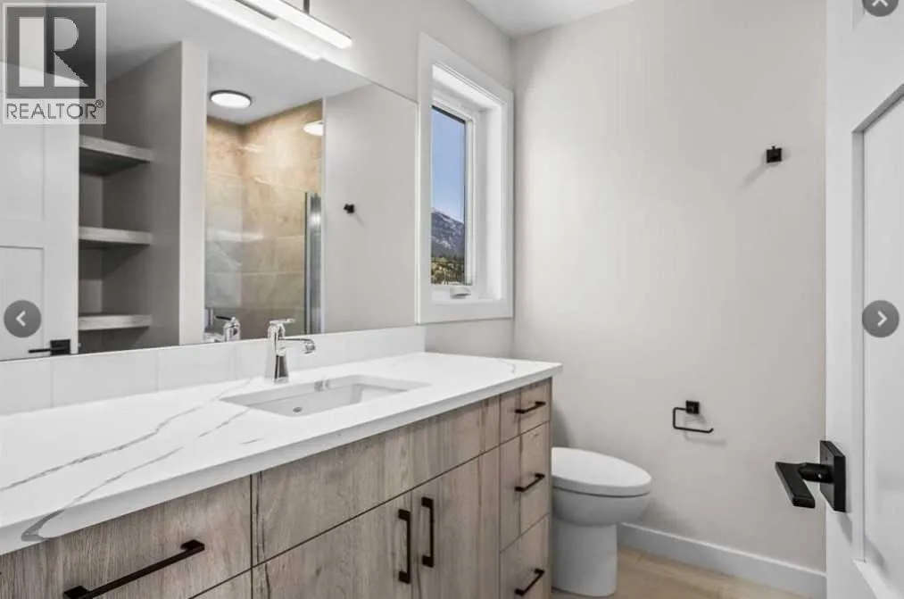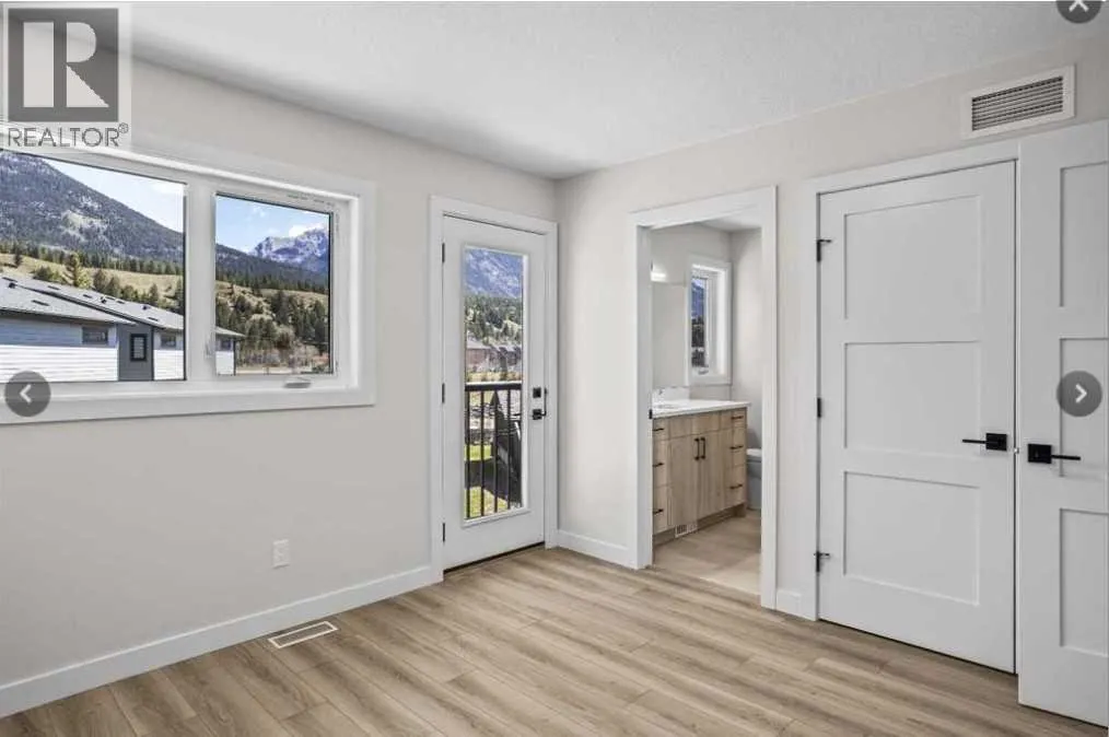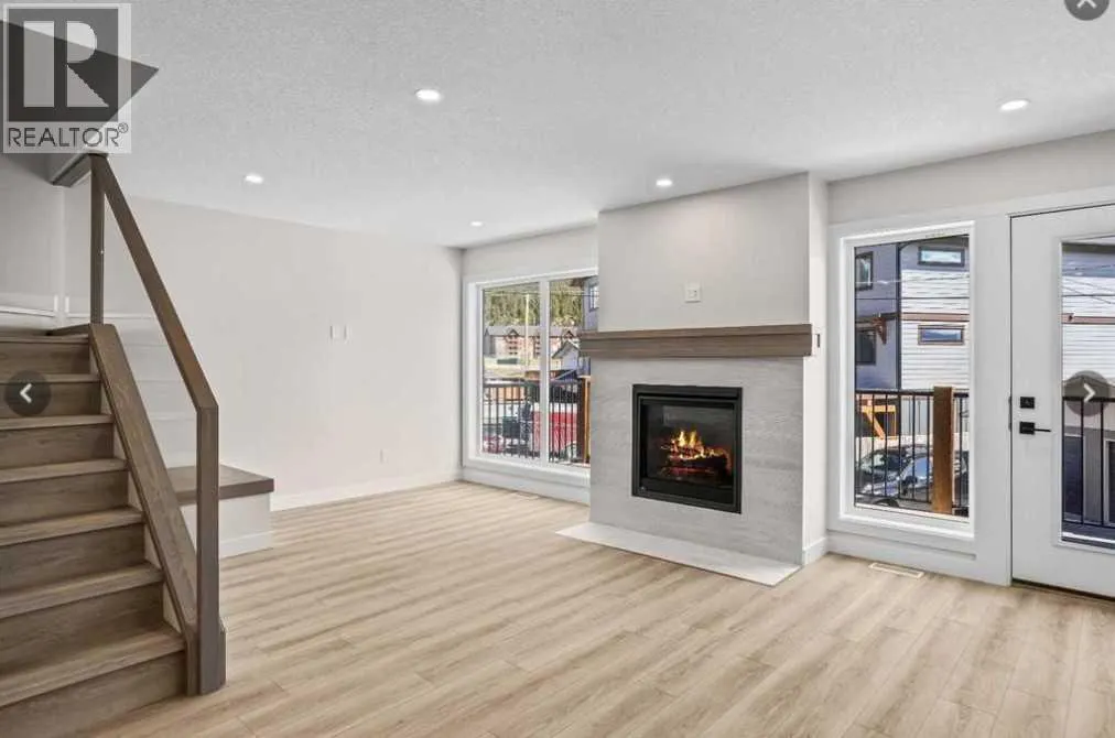 Bald Eagle Peak Chalets offers a limited collection of brand-new 4 bedroom, 3.5 bath townhomes in one of Canmoreâs most walkable and evolving neighborhoods. Designed for real life, these homes balance smart layouts, quality finishes, and long-term livability in the heart of TeePee Town.Unit 114 is a standout value within the project. It delivers a full 4 bedroom, 3.5 bath layout, an attached garage, dedicated storage, and private outdoor space, making it a rare opportunity in the Canmore market for buyers looking for new construction without paying a premium.The main level features a bright great room with a gas fireplace, a well-appointed kitchen with a large island, and a comfortable dining area that works well for both everyday living and hosting. Large windows bring in strong natural light and mountain views, creating a warm and inviting space. A convenient half bath and direct access to outdoor areas complete the main floor.Upstairs, youâll find 3 bedrooms and 2 full baths, including a comfortable primary suite with a spa-inspired ensuite and generous closet space. The lower level adds a versatile 4th bedroom with its own bath, ideal for guests, extended family, or future rental potential pending town approval.Every home includes a private yard, ample interior storage, an attached garage, and a dedicated gear storage room for bikes, skis, and all your mountain equipment.Located steps from Main Street, cafés, restaurants, shops, trails, and parks, Bald Eagle Peak Chalets offers excellent walkability and long-term value as TeePee Town continues its revitalization. First-time buyers may also qualify for the GST rebate.With only a few units remaining, this is a compelling opportunity to secure a brand-new 4 bedroom townhome in Canmore. Inquire today for a complete buyer package and private showing. (id:27476)
