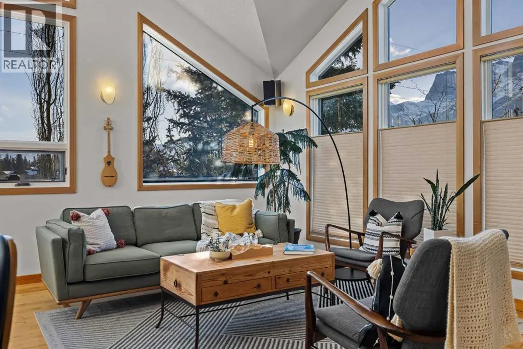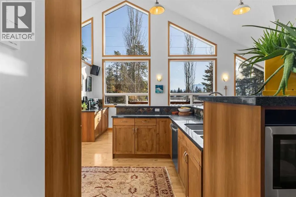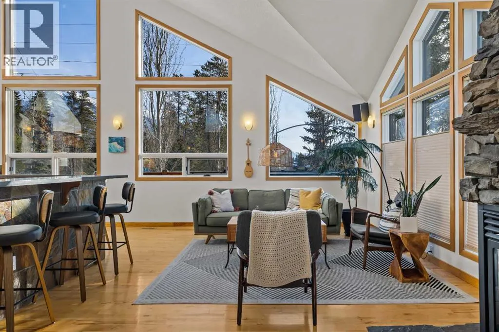 A rare detached home in the heart of Lions Park, one of Canmoreâs most walkable and sought-after neighbourhoods. Steps from Main Street, the Bow River, shops, cafés, restaurants, and pathway systems, this location offers true in-town living with privacy.The five-bedroom home features vaulted ceilings, exposed wood beams, a stone fireplace, and large windows that flood the main level with natural light and mountain views. The open layout connects seamlessly to the kitchen and dining area, perfect for everyday living and entertaining. A unique lofted space accessed by ladder offers flexibility as a yoga retreat, office, or quiet escape. The main level also includes a primary bedroom with ensuite and private balcony, plus two additional bedrooms and a full bathroom.The lower level offers excellent space for a growing family, featuring two additional bedrooms, a renovated bathroom, a rec room, and its own laundry area, along with a private walkout entrance. The home also includes solar panels for improved efficiency, a double car garage, and a dedicated workshop at the back of the garage. Out front, the deck overlooks Lions Park and provides immediate access to tennis courts and scenic walking pathsA rare combination of location, privacy and mountain views in the heart of Canmore. (id:27476)
