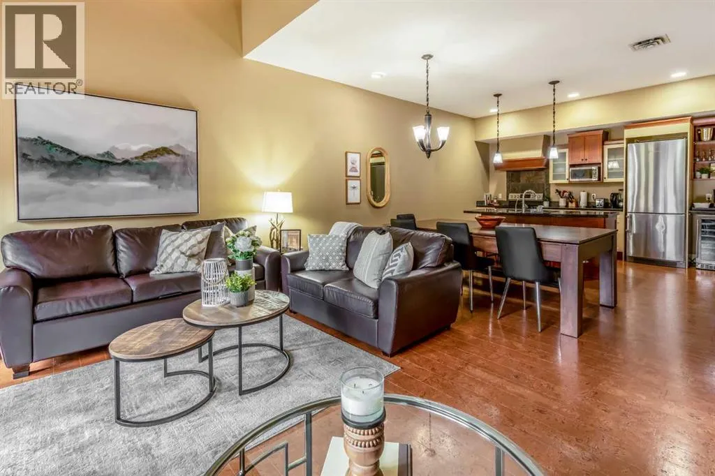 Welcome to Solara Resortâs largest suite - 1,300+ SF top-floor penthouse featuring 3 bedrooms & 2 bathrooms with vaulted ceilings, and two private balconies with sweeping mountain views.With an exceptional array of amenities, the suite offers a pool/ping pong table, home theatre system, and a 60,000 BTU fire table on the balcony.It also features premium finishes throughout, including European cork flooring; granite and polished concrete countertops; a fully equipped gourmet kitchen with stainless steel appliances; and spa-inspired bathrooms with a multi-jet massage shower and a large soaker tub.Solara Resort is regarded as one of Canmoreâs premier resorts, featuring an indoor pool and hot tub, fitness center, central air-conditioning, and underground heated parking.The penthouse suite already has $86,000 (net of Airbnb/VRBO fees, cleaning fees, and taxes) in confirmed reservations for 2026 and is projected to do $165,000 (gross). The current owners are happy to manage this property for you, offering a seamless, turnkey opportunity. Itâs a great investment opportunity â a potential of 12% return on investment. (id:27476)