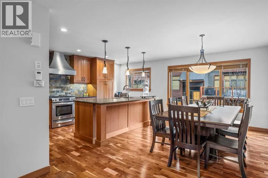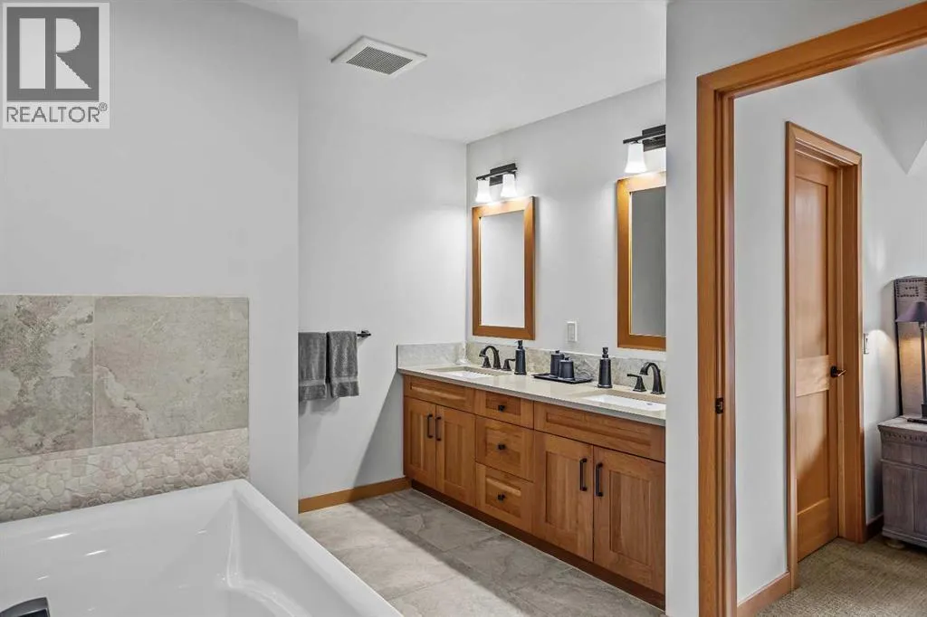 Set in one of Canmoreâs most prestigious Creekside communities, this Villa presents a rare opportunity to own a luxurious retreat. This stunning villa boasts 2350 sqft of beautifully appointed living space, featuring 3 spacious bedrooms, 4 bathrooms, and an exceptional layout designed to maximize both comfort and style. From the moment you step inside, youâre greeted by the grandeur of the main living areaâanchored by soaring cathedral ceilings and expansive floor-to-ceiling windows that frame unobstructed mountain views. The open-concept design seamlessly flows to a generous deck, ideal for entertaining or simply soaking in the breathtaking alpine scenery. At the heart of the home is a chefâs kitchen, complete with sleek stainless-steel appliances, quartz countertops, and ample space for culinary creativity. Upstairs, the primary suite is a true retreatâoccupying its own level with a luxurious 5-piece spa-inspired ensuite and a spacious walk-in closet. While the second level offers two additional bedrooms and a well-appointed 4-piece bathroom, providing comfort and privacy for family or guests. The fully developed lower level adds even more versatility, with a cozy flex space, additional bathroom, and walkout to a private patio. Whether youâre looking for a full-time residence or a luxurious mountain escape, this home delivers refined living in an unparalleled settingâjust steps from trails, the creek, and all the charm that downtown Canmore has to offer. (id:27476)