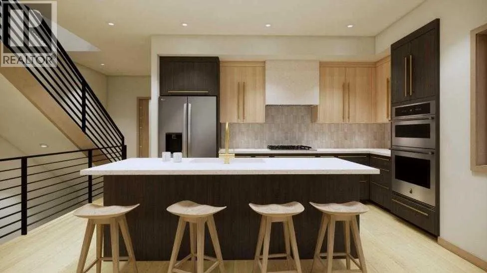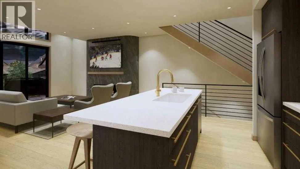 Experience elevated living in the heart of South Canmore with this brand new 4-plex, thoughtfully crafted by the renowned Allweather Builders. Combining modern luxury with timeless craftsmanship, this home showcases stunning mountain views and an unbeatable central locationâjust steps to trails, shops, and restaurants. Spanning three levels, the residence offers 4 spacious bedrooms, 4 baths and the convenience of a private elevator. The open-concept living space is filled with natural light, featuring premium finishes, a sleek gourmet kitchen, and seamless flow to the outdoor patio where you can take in breathtaking surroundings. The attached garage provides ample storage and parking. Don't miss the opportunity to make this mountain home your own. Property is under construction, projected completion Q4 2026. (id:27476)