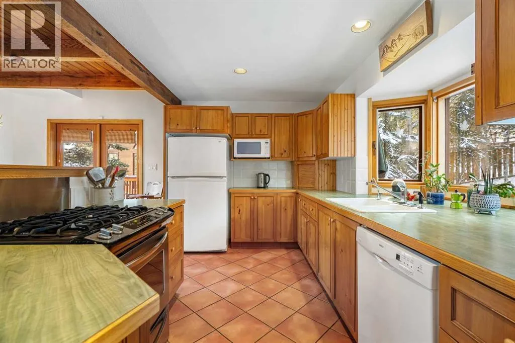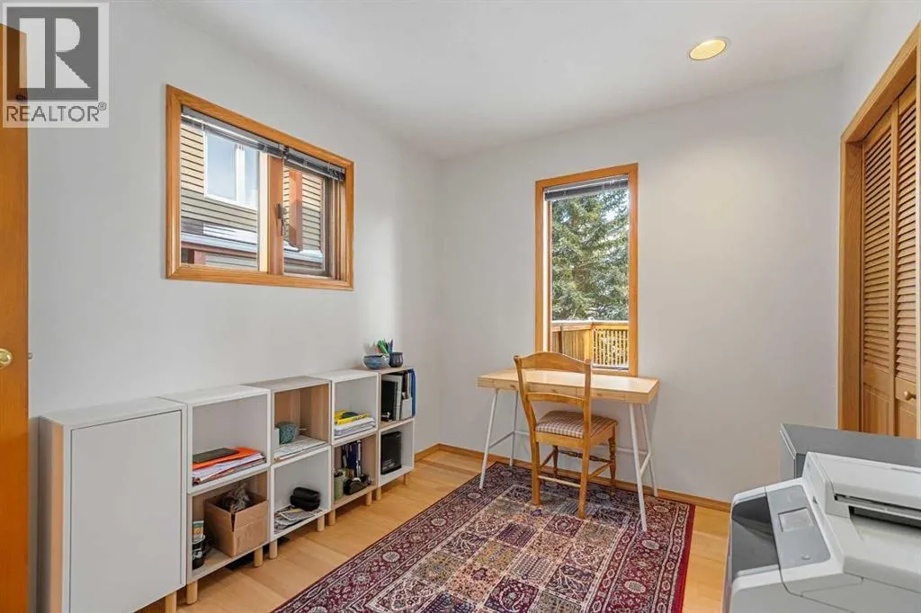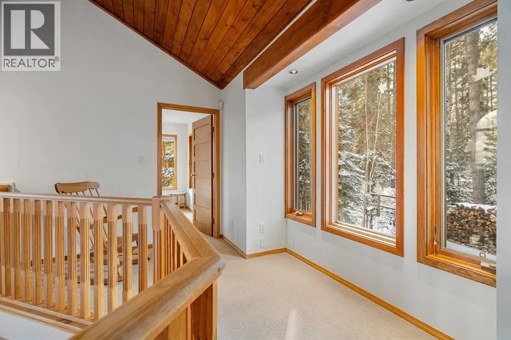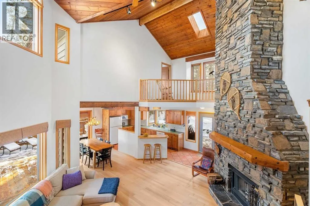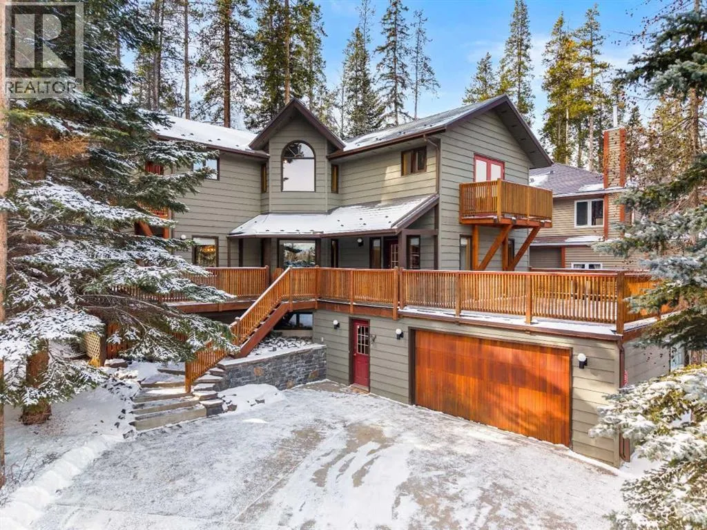 Tucked into one of Canmoreâs most sought-after neighbourhoods, Rundleview offers quiet streets, mountain views, and easy access to Quarry Lake and the Nordic Centreâjust a 1.5 km walk to downtown. This established enclave is known for its larger lots, mature trees, and direct connection to trails, making it a favourite for those who value both privacy and proximity. With an alpine feel and nearly 3,000 sq ft of living space, this home features 4 bedrooms, a walkout basement, expansive decks, and seamless outdoor access from all three levels. An extra-long driveway provides ample parking, including space for an RV, in addition to the attached garage. Designed to embrace its surroundings, enjoy morning sun from the northeast-facing front deck, then follow the light as it wraps around the side and into the backyard. End the day with a soak in the hot tub après-ski, surrounded by mountain air. Step into the heart of the home where a dramatic two-storey stone fireplace anchors the great room, framed by windows and natural light. The open layout creates effortless flow between living, dining, and kitchen spacesâideal for everyday living and entertaining. The kitchen overlooks a cozy dining nook with patio doors leading to a wraparound side deck, perfect for BBQs and gatherings. A main-floor office or guest bedroom offers flexibility for visitors or work-from-home needs. Upstairs, two additional bedrooms with private balconies and a loft area provide separation and space for family or guests. The tiled lower-level entry is designed for practical mountain living, complete with a drop zone for gear, a fourth bedroom, and direct garage access. The fully developed walkout level also features a generous rec room with a cozy gas fireplace and plenty of space to entertain. Mechanical systems have been updated, and the durable metal roof adds long-term peace of mind. Inside, the home shows pristine with newly refinished hardwood floors and fresh paint throughout. A rare opportuni ty to experience timeless mountain living in one of Canmoreâs most desirable neighbourhoods. (id:27476)