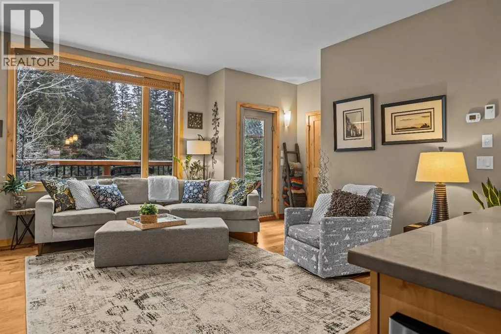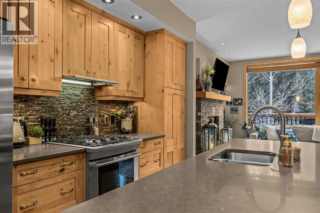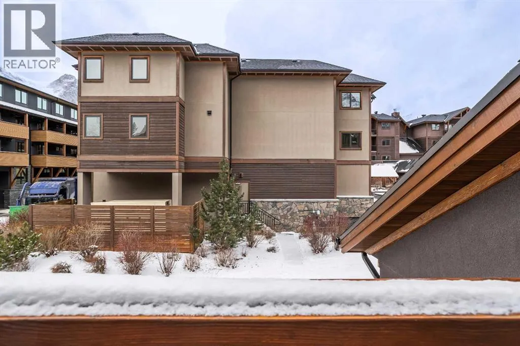 Set directly along the banks of Policemanâs Creek, this 4-bedroom, 3.5-bathroom, over 2,000sqft villa offers a rare opportunity in Spring Creek Mountain Village, all just steps from downtown Canmore. The entry level features a heated single-car garage, two bedrooms, a full bathroom, and a dedicated laundry area, ideal for guests, family, or a flexible workspace. The main living level is open and inviting, anchored by warm hardwood flooring and expansive windows that frame the creek and surrounding trees. The kitchen is well-appointed with quartz countertops, stainless steel appliances, generous cabinetry, and a large island suited for gatherings. The dining area opens to a secondary deck, while the living room is centered around a striking Rundle stone fireplace and provides direct access to the primary deck, with stairs leading down to the creekside patio.The upper level is dedicated to the primary retreat, featuring vaulted ceilings, a walk-in closet, and a spacious 5-piece ensuite. A fourth bedroom with its own 3-piece ensuite completes this level, offering privacy and flexibility for guests.Outdoor living is a defining feature of this home, with multiple decks and patio spaces designed to fully embrace the creekside setting. A peaceful location immersed in nature, yet within easy walking distance of Main Street, trails, restaurants, and shops this is Canmore living at its finest. (id:27476)