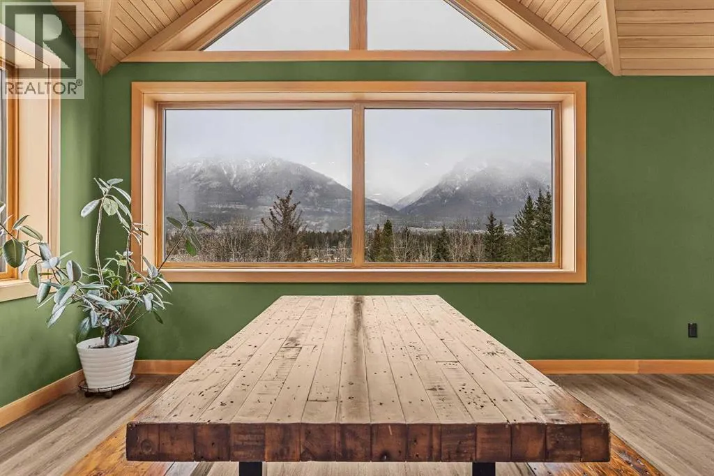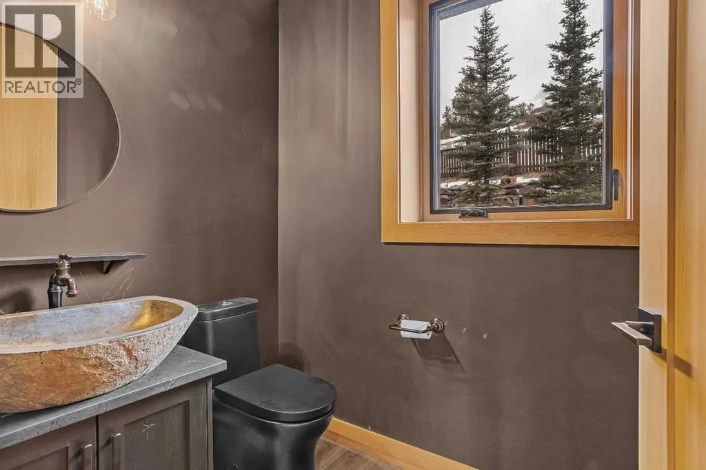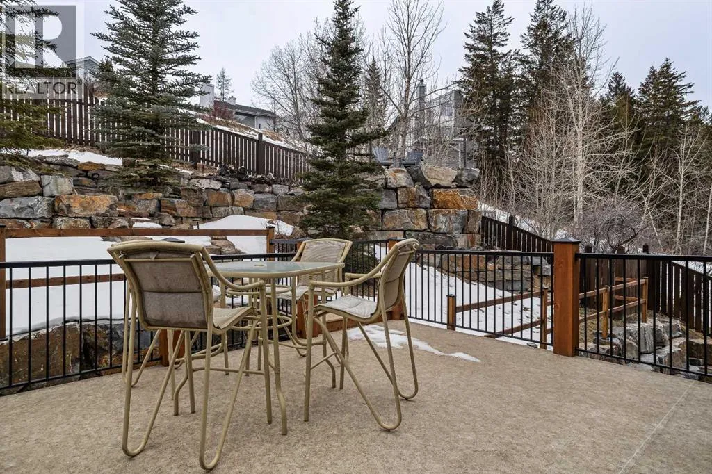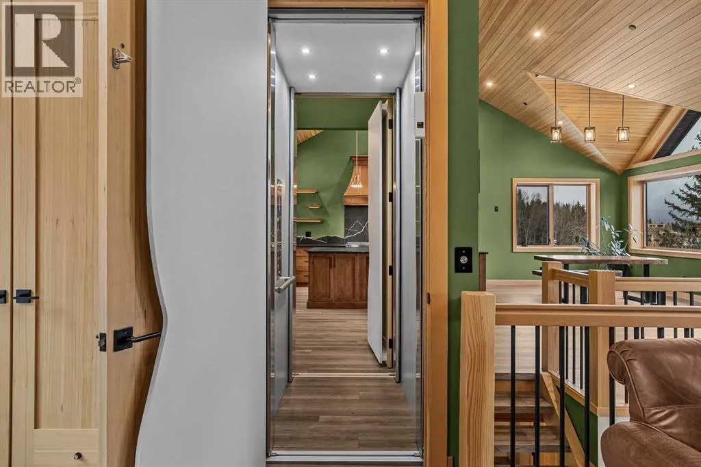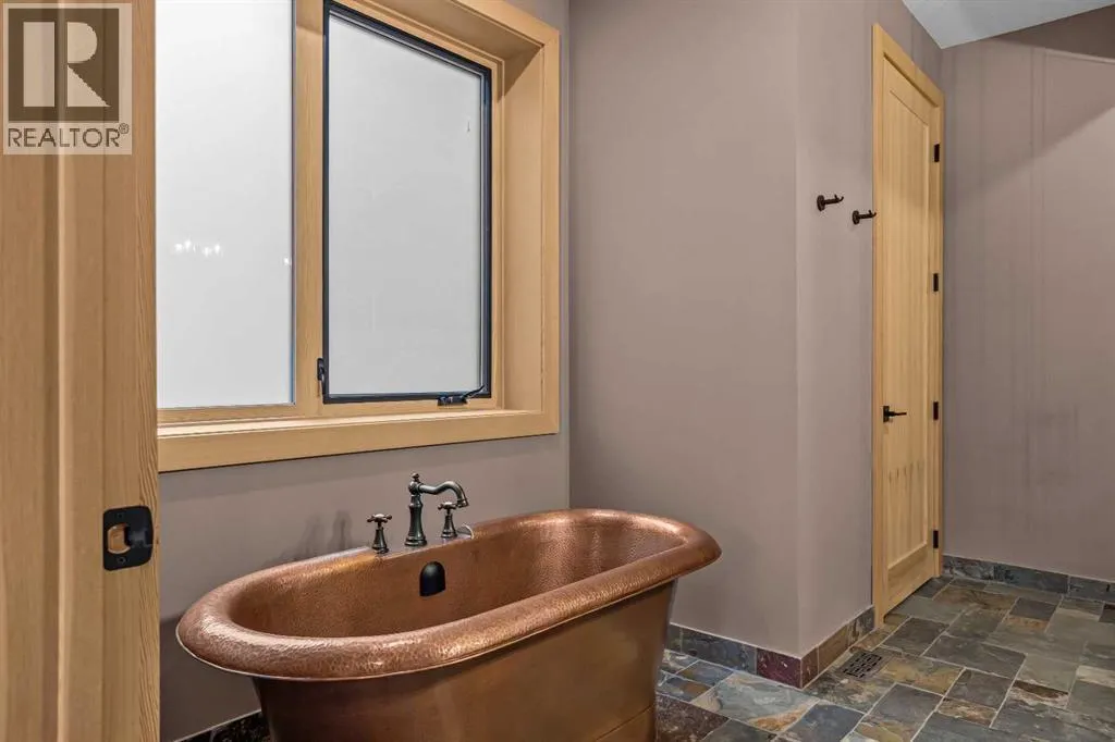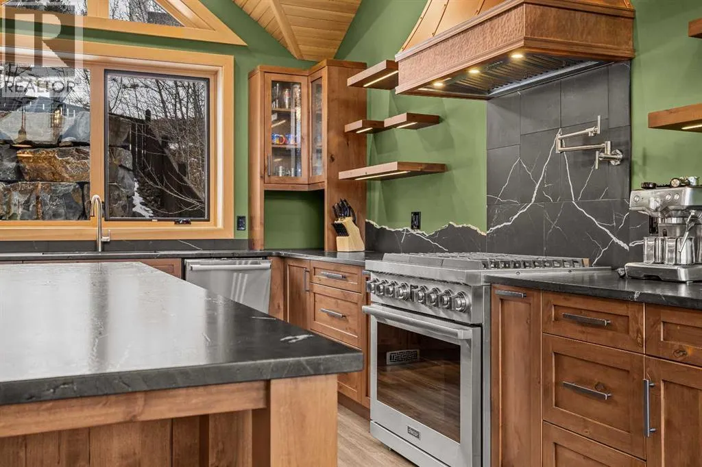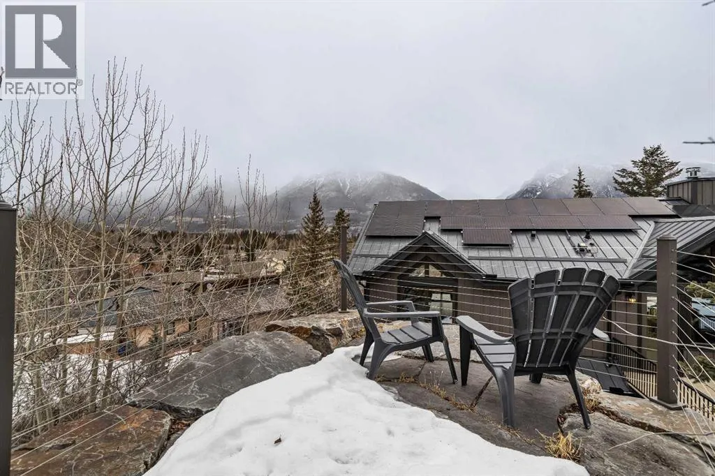 At nearly 3,200 SF, Positioned at the top of a quiet cul-de-sac, 104 Rummel Place captures elevated Bow Valley views in one of Canmoreâs most peaceful residential settings.This 4-bedroom, 4-bathroom custom home blends privacy, scale, and thoughtful design anchored by a triple-car garage with exceptional storage capacity.Vaulted ceilings frame the surrounding mountain and valley views, creating a dramatic yet welcoming upper-level living space. Expansive windows draw natural light throughout, while multiple outdoor patios and balconies offer seamless indoor-outdoor living.The backyard is truly exceptional fully fenced and thoughtfully terraced with multiple lounging areas, a covered hot tub retreat, fire pit, and a private viewing platform perched above the valley an ideal vantage point to take in Canmoreâs landscape.The kitchen is designed for entertaining, featuring a large island, gas range, prep sink, and generous workspace. The main level includes a spacious primary suite complete with a walk-in closet and a striking copper bathtub in the ensuite a distinctive design feature that elevates the space. Two additional bedrooms offer direct access to outdoor areas.The lower level includes a recreation room, fourth bedroom, and full bathroom, creating flexibility for guests, family, or additional living space.Additional features include in-floor heat throughout, heated driveway and steps, solar panels, elevator access to all levels, and rough-in for a future sauna or Nordic spa.This is a home defined by its position elevated, private, and immersed in nature while remaining just minutes from downtown Canmore. (id:27476)