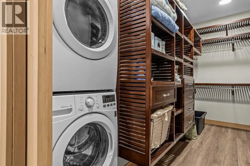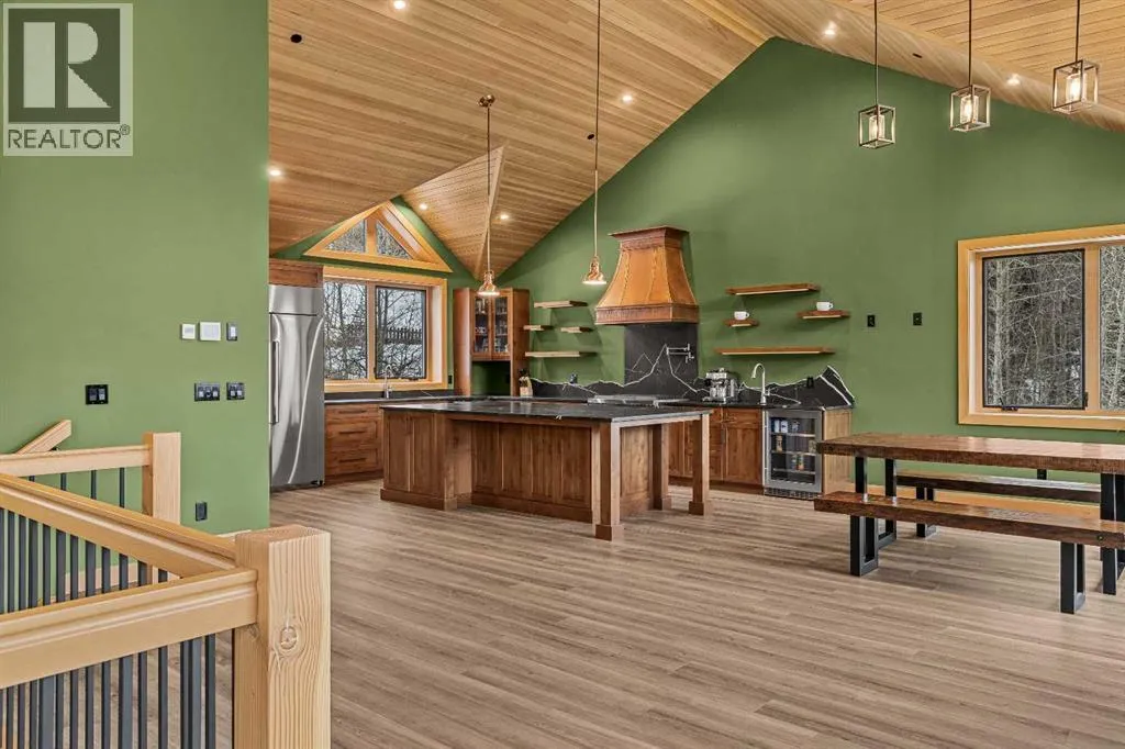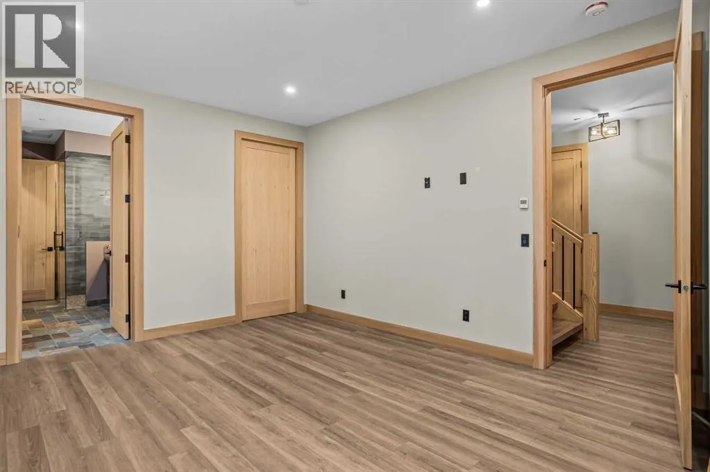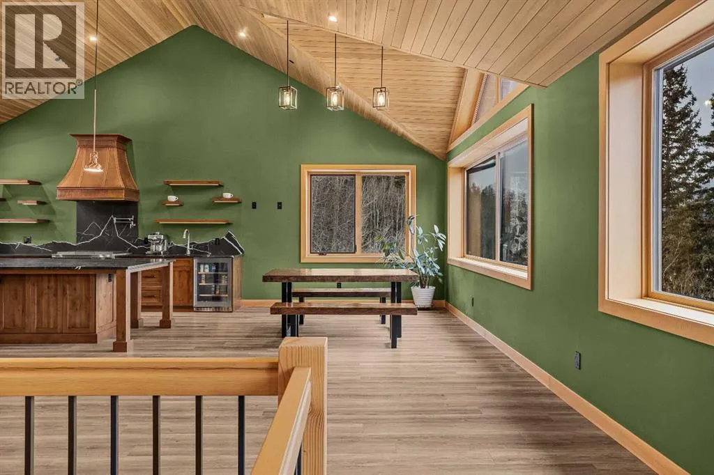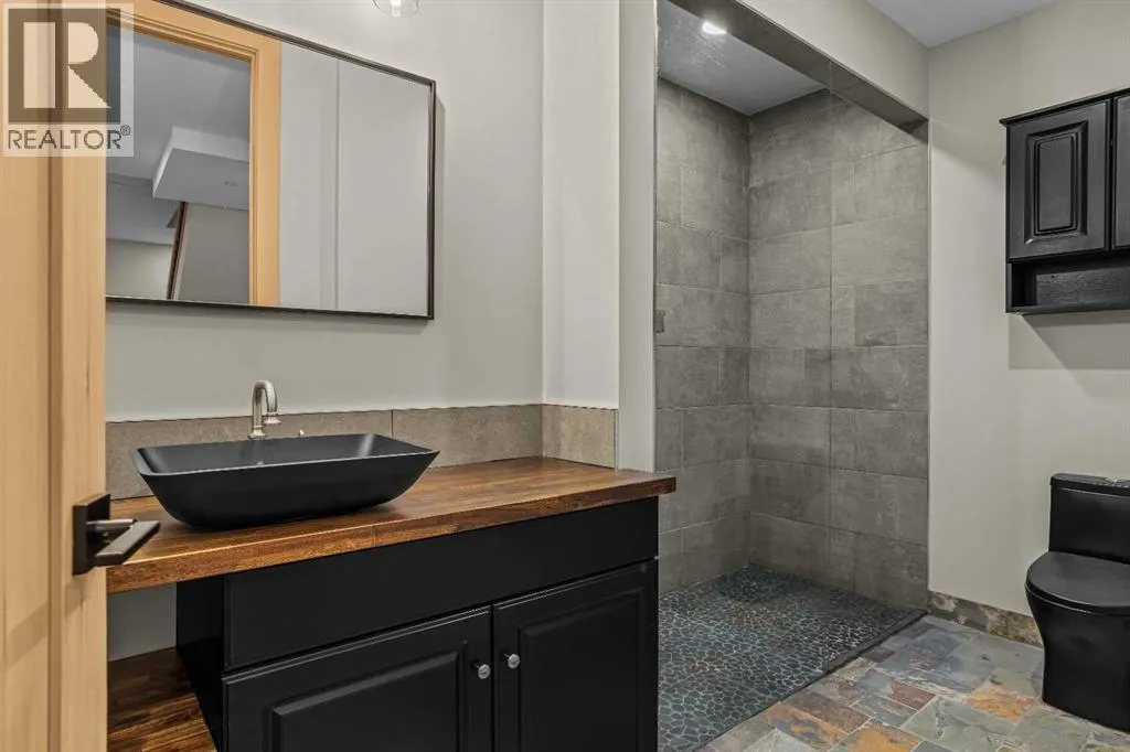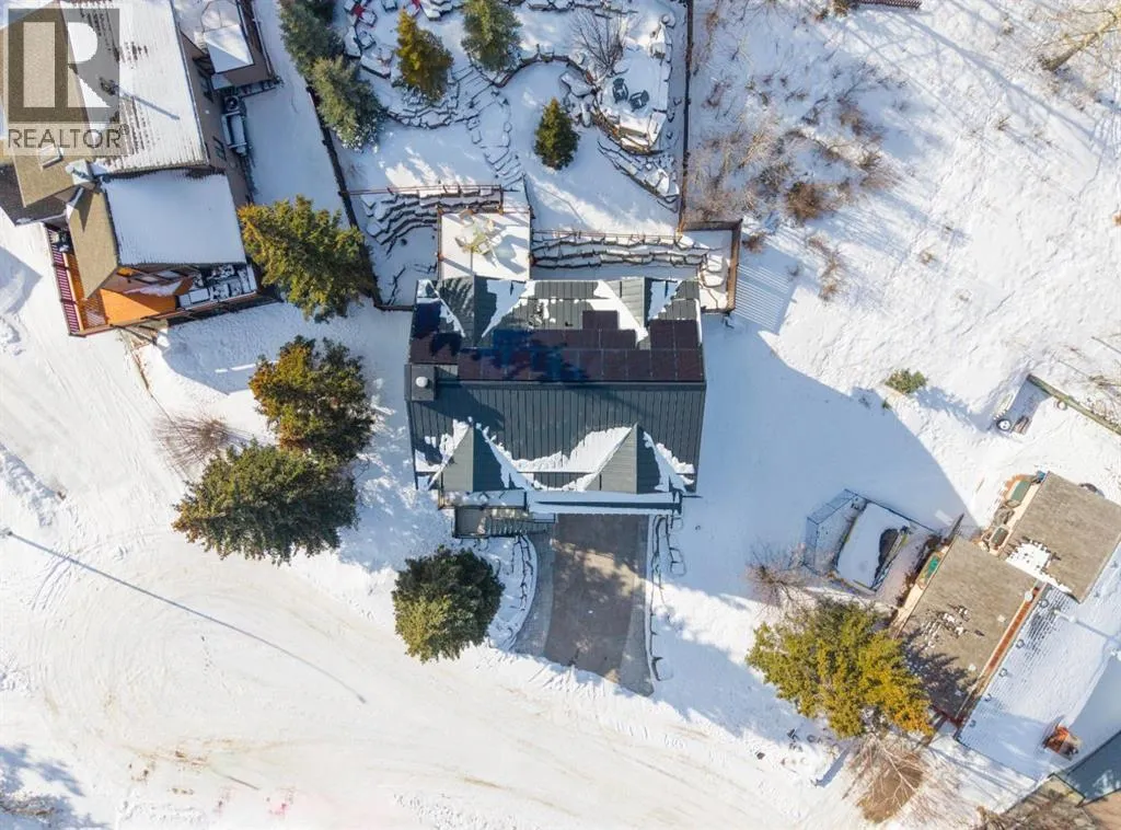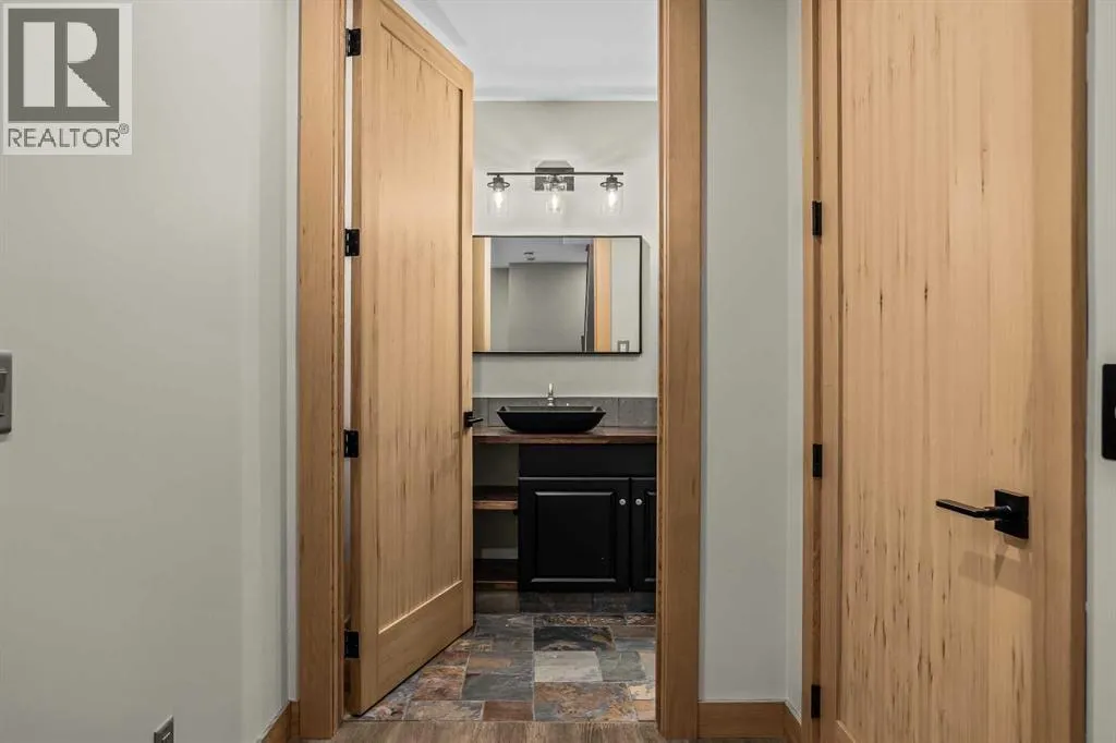 At nearly 3,200 SF, Positioned at the top of a quiet cul-de-sac, 104 Rummel Place captures elevated Bow Valley views in one of Canmoreâs most peaceful residential settings.This 4-bedroom, 4-bathroom custom home blends privacy, scale, and thoughtful design anchored by a triple-car garage with exceptional storage capacity.Vaulted ceilings frame the surrounding mountain and valley views, creating a dramatic yet welcoming upper-level living space. Expansive windows draw natural light throughout, while multiple outdoor patios and balconies offer seamless indoor-outdoor living.The backyard is truly exceptional fully fenced and thoughtfully terraced with multiple lounging areas, a covered hot tub retreat, fire pit, and a private viewing platform perched above the valley an ideal vantage point to take in Canmoreâs landscape.The kitchen is designed for entertaining, featuring a large island, gas range, prep sink, and generous workspace. The main level includes a spacious primary suite complete with a walk-in closet and a striking copper bathtub in the ensuite a distinctive design feature that elevates the space. Two additional bedrooms offer direct access to outdoor areas.The lower level includes a recreation room, fourth bedroom, and full bathroom, creating flexibility for guests, family, or additional living space.Additional features include in-floor heat throughout, heated driveway and steps, solar panels, elevator access to all levels, and rough-in for a future sauna or Nordic spa.This is a home defined by its position elevated, private, and immersed in nature while remaining just minutes from downtown Canmore. (id:27476)