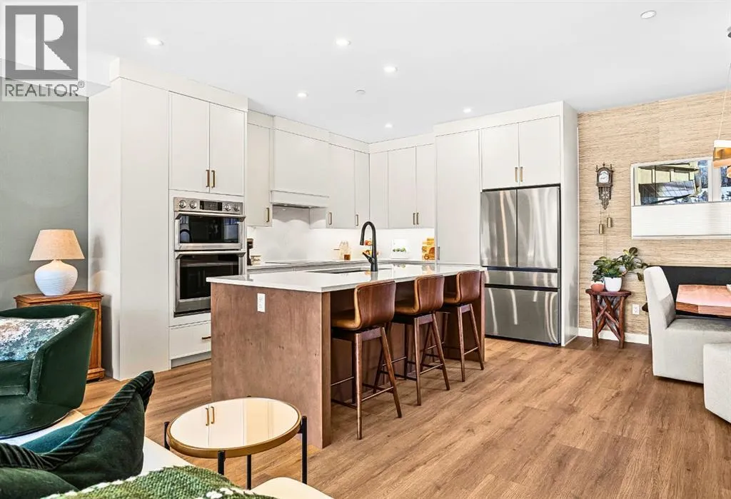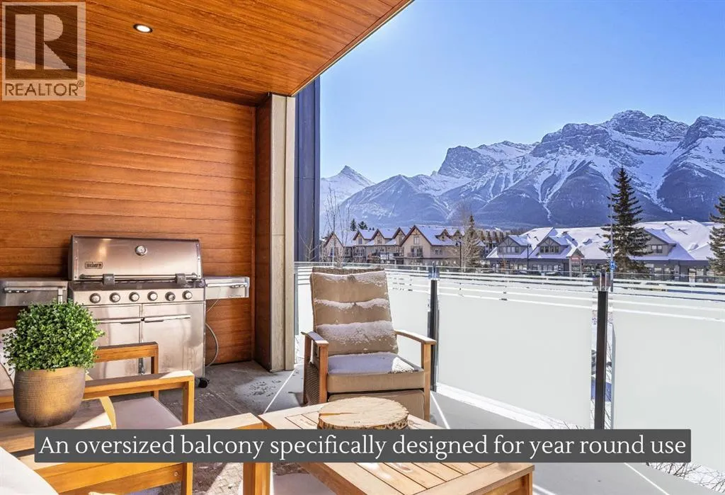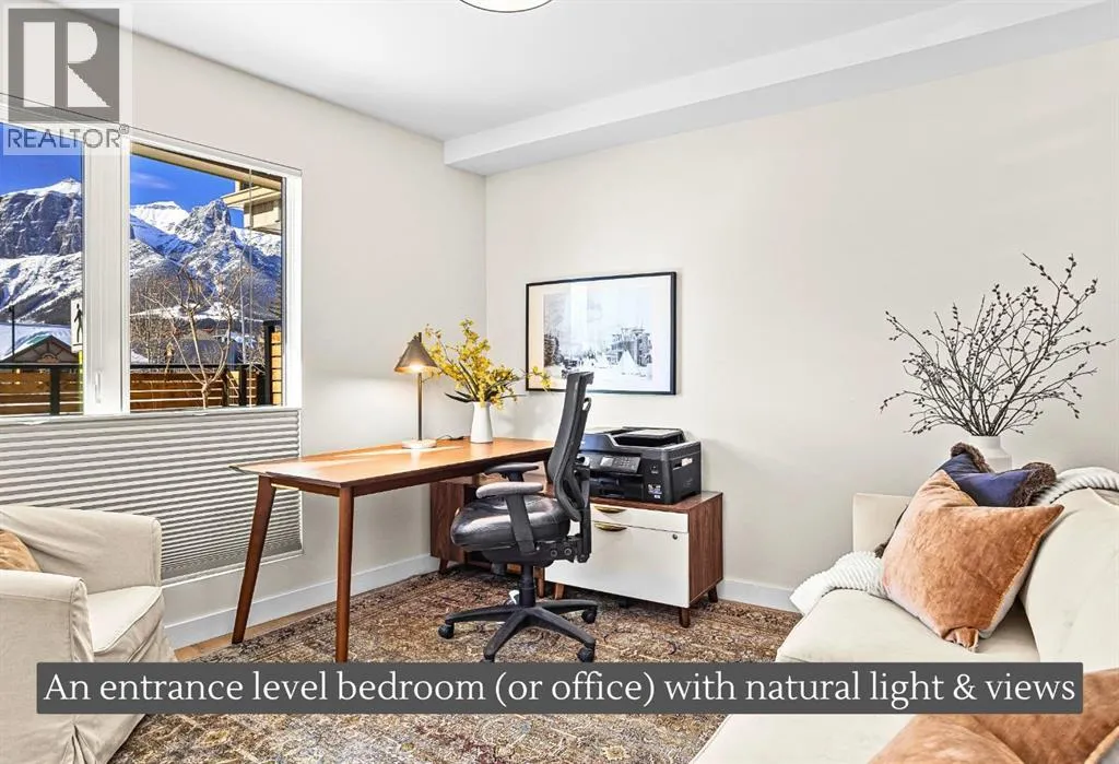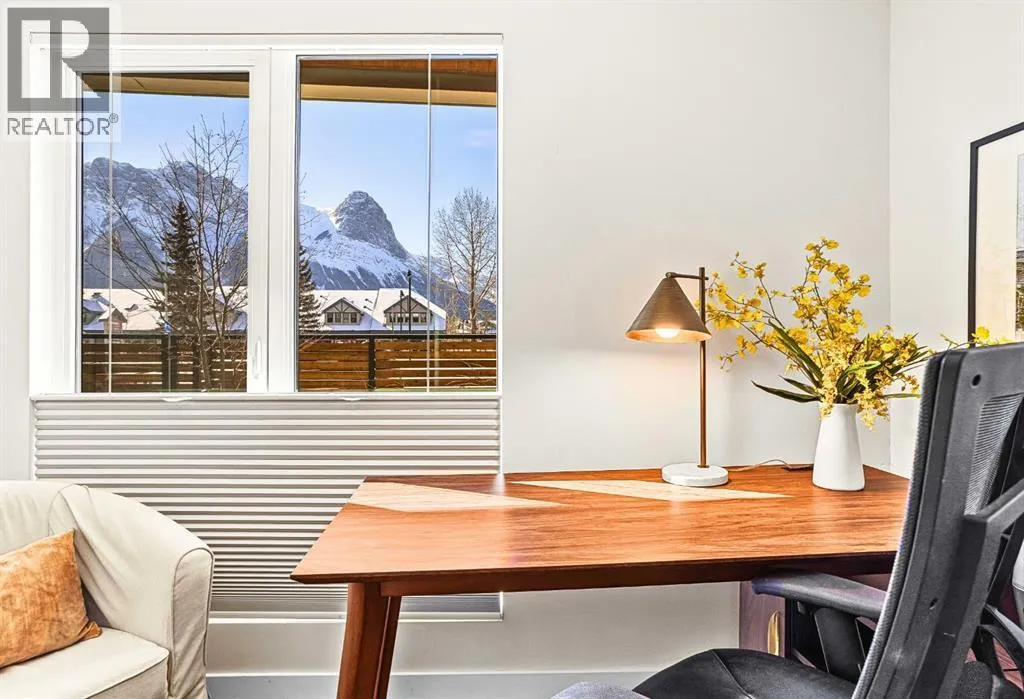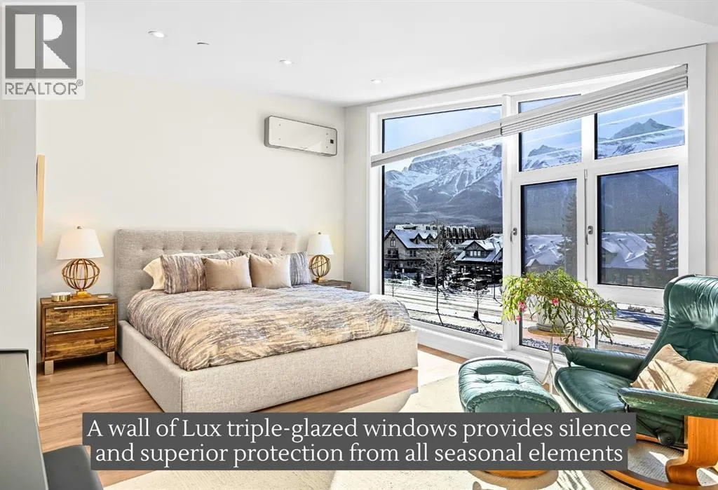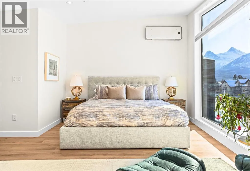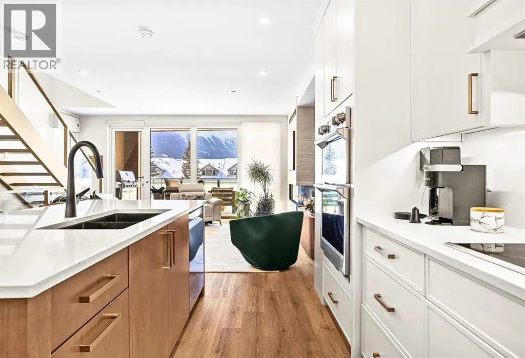 Welcome to the alpine sanctuary of Raven's Peak (Residential Only) in the heart of majestic Canmore â Completed in 2023 by a local homebuilder, this like-new 3-bedroom, 3-bathroom townhome blends thoughtful craftsmanship with refined modern design. Every detail feels intentional. Every space feels elevated. Step into the living room and feel the immediate impact of a dramatic floor-to-ceiling wall of Lux triple glaze windows â a stunning architectural statement that perfectly frames the grand mountain views beyond. Whether itâs sunrise alpenglow or a snow-dusted evening skyline, the striking peaks of the Canadian Rockies become your ever-changing artwork. The heart of the home is a showpiece kitchen anchored by a prominent quartz island â sleek, sculptural, and ideal for entertaining. Efficient stainless steel appliances complement clean modern lines, while a cozy breakfast nook invites slow mornings with coffee and your loved ones. Itâs a space that effortlessly transitions from a quiet intimate evening, to a lively dinner parties with friends. The primary bedroom is nothing short of breathtaking. Imagine waking up to unobstructed mountain views â visible directly from your pillow. No buildings. No rooftops. Just stars, peaks, and bright blue sky. Spacious and serene, this retreat offers the kind of daily inspiration that never grows old. Beyond beauty lies performance. A highly efficient geothermal system provides sustainable heating and cooling year-round, delivering exceptional comfort with reduced environmental impact. Triple-glaze windows enhance both efficiency and tranquility, creating a peaceful indoor environment in every season. Practicality is equally refined. A convenient mudroom and bathroom sit directly off the garage â ideal for after mountain adventures. The single attached garage features durable epoxy flooring and a slatwall organizing system to keep all your gear in order. An exterior hose makes clean-up easy after hikes or bike rides, and the fe nced front patio offers a private space to relax in the alpine sun & air. Perhaps most coveted of all â direct pedestrian access across the street to downtown Canmore. Leave the car behind and stroll to cafés, boutiques, groceries, dining, and trailheads within minutes. No need for Canmore's amazing free public transit, but there is a stop a stones throw away. This is more than a townhome.Itâs modern mountain living â elevated, efficient, and effortlessly connected to the very best of Canmore. (This is a Residential home, No STR allowed) (id:27476)