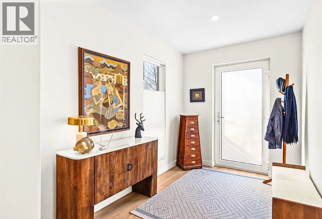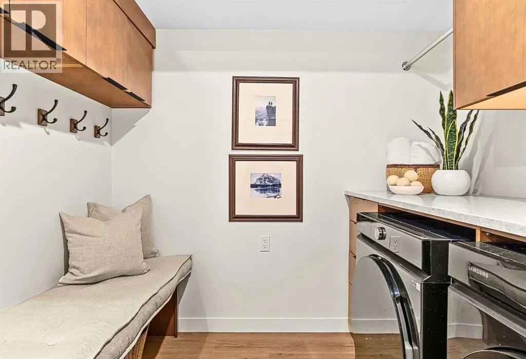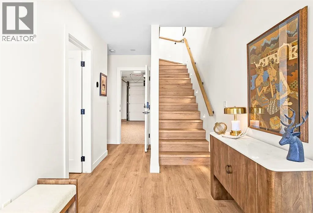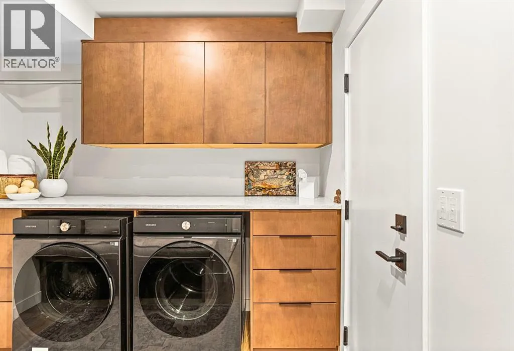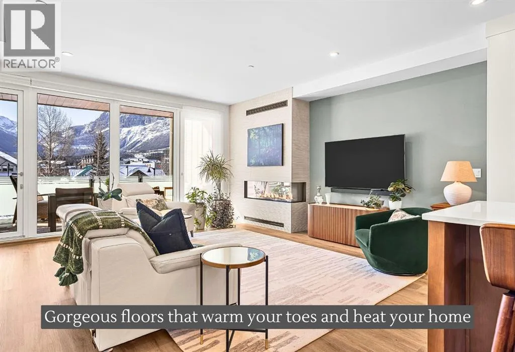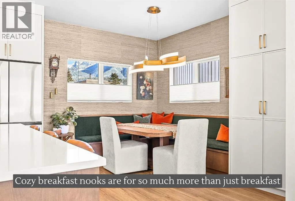Welcome to the alpine sanctuary of Raven's Peak (Residential Only) in the heart of majestic Canmore â Completed in 2023 by a local homebuilder, this like-new 3-bedroom, 3-bathroom townhome blends thoughtful craftsmanship with refined modern design. Every detail feels intentional. Every space feels elevated. Step into the living room and feel the immediate impact of a dramatic floor-to-ceiling wall of Lux triple glaze windows â a stunning architectural statement that perfectly frames the grand mountain views beyond. Whether itâs sunrise alpenglow or a snow-dusted evening skyline, the striking peaks of the Canadian Rockies become your ever-changing artwork. The heart of the home is a showpiece kitchen anchored by a prominent quartz island â sleek, sculptural, and ideal for entertaining. Efficient stainless steel appliances complement clean modern lines, while a cozy breakfast nook invites slow mornings with coffee and your loved ones. Itâs a space that effortlessly transitions from a quiet intimate evening, to a lively dinner parties with friends. The primary bedroom is nothing short of breathtaking. Imagine waking up to unobstructed mountain views â visible directly from your pillow. No buildings. No rooftops. Just stars, peaks, and bright blue sky. Spacious and serene, this retreat offers the kind of daily inspiration that never grows old. Beyond beauty lies performance. A highly efficient geothermal system provides sustainable heating and cooling year-round, delivering exceptional comfort with reduced environmental impact. Triple-glaze windows enhance both efficiency and tranquility, creating a peaceful indoor environment in every season. Practicality is equally refined. A convenient mudroom and bathroom sit directly off the garage â ideal for after mountain adventures. The single attached garage features durable epoxy flooring and a slatwall organizing system to keep all your gear in order. An exterior hose makes clean-up easy after hikes or bike rides, and the fe nced front patio offers a private space to relax in the alpine sun & air. Perhaps most coveted of all â direct pedestrian access across the street to downtown Canmore. Leave the car behind and stroll to cafés, boutiques, groceries, dining, and trailheads within minutes. No need for Canmore's amazing free public transit, but there is a stop a stones throw away. This is more than a townhome.Itâs modern mountain living â elevated, efficient, and effortlessly connected to the very best of Canmore. (This is a Residential home, No STR allowed) (id:27476)