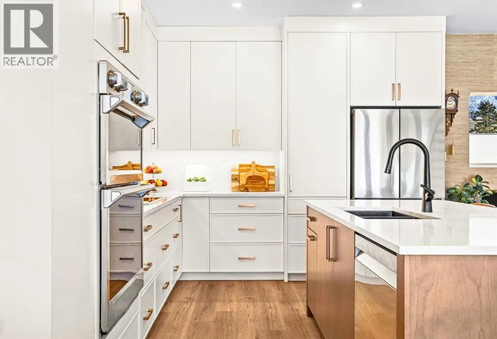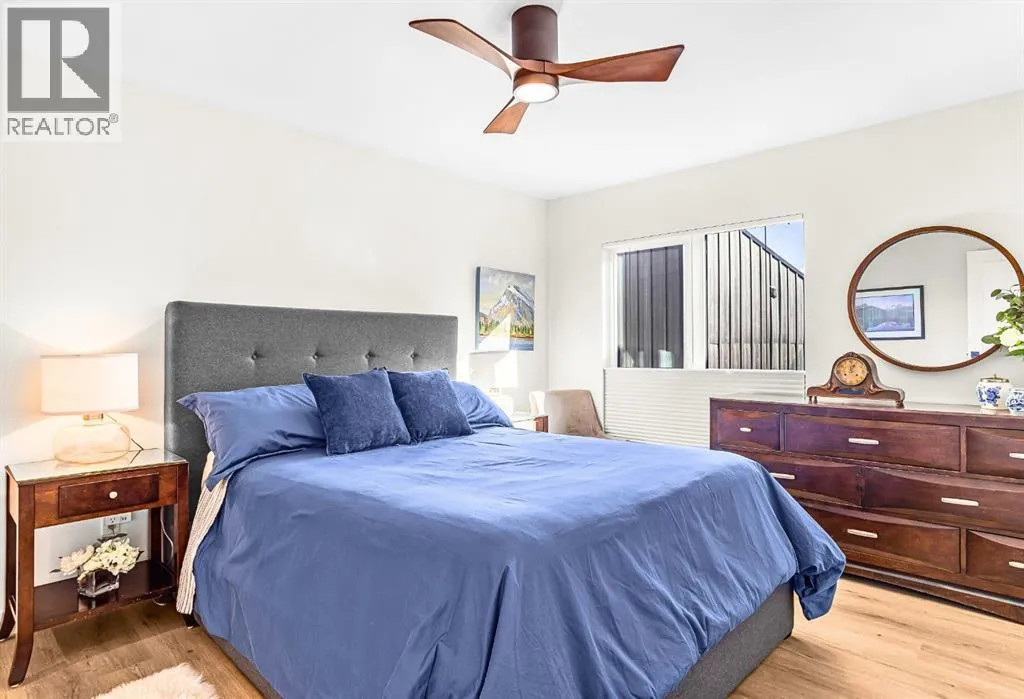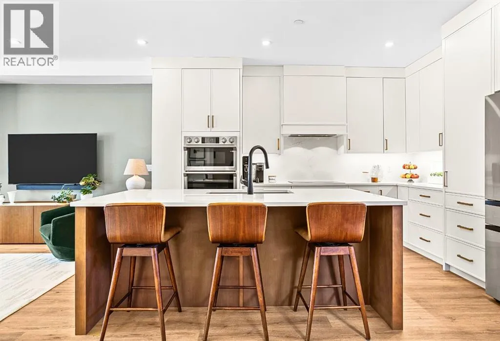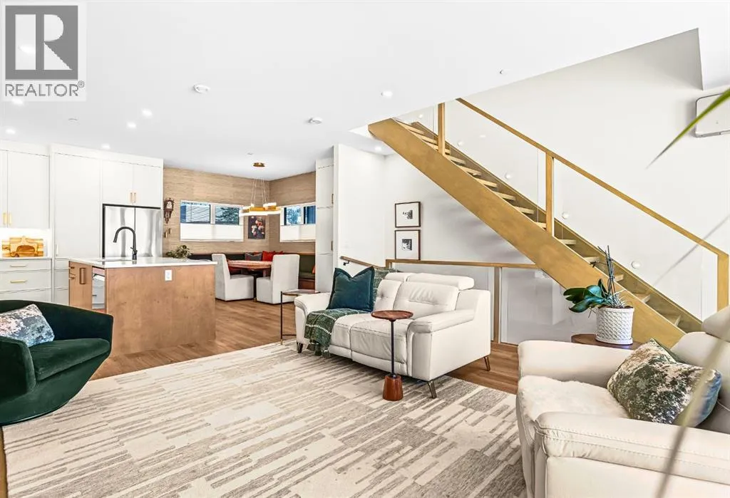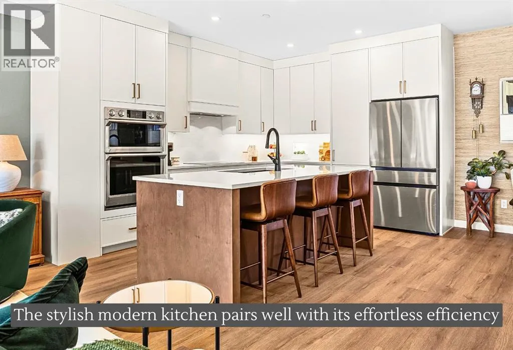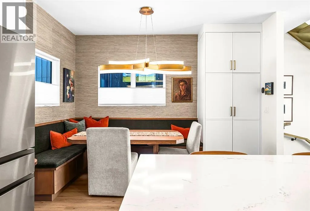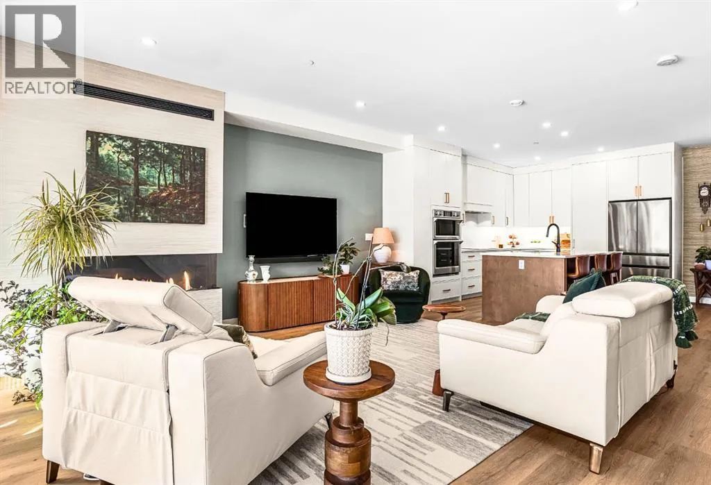 Welcome to the alpine sanctuary of Raven's Peak (Residential Only) in the heart of majestic Canmore â Completed in 2023 by a local homebuilder, this like-new 3-bedroom, 3-bathroom townhome blends thoughtful craftsmanship with refined modern design. Every detail feels intentional. Every space feels elevated. Step into the living room and feel the immediate impact of a dramatic floor-to-ceiling wall of Lux triple glaze windows â a stunning architectural statement that perfectly frames the grand mountain views beyond. Whether itâs sunrise alpenglow or a snow-dusted evening skyline, the striking peaks of the Canadian Rockies become your ever-changing artwork. The heart of the home is a showpiece kitchen anchored by a prominent quartz island â sleek, sculptural, and ideal for entertaining. Efficient stainless steel appliances complement clean modern lines, while a cozy breakfast nook invites slow mornings with coffee and your loved ones. Itâs a space that effortlessly transitions from a quiet intimate evening, to a lively dinner parties with friends. The primary bedroom is nothing short of breathtaking. Imagine waking up to unobstructed mountain views â visible directly from your pillow. No buildings. No rooftops. Just stars, peaks, and bright blue sky. Spacious and serene, this retreat offers the kind of daily inspiration that never grows old. Beyond beauty lies performance. A highly efficient geothermal system provides sustainable heating and cooling year-round, delivering exceptional comfort with reduced environmental impact. Triple-glaze windows enhance both efficiency and tranquility, creating a peaceful indoor environment in every season. Practicality is equally refined. A convenient mudroom and bathroom sit directly off the garage â ideal for after mountain adventures. The single attached garage features durable epoxy flooring and a slatwall organizing system to keep all your gear in order. An exterior hose makes clean-up easy after hikes or bike rides, and the fe nced front patio offers a private space to relax in the alpine sun & air. Perhaps most coveted of all â direct pedestrian access across the street to downtown Canmore. Leave the car behind and stroll to cafés, boutiques, groceries, dining, and trailheads within minutes. No need for Canmore's amazing free public transit, but there is a stop a stones throw away. This is more than a townhome.Itâs modern mountain living â elevated, efficient, and effortlessly connected to the very best of Canmore. (This is a Residential home, No STR allowed) (id:27476)