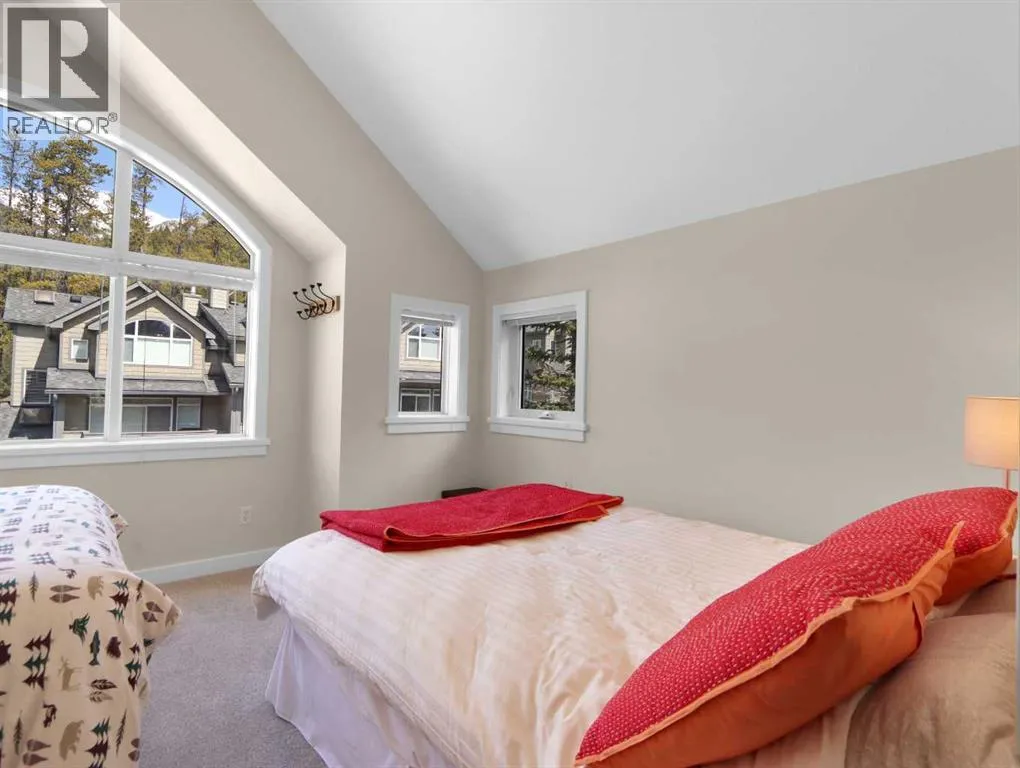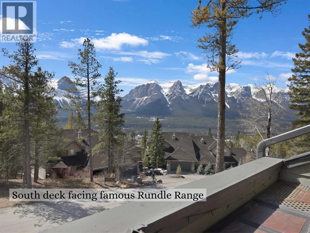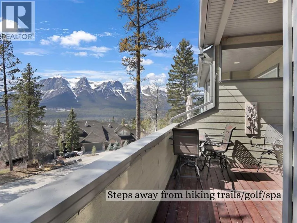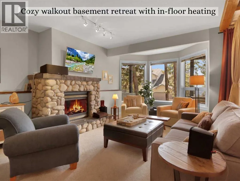 Immerse yourself in breathtaking mountain views from every angle of this 3 bedroom open-plan 2,785 sqft half duplex in Silvertip. The grand foyer leads to a living room with soaring cathedral ceilings, a striking stone-surround gas fireplace, and an impressive wall of south-facing windows. Multiple decks throughout the property provide unparalleled vantage points for soaking in the sun & mountain views. A few steps up is the dining room and spacious kitchen, complete with a versatile nook/office area. Upstairs, the generous primary suite boasts vaulted ceilings, captivating views, and a luxurious 5-pce ensuite. A second large bedroom with a 4-pce ensuite and a laundry room complete this floor. The walkout lower level features a 3rd bedroom & family room (or 4th bedroom) with another stone-surround gas fireplace, south-facing windows, a view patio, a wet bar, and a 4-pce bath-all with in-slab heating. A heated double garage and ample storage make this home truly exceptional. (id:27476)