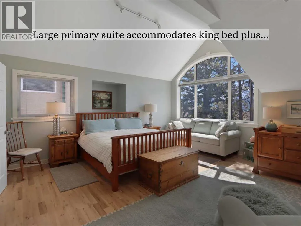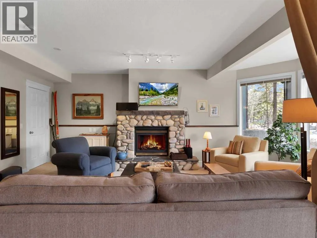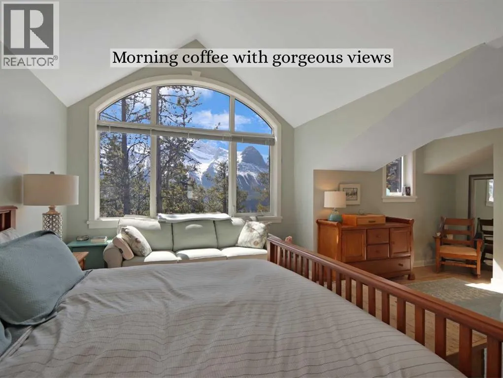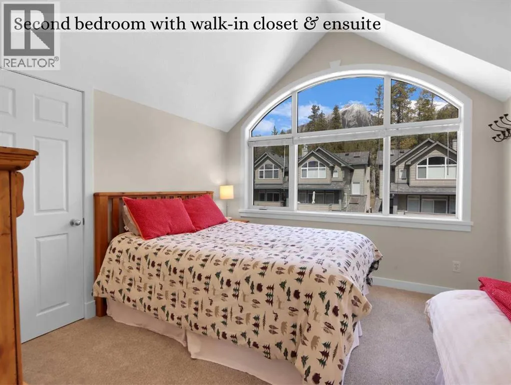 Immerse yourself in breathtaking mountain views from every angle of this 3 bedroom open-plan 2,785 sqft half duplex in Silvertip. The grand foyer leads to a living room with soaring cathedral ceilings, a striking stone-surround gas fireplace, and an impressive wall of south-facing windows. Multiple decks throughout the property provide unparalleled vantage points for soaking in the sun & mountain views. A few steps up is the dining room and spacious kitchen, complete with a versatile nook/office area. Upstairs, the generous primary suite boasts vaulted ceilings, captivating views, and a luxurious 5-pce ensuite. A second large bedroom with a 4-pce ensuite and a laundry room complete this floor. The walkout lower level features a 3rd bedroom & family room (or 4th bedroom) with another stone-surround gas fireplace, south-facing windows, a view patio, a wet bar, and a 4-pce bath-all with in-slab heating. A heated double garage and ample storage make this home truly exceptional. (id:27476)