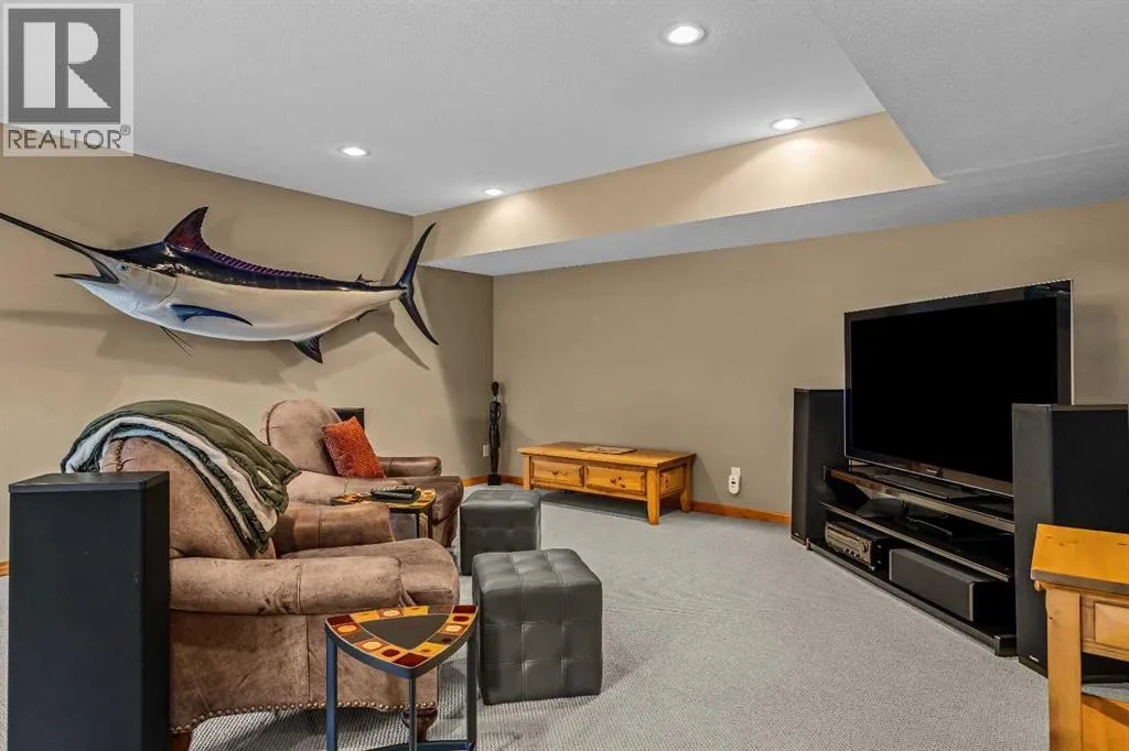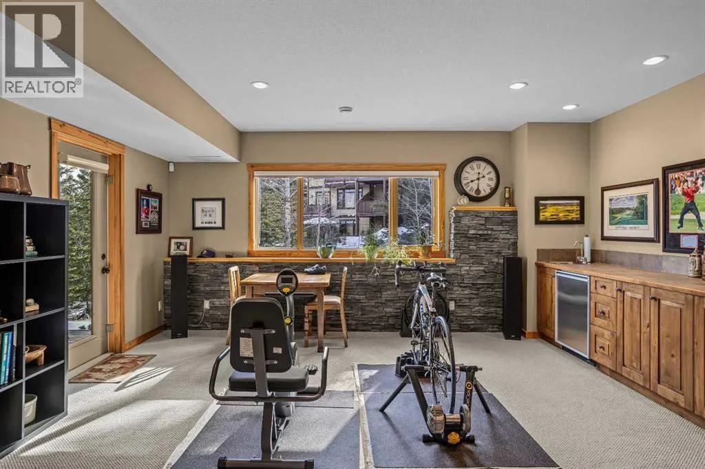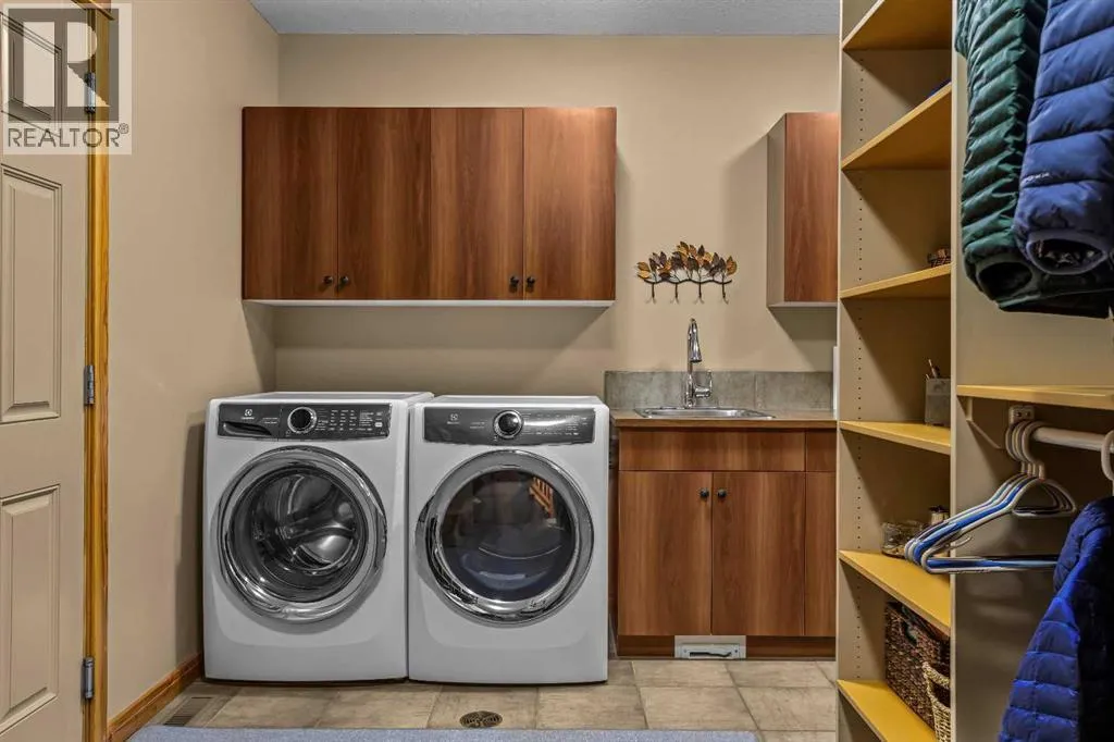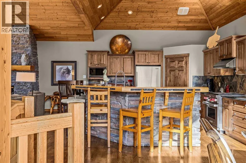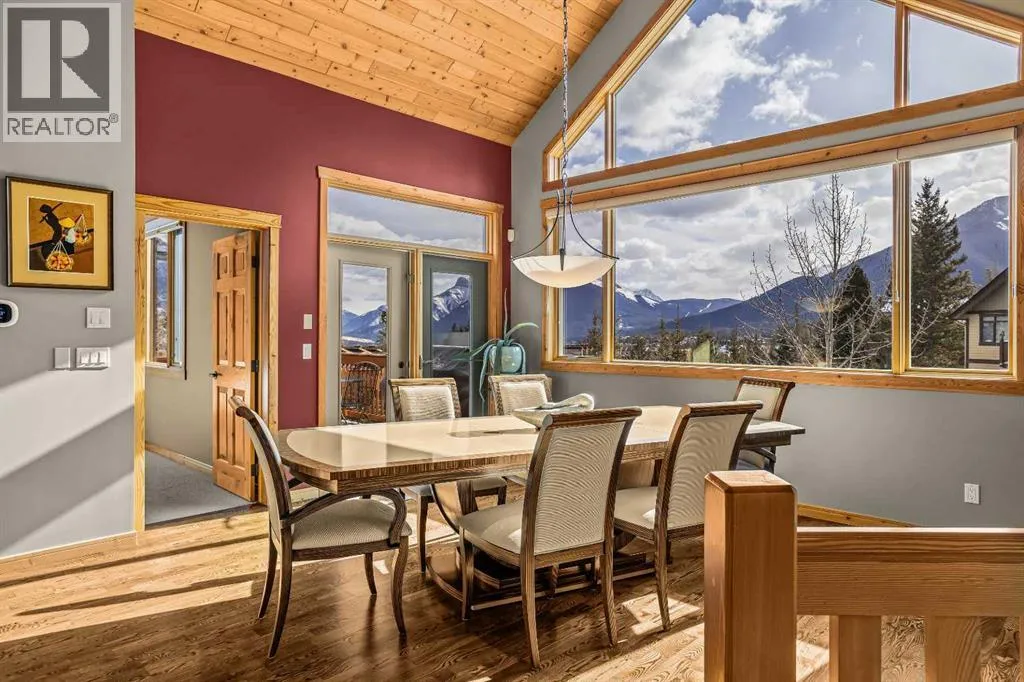 Set within the exclusive enclave of Hubman Landing, this 5-bedroom, 5-bathroom residence offers over 4,100 sq ft of living space, thoughtfully positioned to capture exceptional views from nearly every window. Elevated above the surrounding trees and backing onto privacy, the home embraces its natural setting with multiple outdoor patios and balconies designed to take full advantage of the landscape. The main level is anchored by vaulted ceilings and warm hardwood flooring, creating a timeless Canmore aesthetic. The kitchen is both functional and inviting, opening into generous living and dining spaces that frame the mountains beyond. The primary suite is conveniently located on the main floor for true one-level living and features a striking floor-to-ceiling fireplace, creating a dramatic focal point while maintaining a sense of comfort and retreat.The walkout lower level provides additional living space with separation between levels, ideal for guests, family, or multi-generational living. With five bedrooms and five bathrooms in total, the layout offers flexibility without compromising privacy. A tranquil backyard with a flagstone patio and fire pit, surrounded by mature trees, offers a private outdoor retreat that complements the homeâs elevated setting. A double-car garage, expansive square footage, and a setting that combines elevation, views, and seclusion make this a rare opportunity in one of Canmoreâs most sought-after communities. (id:27476)