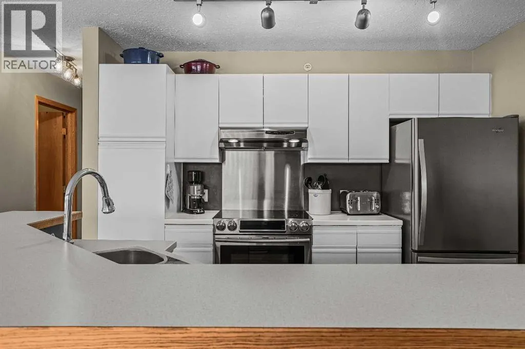 Enjoy breathtaking mountain views from the large private balcony of this spacious top floor 3 bedroom , 1 bathroom home. Thoughtfully designed with comfortable living all on one floor, this unit features in-suite laundry and upgraded appliances for added convenience. The oversized heated storage area provides exceptional space for seasonal items and extras. Includes 2 assigned parking stalls (one covered). A fantastic opportunity offering space, functionality, and incredible views all in one package. (id:27476)