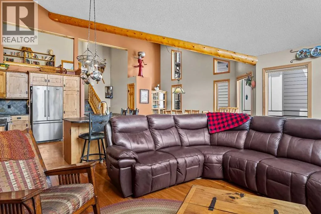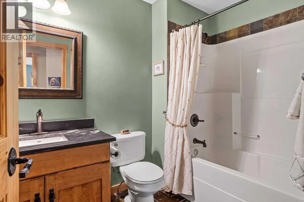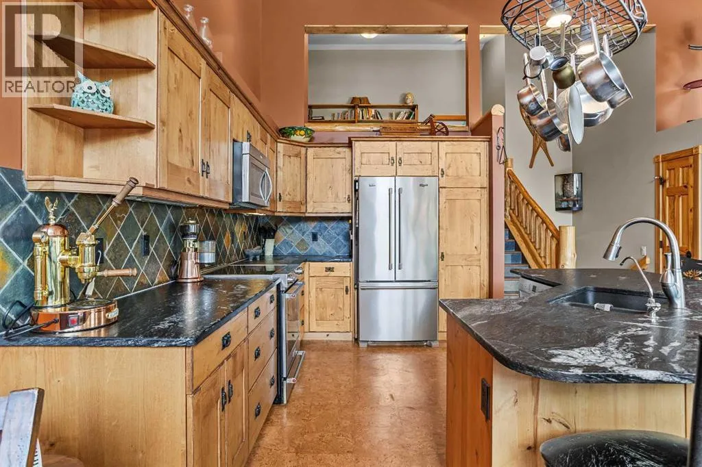 This 3 bed, 3-bath mountain retreat offers over 2,400 sq ft of beautifully designed living space, ideal for full-time living or as a luxurious getaway. Step into the main floor where soaring vaulted ceilings and expansive windows flood the open-concept living area with natural light. The gourmet kitchen is a chefâs dream, featuring stainless steel appliances, leathered granite countertops, abundant cabinetry, and a seamless flow into the dining and living spaces. A striking stone fireplace anchors the living room, creating a warm and inviting atmosphere, while the spacious deck invites you to soak in unobstructed mountain views. The private primary suite occupies its own floorâa true sanctuary complete with a walk-in closet, private deck, and a spa-inspired 4-piece ensuite. Enjoy quartz countertops, double vanities, and a large walk-in shower in this peaceful retreat. The second level includes two generous bedrooms, a full 4-piece bath, and a convenient laundry area. The lower level can be used as an illegal suite or additional living space for guests or multi-generational living, with its separate entrance, cozy living area, Murphy bed, bathroom, storage, and a handy countertop range. Step outside to a private backyard oasis with a hot tub, fire pit, and plenty of seating for entertaining under the stars. Whether you're enjoying a quiet evening by the fire or hosting friends on the deck with panoramic views, this home offers the perfect blend of comfort, luxury, and mountain lifestyle. (id:27476)