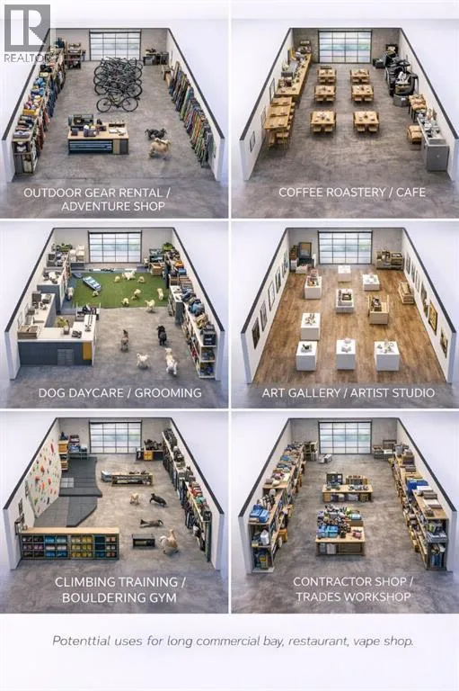 Excellent leasing opportunity in Canmoreâs Transition Industrial District with high traffic exposure. Unit 31 offers approximately 1,388.5 sq. ft. (129 m²) and is ideal for light manufacturing, contractor services, retail/wholesale operations, studio space, office, veterinary clinic, and other compatible commercial uses subject to Town approval. The unit features 12â7â clear ceiling height, durable steel/concrete construction, a 10â x 10â overhead door, an independent entrance, aluminum storefront windows, and a 4â concrete floor. The building will be fully sprinklered and includes emergency lighting, rough-ins for HVAC and plumbing, and a dedicated 225 amp 120/208 electrical panel with an independent meter. Convenient access with street parking, bicycle parking, and additional on-site parking available. Great opportunity for businesses looking to establish themselves in one of Canmoreâs growing commercial areas. (id:27476)