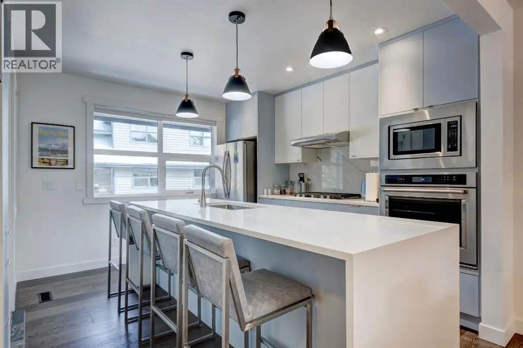 Townhouse with garage and stunning mountain views. Enjoy unobstructed mountain views from both the front and back of this well designed townhouse, offering three bedrooms and two and a half bathrooms across a functional, light filled floorplan. The main level features an updated open concept kitchen, dining and living area highlighted by vaulted ceilings and expansive windows that flood the space with natural light and showcase the surrounding scenery. Step outside to a spacious deck off the living room, plus a second deck on the opposite side, perfect for enjoying sun at different times of day. Upstairs, two generously sized bedrooms each offer their own bathroom and ample closet space, creating comfortable private retreats. The lower level provides a third bedroom or flexible rec room, along with abundant storage. Located in a well managed complex on the sunny side of the valley, this home offers a desirable lifestyle with easy access to nearby hiking and biking trails, making it ideal for full time living or a mountain getaway. (id:27476)