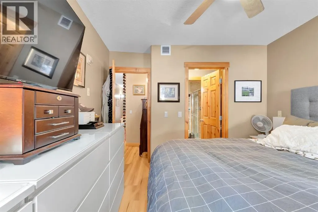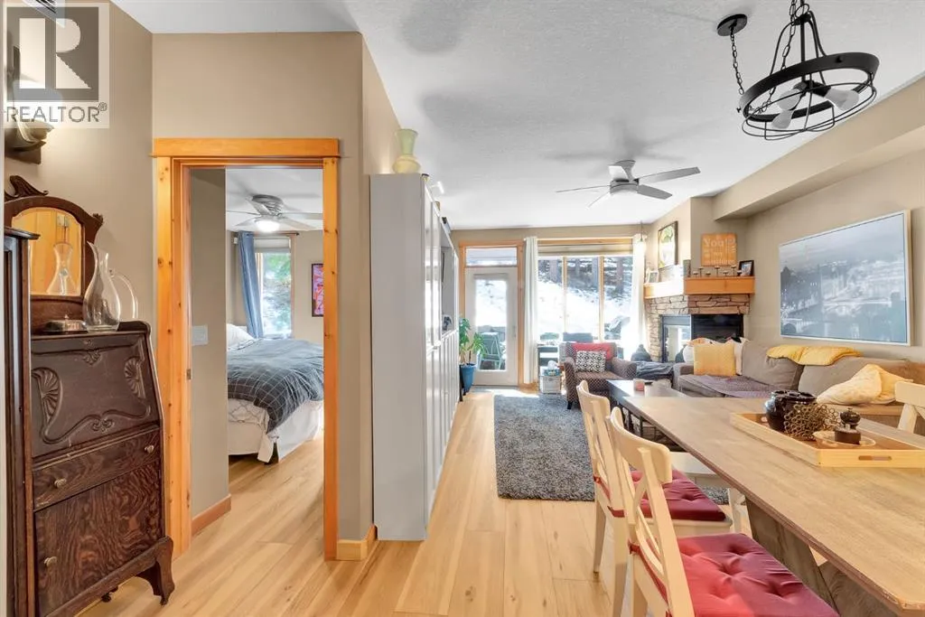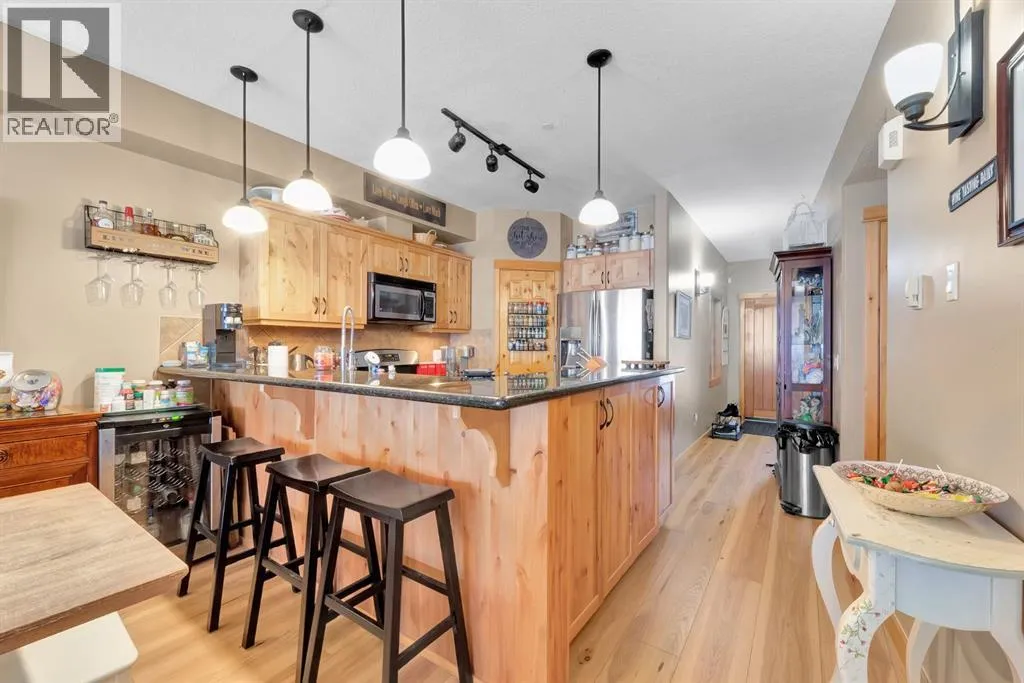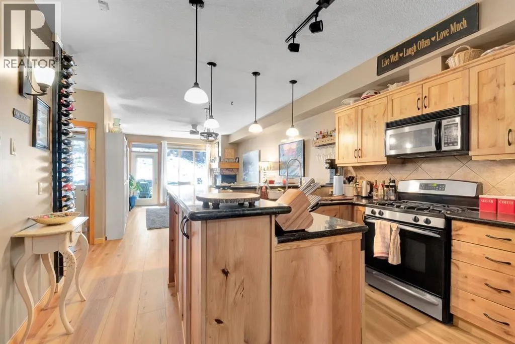 This 2 bed, 2 bath home in Canmoreâs sought after Three Sisters community offers the perfect mix of comfort, function, and location. Inside, youâll find exposed wood cabinetry, solid stone countertops, and matching wood trim, doors, and vanities that give the home a clean, mountain feel. The open layout includes a gas fireplace with exposed rock and a wooden mantle, plus loads of natural light and a primary suite with a 3 piece ensuite and walk in closet. Heated linoleum floors with in-floor radiant water heating keep things efficient and warm year round. Step outside to your private patio with a built in gas BBQ, great for winding down after a day in the mountains or entertaining friends and family. This unit comes with two heated, secured underground parking stalls and a large heated storage unit for all your gear. You're minutes to Stewart Creek Golf Course, downtown Canmoreâs restaurants and shops, and right next to a network of hiking, biking, and walking trails. Banff National Park is just 15 minutes away, with four major ski resorts - Norquay, Sunshine, Nakiska, and Lake Louise, all within a 40 minute drive. A clean, well-kept home in a prime location - ready for full time living or a mountain escape. (id:27476)
