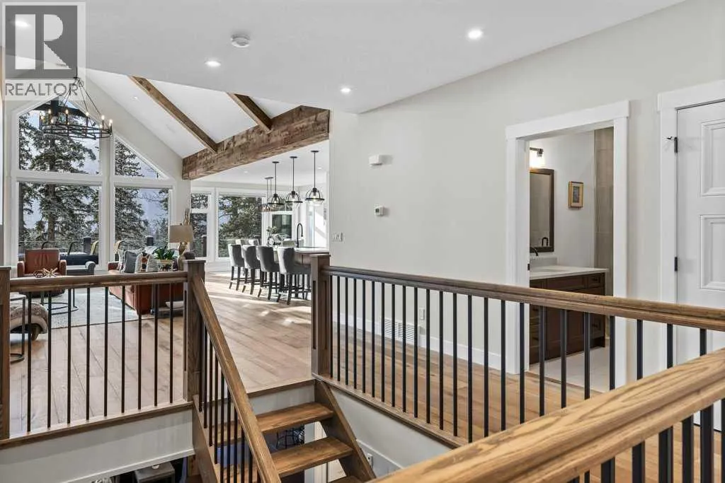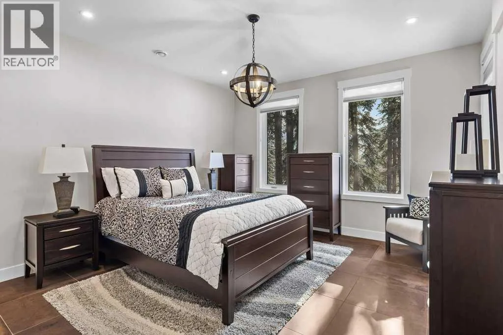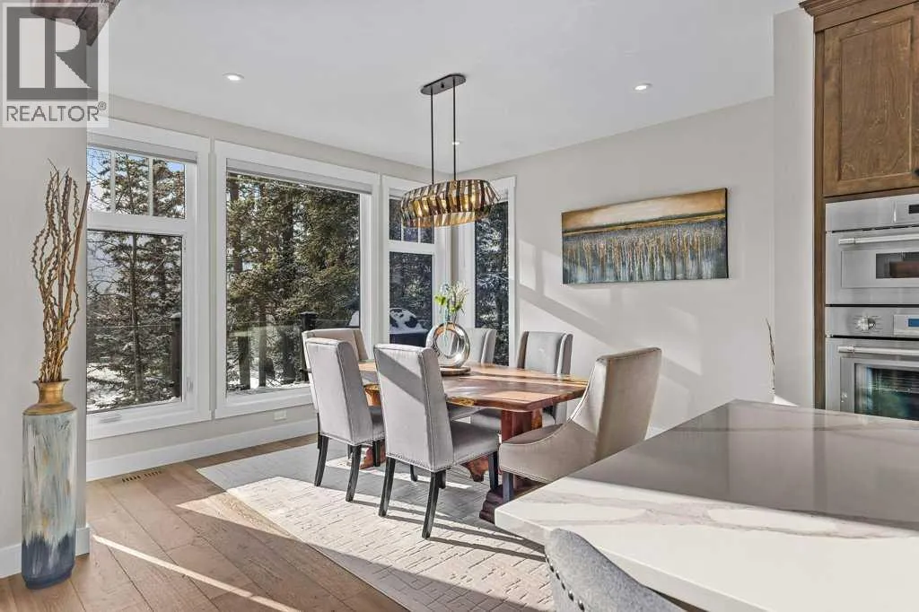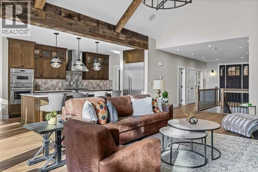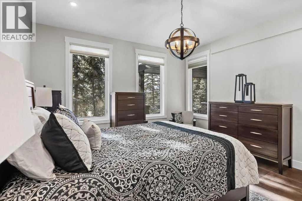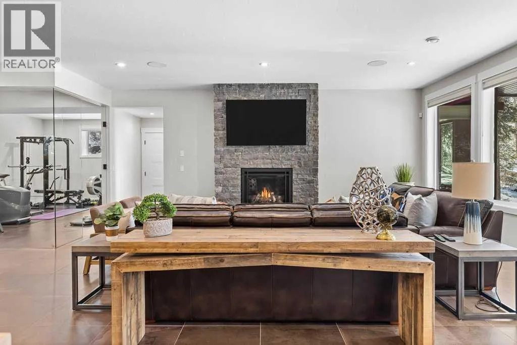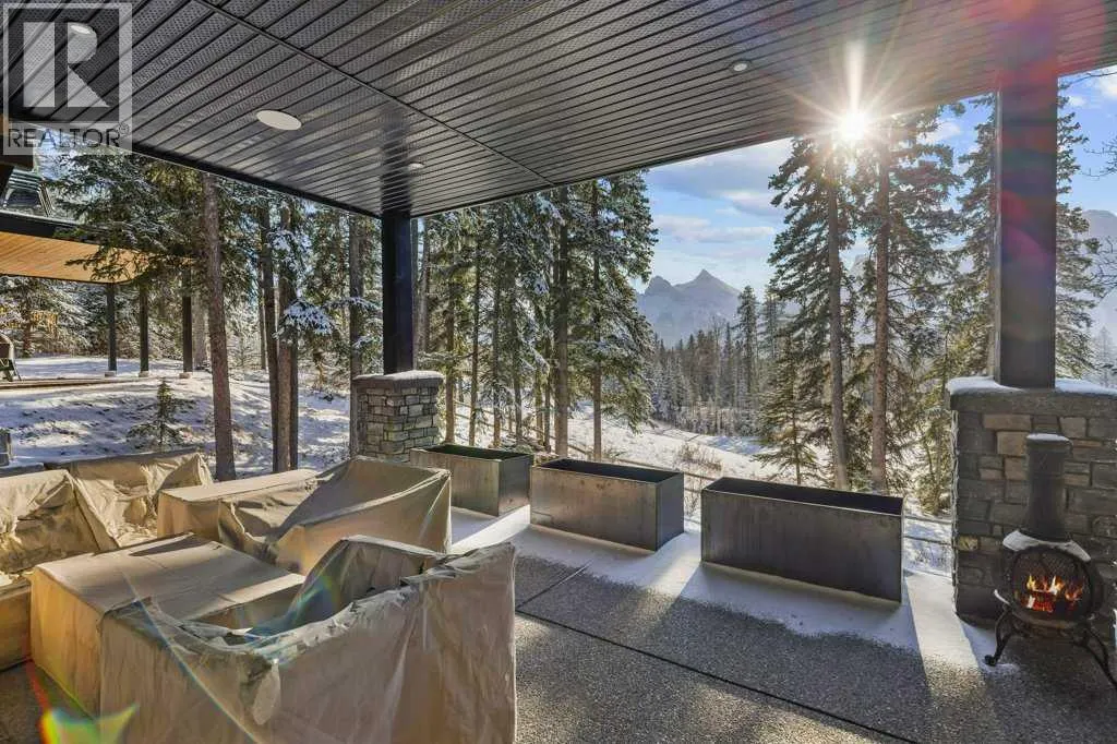 Experience this 3 year old luxurious mountain home located in Silvertip! Nestled in a private location on a huge lot backing onto the Silvertip Golf Course, this four bedroom, four bathroom home boasts 4200 square feet of spectacular mountain views and generous indoor and outdoor living spaces offering lavish features throughout. The main level features a kitchen with large pantry and great room with a grand, stone fireplace, vaulted ceilings, and beam work as well as a master bedroom with en-suite and walk in closet, den/bedroom with walk in closet, full bath, and laundry room. The walkout basement offers a custom wine display and wet bar, recreation and living area with fireplace, fitness room, junior master with en-suite, an additional bedroom, full bathroom, and two storage areas. Features include Thermador appliances, open riser stairs, nine foot basement ceilings, Sonos sound system, Kohler steam shower, in floor heating in basement and garage, triple car garage, landscaping, and much more. Professional interior design services were provided to create a timeless, classic, luxurious, and mountain modern aesthetic. Fully furnished including patio furniture. (id:27476)