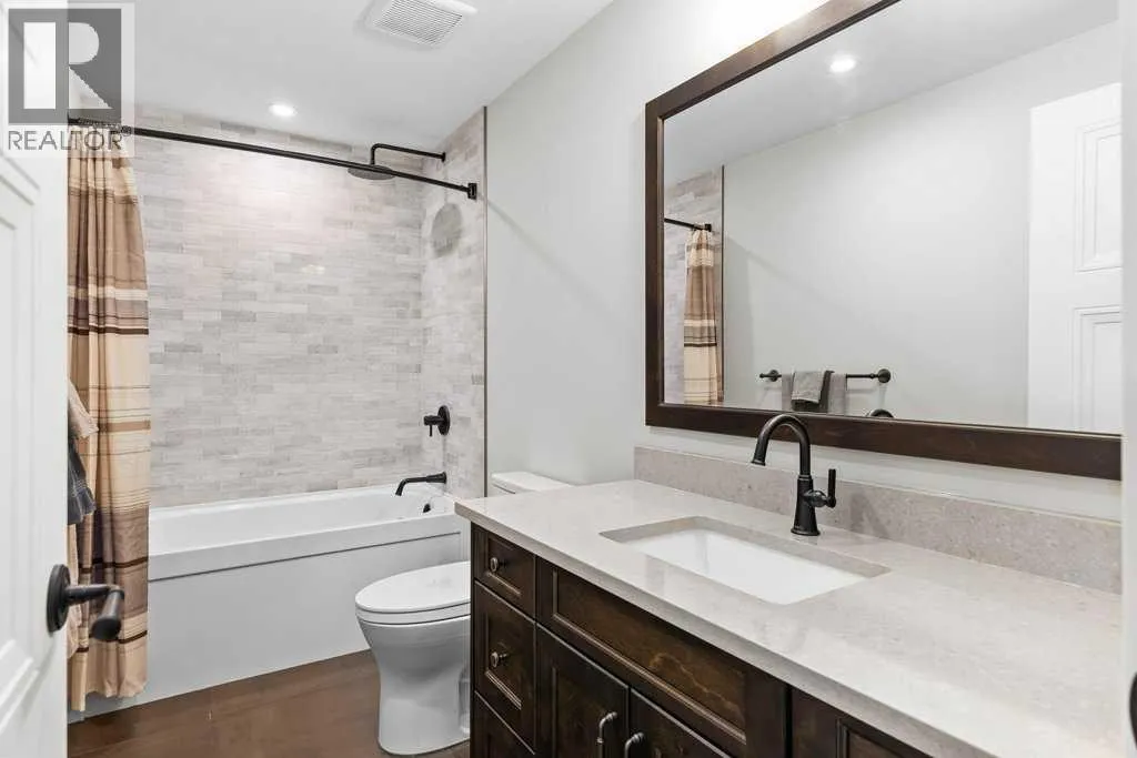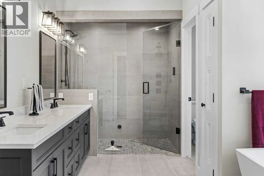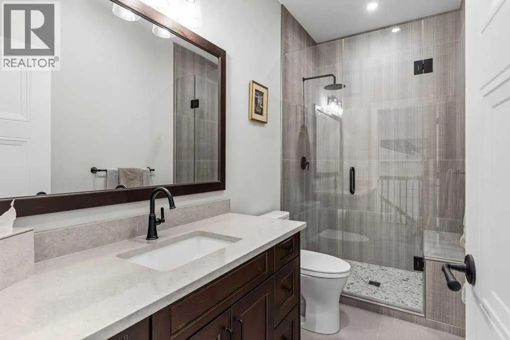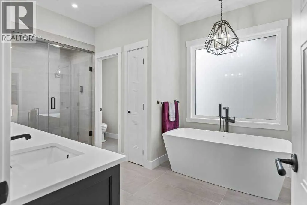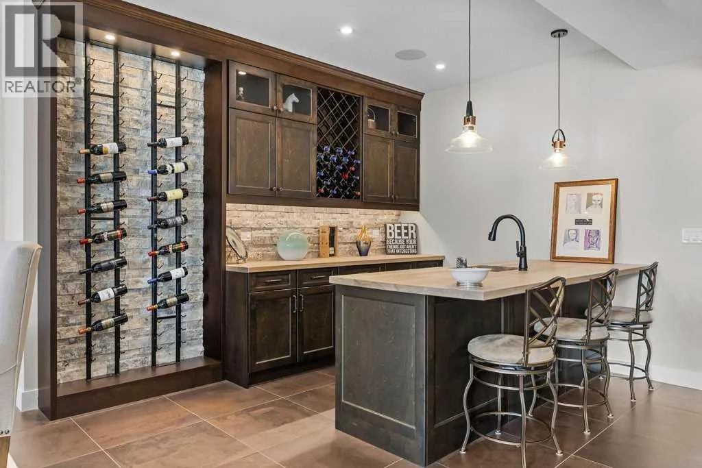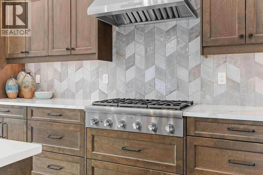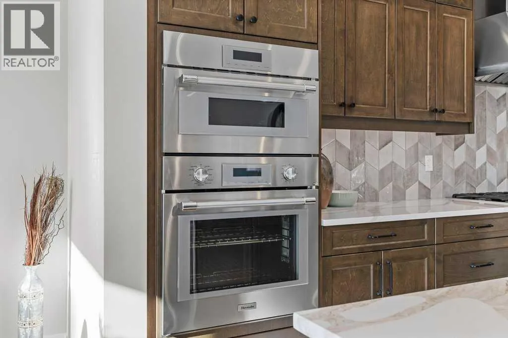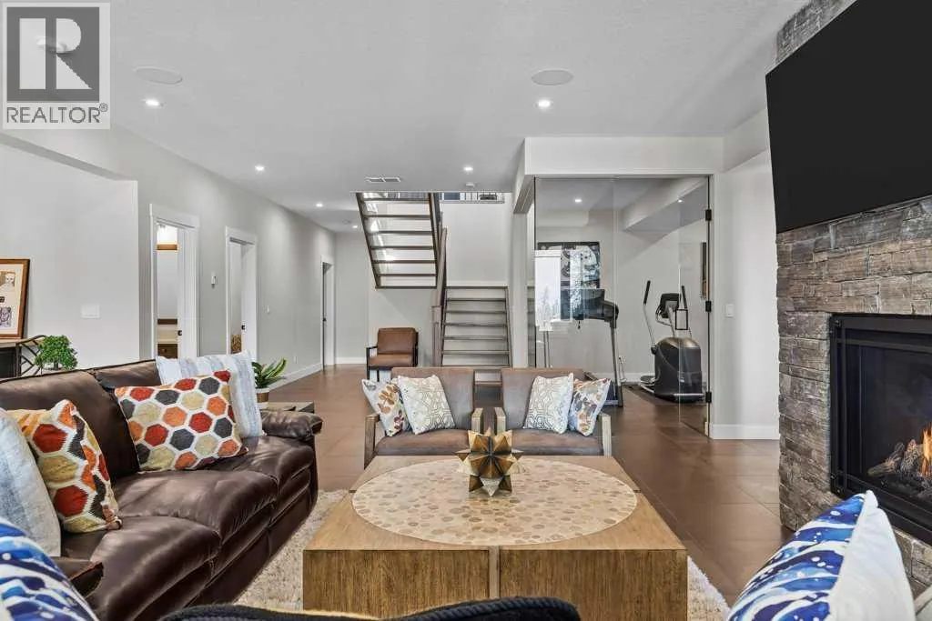 Experience this 3 year old luxurious mountain home located in Silvertip! Nestled in a private location on a huge lot backing onto the Silvertip Golf Course, this four bedroom, four bathroom home boasts 4200 square feet of spectacular mountain views and generous indoor and outdoor living spaces offering lavish features throughout. The main level features a kitchen with large pantry and great room with a grand, stone fireplace, vaulted ceilings, and beam work as well as a master bedroom with en-suite and walk in closet, den/bedroom with walk in closet, full bath, and laundry room. The walkout basement offers a custom wine display and wet bar, recreation and living area with fireplace, fitness room, junior master with en-suite, an additional bedroom, full bathroom, and two storage areas. Features include Thermador appliances, open riser stairs, nine foot basement ceilings, Sonos sound system, Kohler steam shower, in floor heating in basement and garage, triple car garage, landscaping, and much more. Professional interior design services were provided to create a timeless, classic, luxurious, and mountain modern aesthetic. Fully furnished including patio furniture. (id:27476)