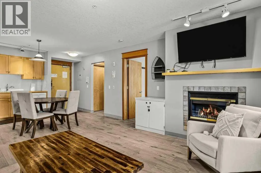 Discover a rare turn-Key investment opportunity: 1bed/1bath hotel condo unit at the popular Windtower in the heart of beautiful Canmore. This well-appointed 1-bedroom unit is already performing successfully as a short-term rental, offering immediate income potential through platforms such as Airbnb. The condo features in-floor heating, a full kitchen, electric fireplace, keypad entry, washer/dryer and two TVs for guest comfort. A pull-out sofa allows the unit to sleep up to four guests. Enjoy mountain views from the private patio with BBQ. Owners benefit from a titled, secure underground parking stall, elevator access, fitness room, and a brand-new hot tub currently under constructionâan amenity that will further enhance guest appeal. Windtower offers a cozy lobby, on-site Japanese take-out, and an arts gallery. Just a short walk to downtown Canmoreâs restaurants, shops, and trails, this property combines lifestyle enjoyment with strong vacation rental potential in one of the Rockiesâ most desirable destinations. The list price includes 5% GST which buyers can defer if they are tax registered. Consult with your professional accountant! (id:27476)