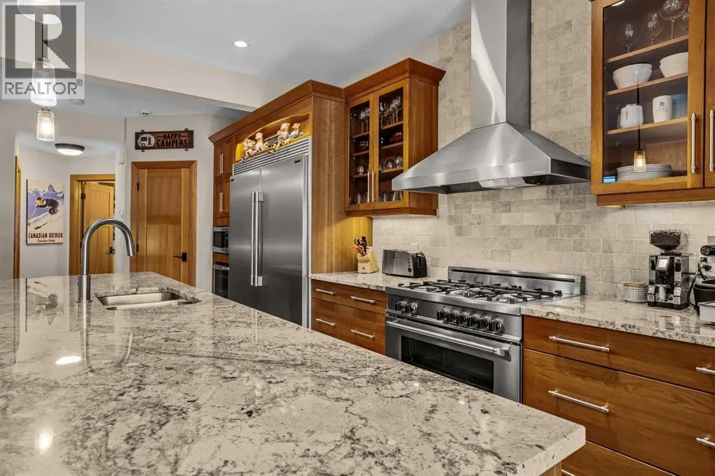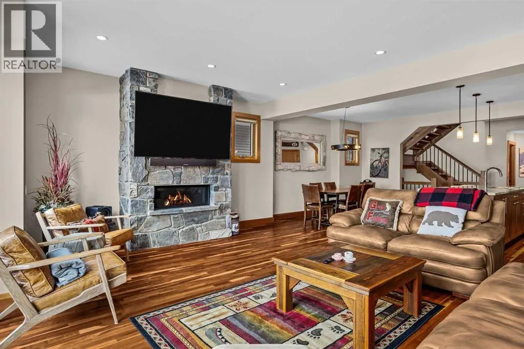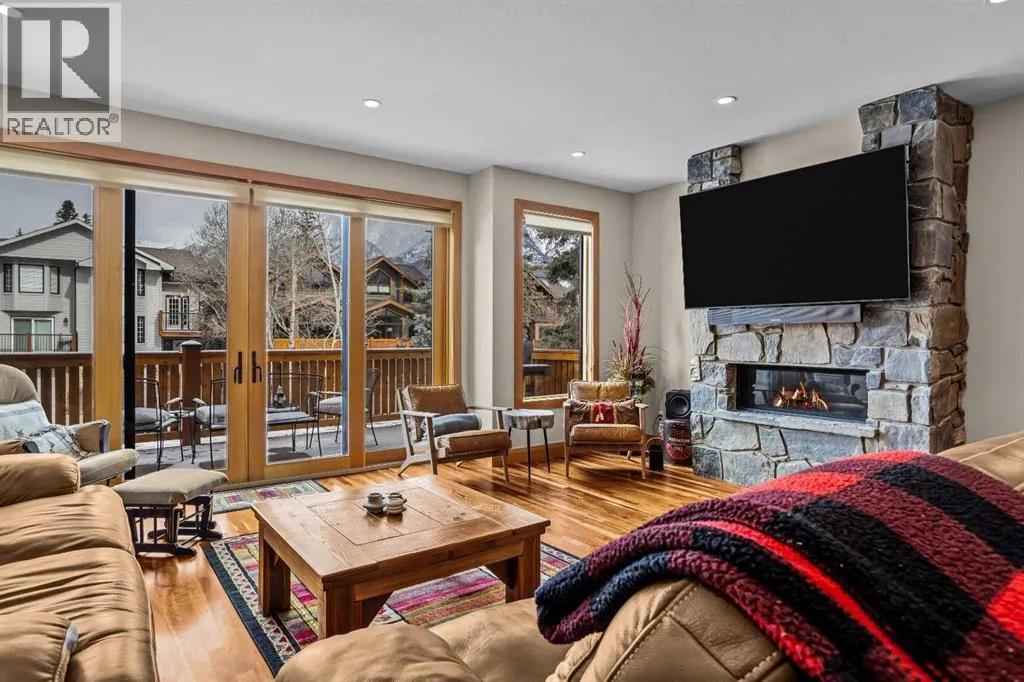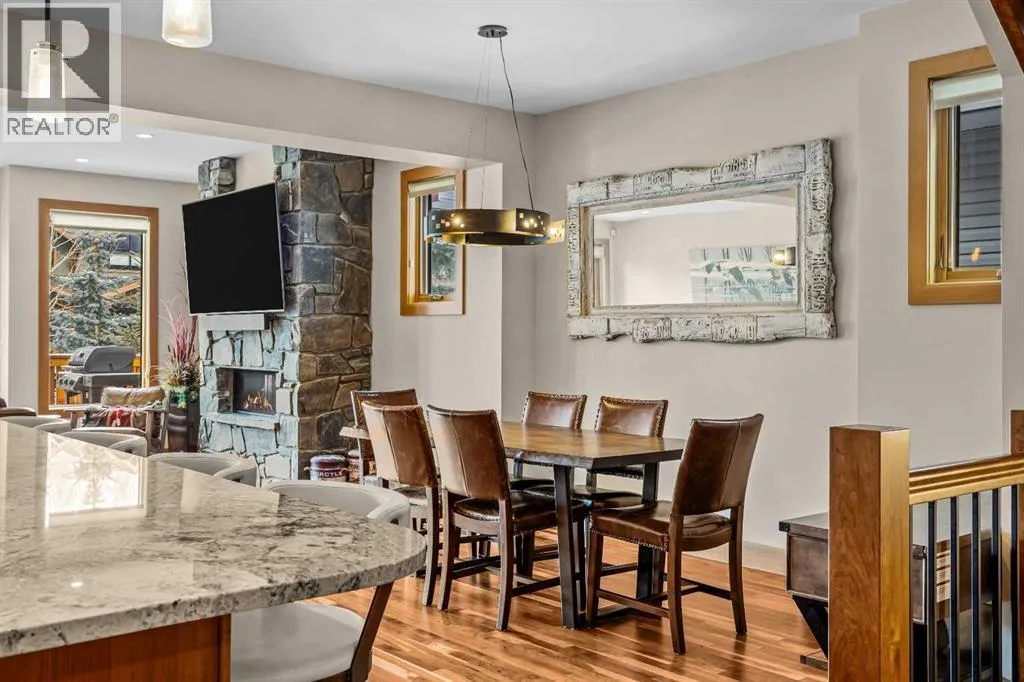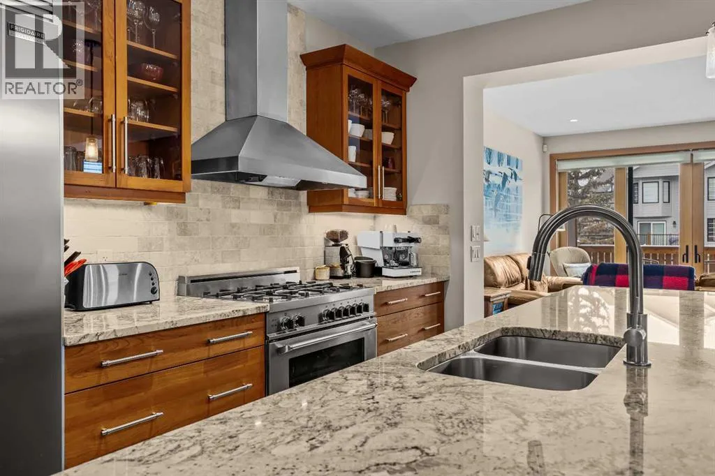 Light, space, and effortless mountain living come together in this exceptional 3-storey townhomeâone of the final 4-plex residences built by Elk Run Developments. With over 2,400 square feet, this home is designed for those who love to gather, entertain, and enjoy the Canmore lifestyle.The top level features two spacious bedrooms, each with its own ensuite, creating a peaceful retreat at the end of the day. The heart of the home is the second level, where a stunning Legacy Kitchen anchors the space with a large island, Italian range, oversized fridge/freezer, and wine fridgeâperfect for hosting dinners for 10+ in the generous dining area. Floor-to-ceiling windows fill the living room with light and open directly to the front deck.The entry level offers heated floors, a fourth bedroom with full bath, a large mudroom, and welcoming foyerâideal after a day on the trails. Four dedicated parking spots, including a double garage with epoxy flooring, make life easy.All just one block from the river pathway system and a short walk to shops and restaurants in South Canmore. Spacious, low-maintenance living designed for the mountain lifestyleâwith all furniture included, except the TV above the living room fireplace, making this a truly move-in-ready opportunity. (id:27476)