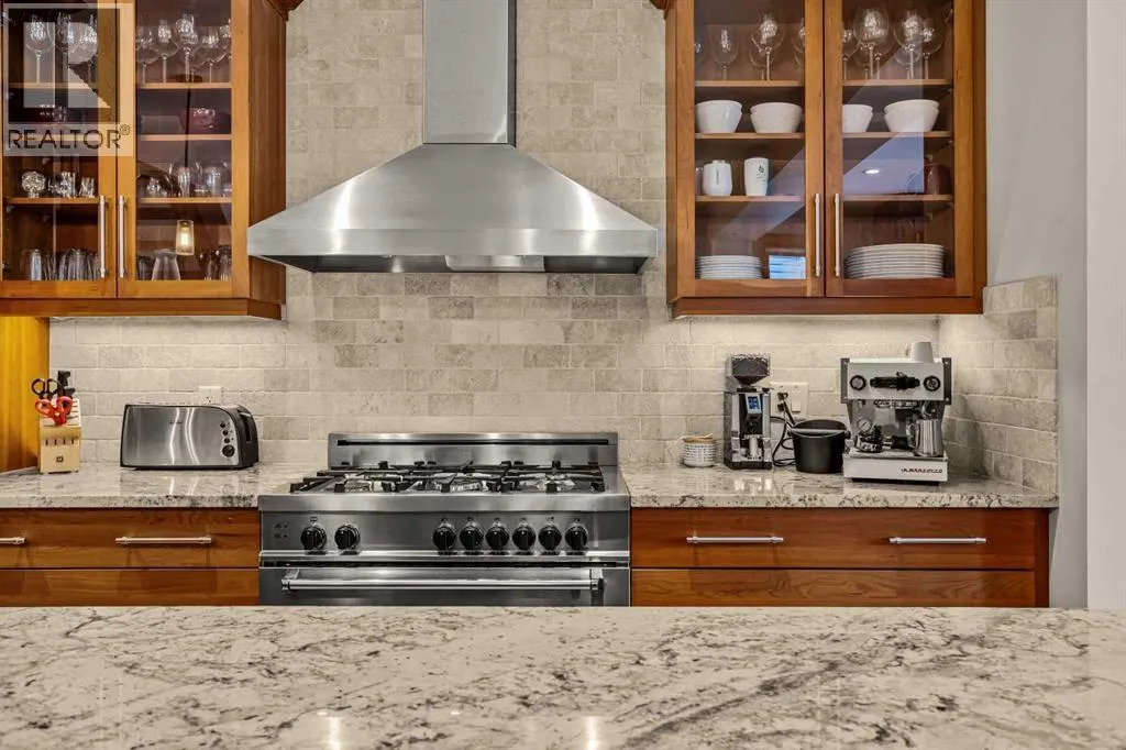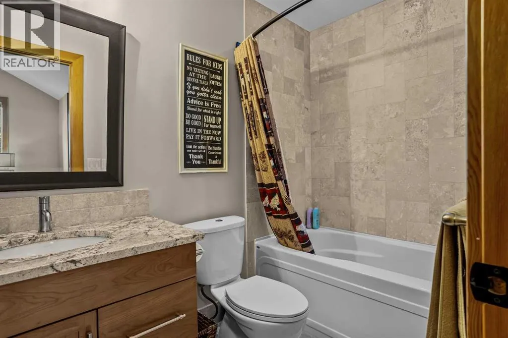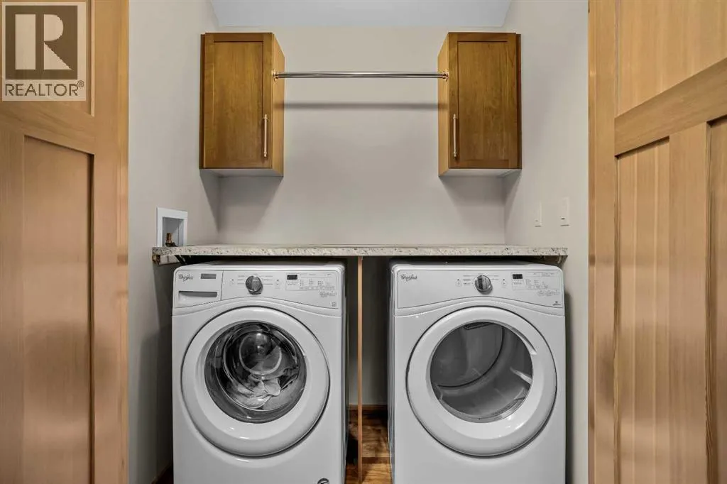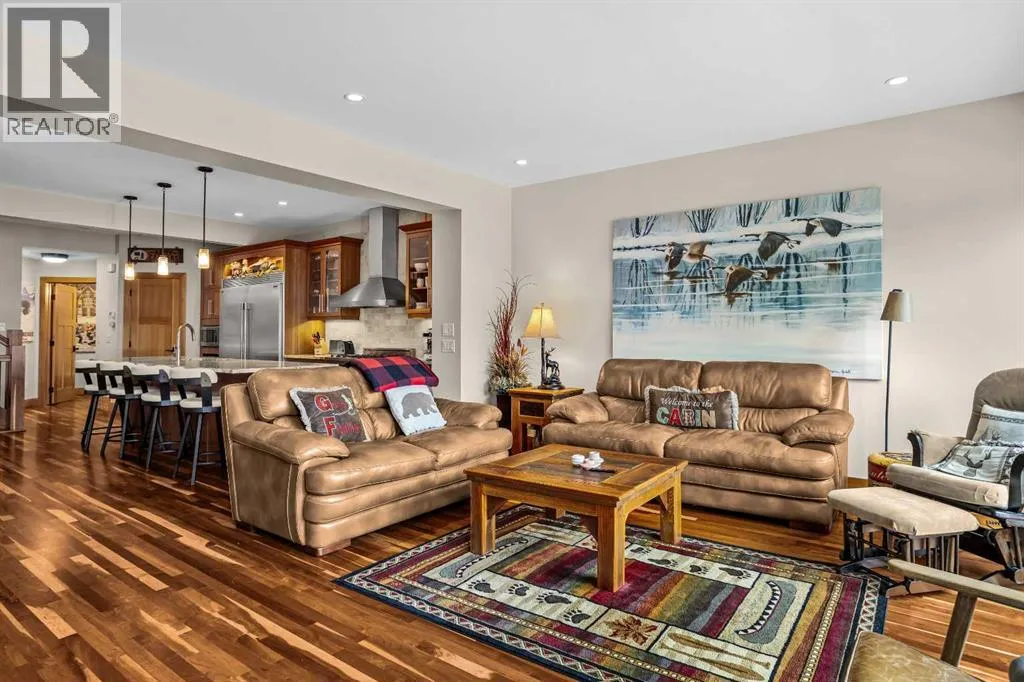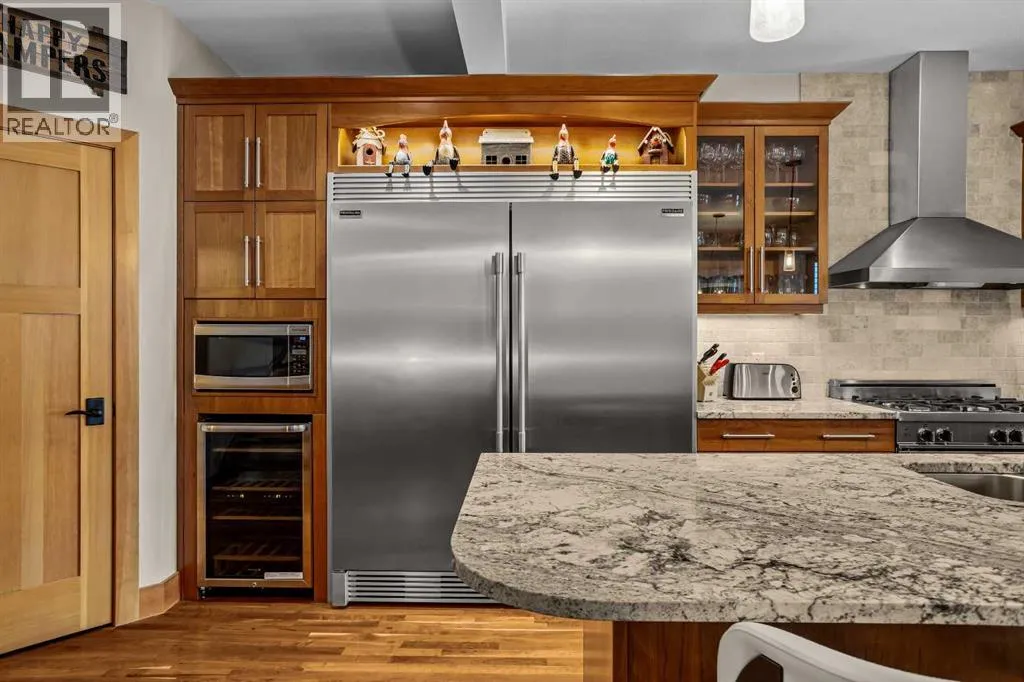 Light, space, and effortless mountain living come together in this exceptional 3-storey townhomeâone of the final 4-plex residences built by Elk Run Developments. With over 2,400 square feet, this home is designed for those who love to gather, entertain, and enjoy the Canmore lifestyle.The top level features two spacious bedrooms, each with its own ensuite, creating a peaceful retreat at the end of the day. The heart of the home is the second level, where a stunning Legacy Kitchen anchors the space with a large island, Italian range, oversized fridge/freezer, and wine fridgeâperfect for hosting dinners for 10+ in the generous dining area. Floor-to-ceiling windows fill the living room with light and open directly to the front deck.The entry level offers heated floors, a fourth bedroom with full bath, a large mudroom, and welcoming foyerâideal after a day on the trails. Four dedicated parking spots, including a double garage with epoxy flooring, make life easy.All just one block from the river pathway system and a short walk to shops and restaurants in South Canmore. Spacious, low-maintenance living designed for the mountain lifestyleâwith all furniture included, except the TV above the living room fireplace, making this a truly move-in-ready opportunity. (id:27476)