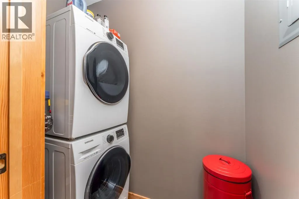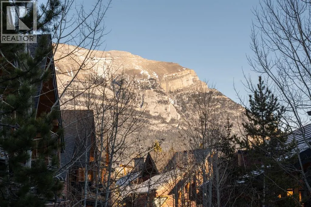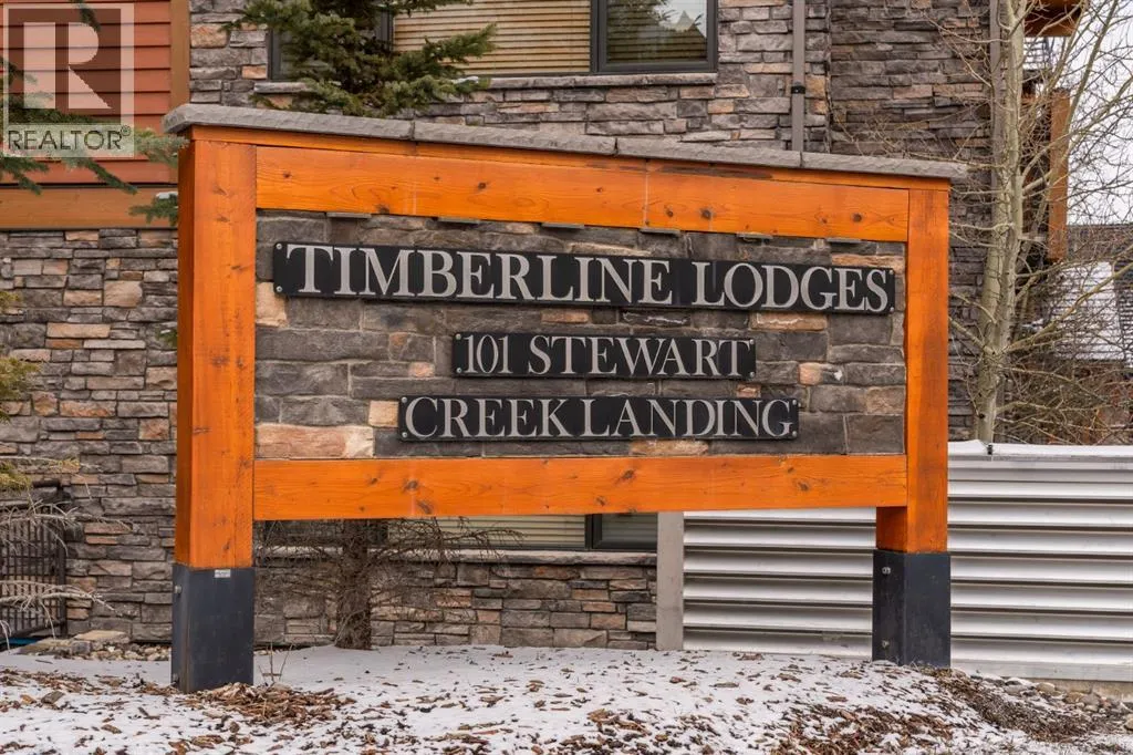 This warm and inviting 1 bedroom plus den, 2 bathroom condo features an open-concept layout highlighted by rich hardwood floors, timber accents, and a stunning stone gas fireplace that creates the perfect alpine atmosphere. The kitchen offers granite countertops, stainless steel appliances, slate tile backsplash, and a spacious eating bar ideal for entertaining. Large windows and sliding doors bring in plenty of natural light and lead to a private covered balcony where you can relax and take in the peaceful mountain surroundings. The primary bedroom features a well-appointed ensuite, while the second bedroom provides flexible space for guests, family, or a home office. Additional features include in-suite laundry, ample storage, and quality finishings throughout. Located in the desirable community of Stewart Creek, youâll enjoy easy access to walking trails, golf, and all the amenities of Canmore while being surrounded by the beauty of the Rockey Mountains. (id:27476)