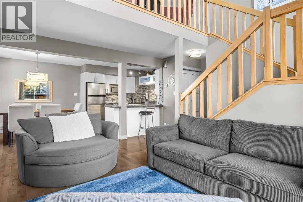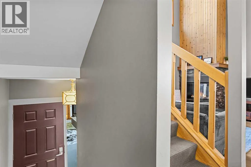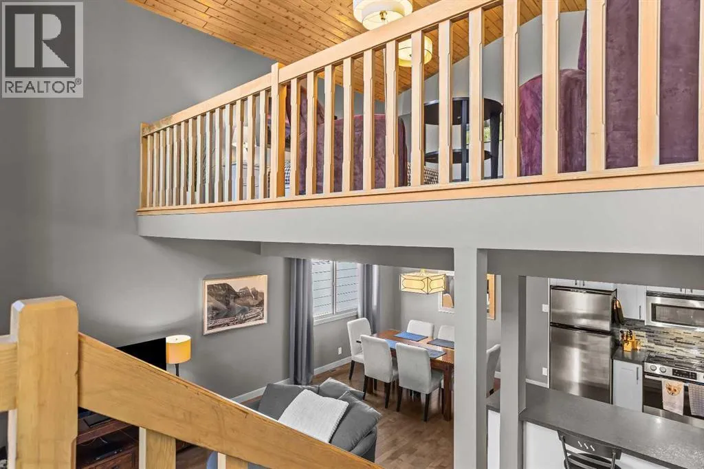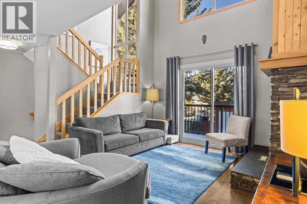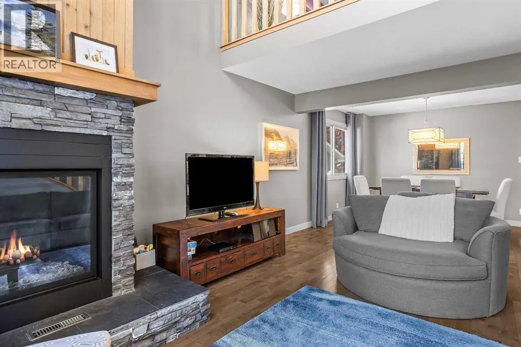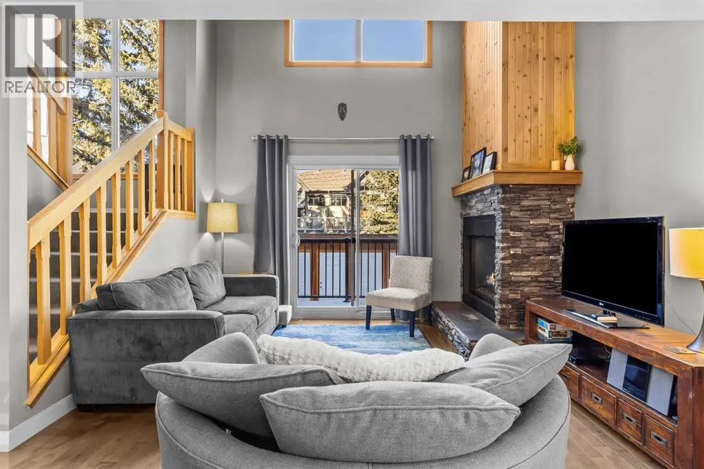Located in the heart of South Canmore, this 3-level townhome offers an exceptional location just steps from downtown Canmore, the Bow River, and nearby schools. Set in one of the communityâs most walkable neighbourhoods, the home provides convenient access to trails, parks, restaurants, and everyday amenities. The main living area features an open-concept layout with large windows that bring in abundant natural light. Hardwood flooring and traditional Canmore mountain finishes create a warm and inviting atmosphere, while the Rundle stone fireplace serves as the focal point of the living room. Above the living area, the lofted primary bedroom adds architectural character while overlooking the living space below, creating a unique and airy retreat. The three-level layout provides comfortable separation of space, ideal for both full-time living or a mountain getaway. Additional features include a parking stall located directly out front and an assigned storage shed, perfect for storing your mountain toys. A fantastic opportunity to own in South Canmore, combining classic mountain character with an unbeatable location close to the Bow River and downtown. (id:27476)