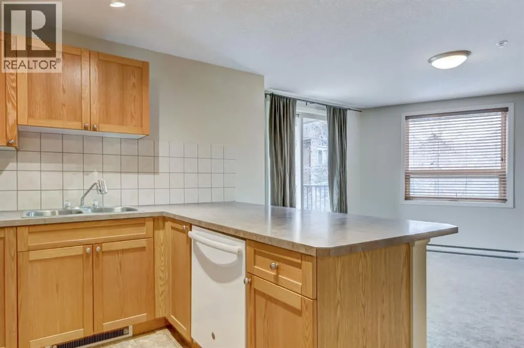 Three bedroom sunny corner unit with amazing views. This bright and newly updated three bedroom, two bathroom corner unit is impeccably maintained and filled with beautiful morning light and mountain views. Ideally positioned within the building, the home features a smart, functional layout with recent upgrades including fresh paint and new carpet throughout. The open concept kitchen and living area create a welcoming space for everyday living and entertaining, extending seamlessly onto a sunny patio. The kitchen is well designed with an eating bar and generous counter space to support all your culinary needs. Three spacious bedrooms and two full bathrooms complete the interior, offering comfort and flexibility for families, guests or a home office setup. The well managed building provides excellent shared amenities, including additional storage, assigned parking stalls, a fitness room and convenient coin laundry on every floor. Located close to downtown and many of Canmoreâs favourite shops, dining options and outdoor attractions. (id:27476)