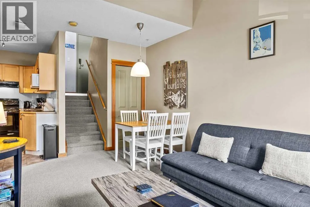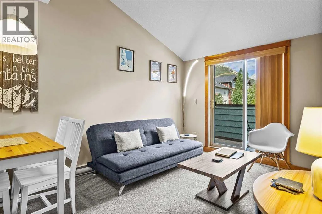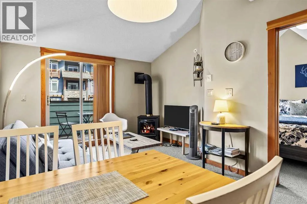 TOP FLOOR | $85K COMBINED RENTAL INCOME | Zoned for Nightly RentalsThis fully furnished 2-bed, 2-bath condo in The Lodges at Canmore offers exceptional short-term rental potential, generating $85,000 last year through Airbnb, personal, and corporate rentals. Located on the top floor, this two-level unit features an open-concept layout, gas fireplace, large windows, and a private deck with stunning Lady MacDonald views. Upstairs, enjoy a private primary suite with ensuite.Amenities include a year-round heated pool, 3 hot tubs, fitness center, heated underground parking, and secure elevator access. Just a short walk to downtown, this property is ideal as a personal getaway or high-performing rental investment. Whether youâre seeking a full-time residence, weekend retreat, or income property, this unit ticks all the boxes.All furniture is included in the sale. (id:27476)