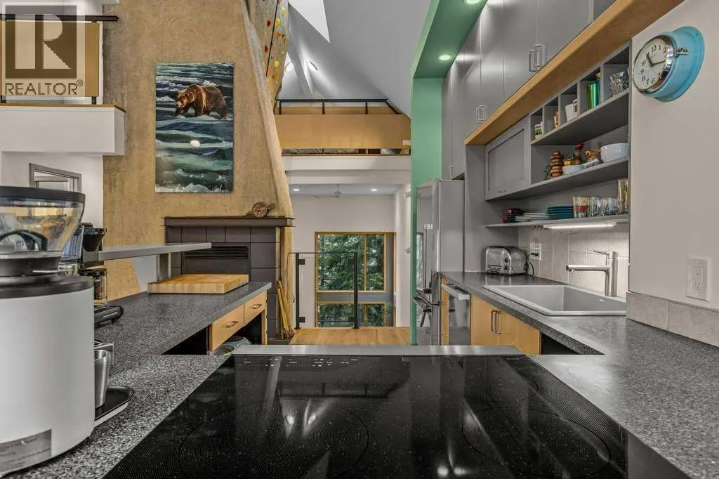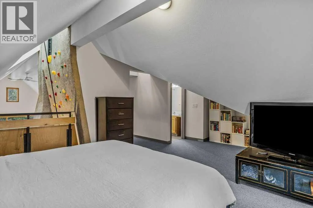 Life in The Peaks is all about maximizing light, views, and access to the outdoors, and this custom-built home captures that beautifully. With over 2200 sqft of living space, the design balances openness and function, highlighted by dramatic 35-foot ceilings and grand windows framing mountain views. The main floor is centred around a wood-burning fireplace with open kitchen and dining space. Recently updated with all new appliances, the kitchen is ready for both quiet mornings and entertaining friends. This home was built with an active lifestyle in mind, with a thoughtfully designed entryway offering practical storage, and additional space beneath the expansive deck for stowing away larger gear. The fully fenced backyard, and new front landscaping maximize your outdoor enjoyment. The homeâs most distinctive feature is the impressive 32-foot indoor climbing wall, complete with an auto belay system, as your own private training space. After a session, the steam sauna is the perfect place to recharge. Additionally, 4 bedrooms & 3 bathrooms offer flexibility for guests or home office, and the lower level enjoys in-slab heating. This is a rare opportunity to own a home that reflects the Canmore lifestyle in such a truly unique way, blending comfort, character, and adventure. This home is one you wonât want to miss! (id:27476)