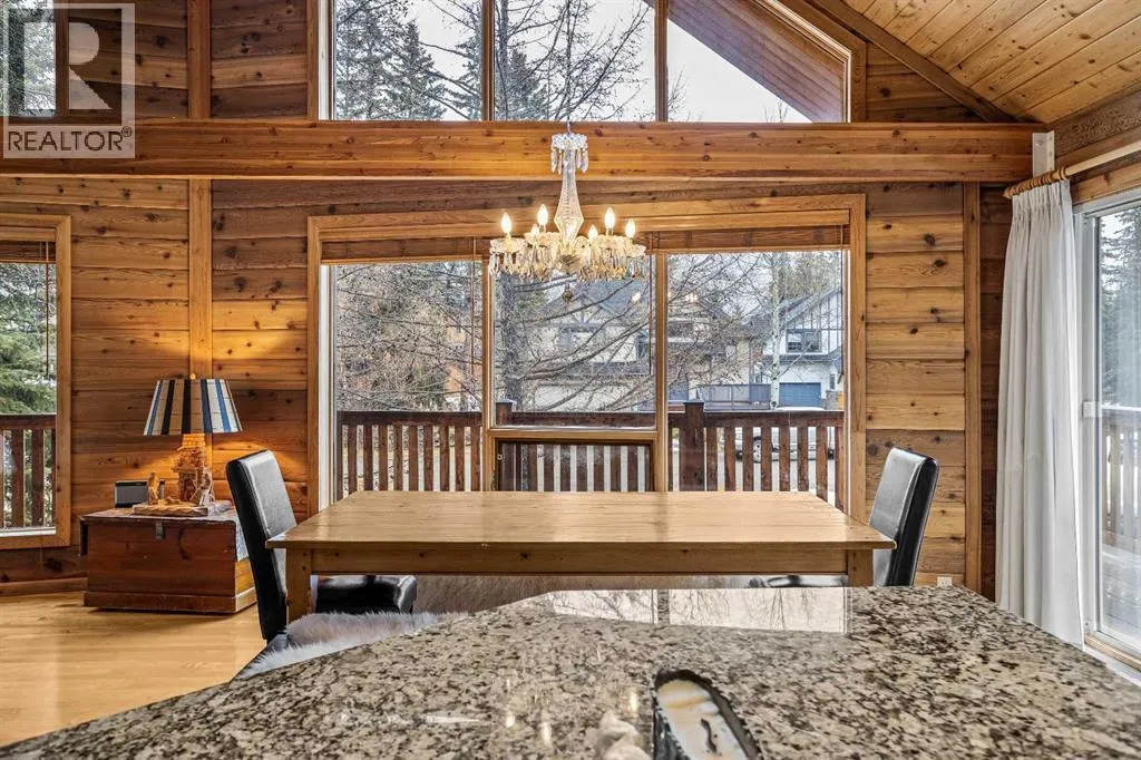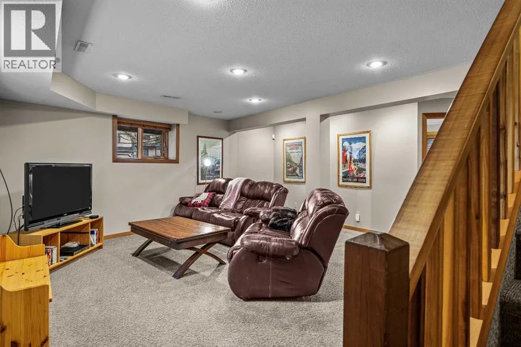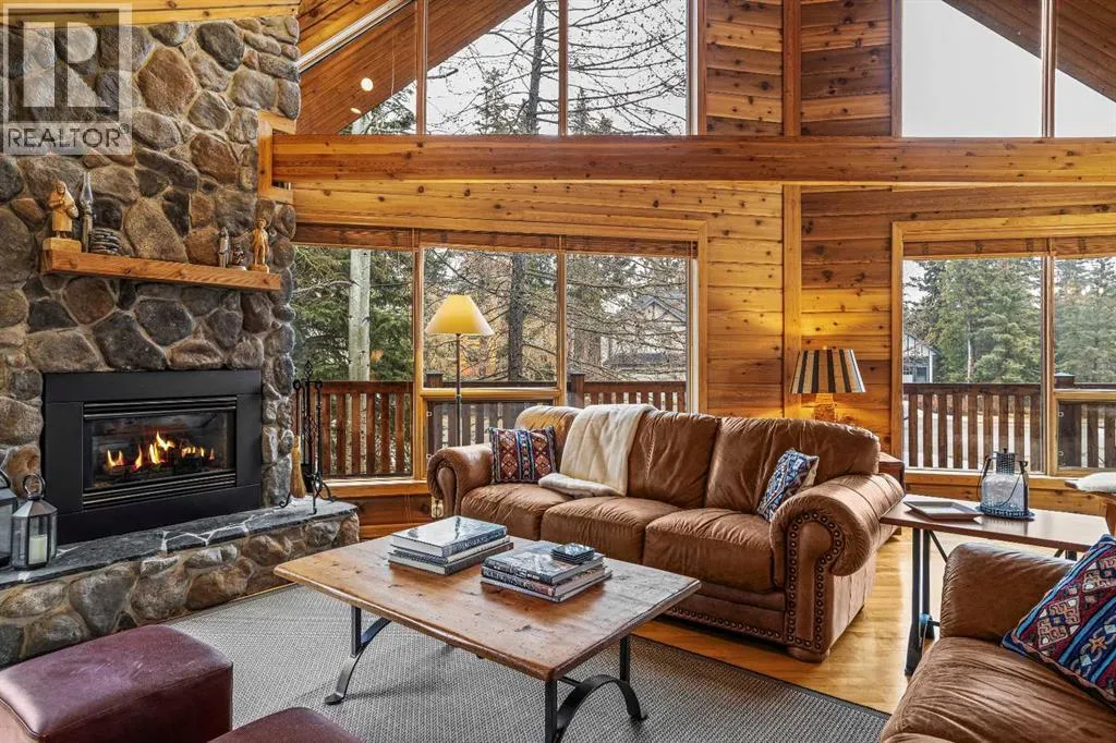 Welcome to 181 Charles Carey in Canmoreâan exceptional mountain home offering over 2,662 sq ft of thoughtfully designed living space. This stunning 5-bedroom, 4-bathroom residence blends warmth and modern comfort, highlighted by soaring ceilings and expansive floor-to-ceiling windows that flood the living room with natural light while framing breathtaking alpine surroundings. The heart of the home features a modern kitchen equipped with stainless steel appliances, perfect for both everyday living and entertaining. The inviting living area is anchored by a striking stone fireplace and complemented by rich wood paneling on the ceiling, creating a true mountain retreat ambiance. Upstairs, a cozy loft overlooks the main floor, adding flexibility and charm, while spacious bedrooms provide comfort for family and guests alike. The fully developed lower level offers a second living spaceâideal for recreation, relaxation, or hosting visitors.Outside, enjoy a wraparound deck and backyard setting, perfect for taking in Canmoreâs natural beauty. A detached two-car garage adds convenience and functionality. This is a rare opportunity to own a spacious and beautifully appointed home in one of Canmoreâs most sought-after communities (id:27476)