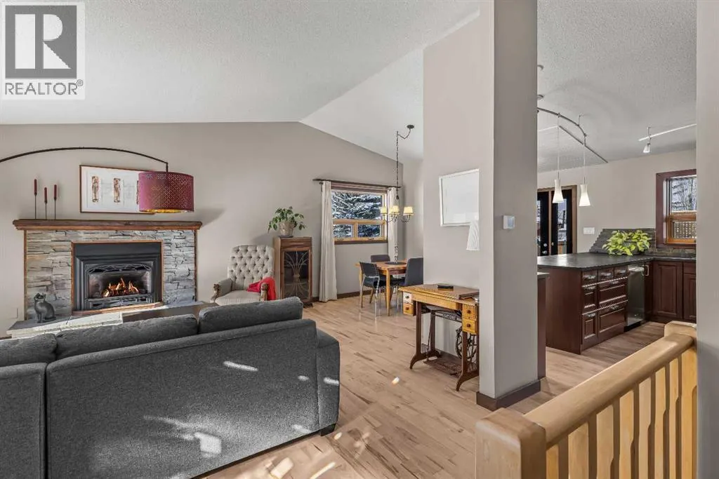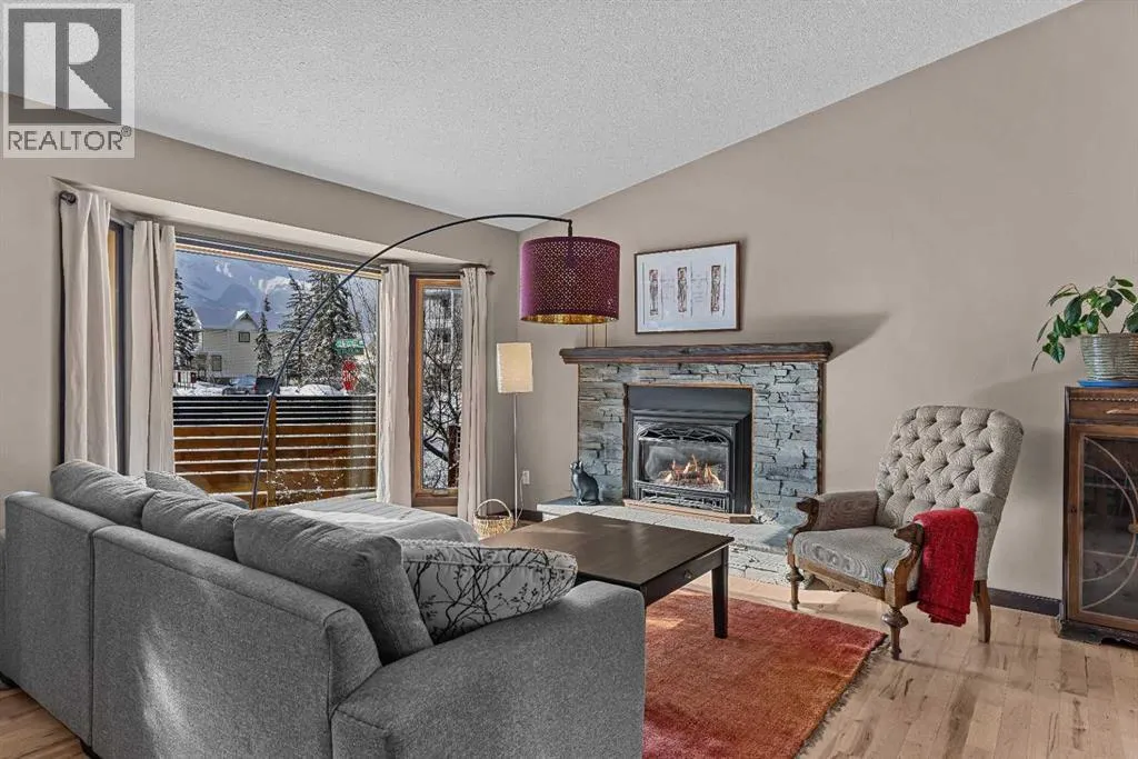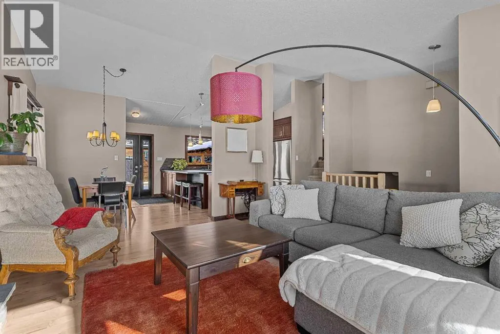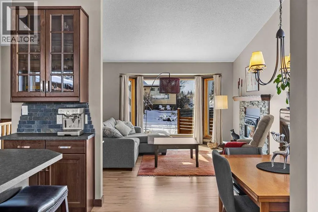 Set on a desirable corner lot on the sunny side of the valley, this Cougar Creek home offers exceptional mountain views from nearly every window and a location thatâs hard to beat just minutes from schools, trails, parks, and local shops. The open-concept main level is filled with natural light, featuring warm hardwood flooring, a slate entry, and a cozy gas fireplace that anchors the living space. The layout flows seamlessly for both everyday living and entertaining. This split-level design has just over 1,900sqft of living space and provides flexibility for growing families. Just above the main living area are two well-sized bedrooms and a full bathroom. On the lower level, youâll find a third bedroom, laundry, and an additional 3-piece bathroom. One level further down, a spacious family room with a second gas fireplace offers the perfect retreat, along with a versatile flex space ideal as a fourth bedroom, home office, or guest area. The backyard is a true highlightâthoughtfully designed with a charming gazebo and firepit area, creating an inviting space to relax or entertain. A large storage shed provides ample room for bikes, gear, and tools, while the side parking pad accommodates up to three vehicles. A well-rounded home in one of Canmoreâs most sought-after neighbourhoods, offering space, views, and lifestyle all in one. (id:27476)
