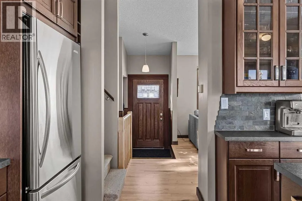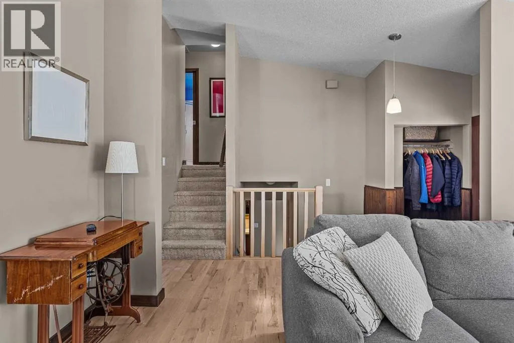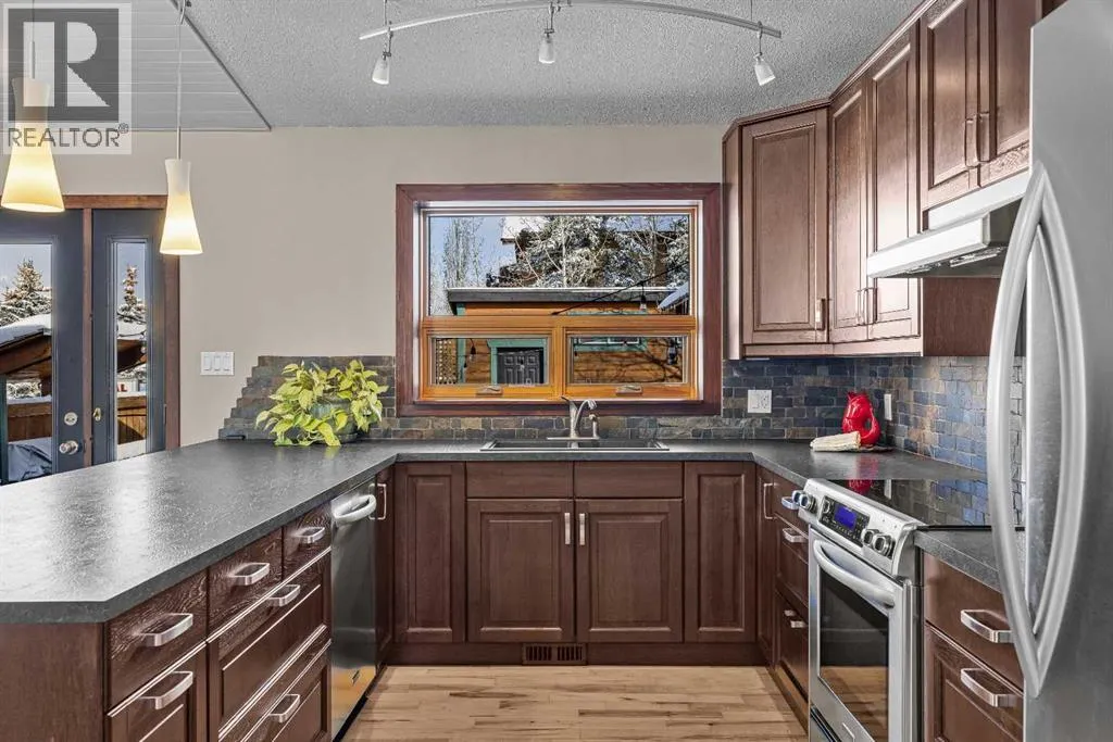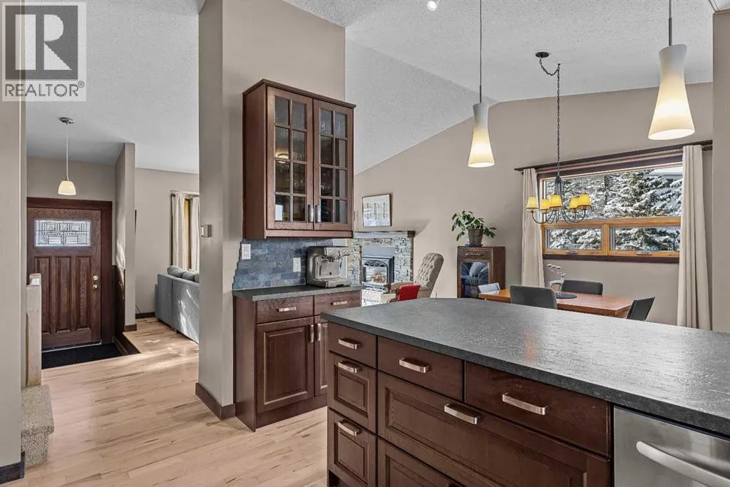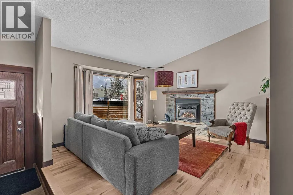 Set on a desirable corner lot on the sunny side of the valley, this Cougar Creek home offers exceptional mountain views from nearly every window and a location thatâs hard to beat just minutes from schools, trails, parks, and local shops. The open-concept main level is filled with natural light, featuring warm hardwood flooring, a slate entry, and a cozy gas fireplace that anchors the living space. The layout flows seamlessly for both everyday living and entertaining. This split-level design has just over 1,900sqft of living space and provides flexibility for growing families. Just above the main living area are two well-sized bedrooms and a full bathroom. On the lower level, youâll find a third bedroom, laundry, and an additional 3-piece bathroom. One level further down, a spacious family room with a second gas fireplace offers the perfect retreat, along with a versatile flex space ideal as a fourth bedroom, home office, or guest area. The backyard is a true highlightâthoughtfully designed with a charming gazebo and firepit area, creating an inviting space to relax or entertain. A large storage shed provides ample room for bikes, gear, and tools, while the side parking pad accommodates up to three vehicles. A well-rounded home in one of Canmoreâs most sought-after neighbourhoods, offering space, views, and lifestyle all in one. (id:27476)
