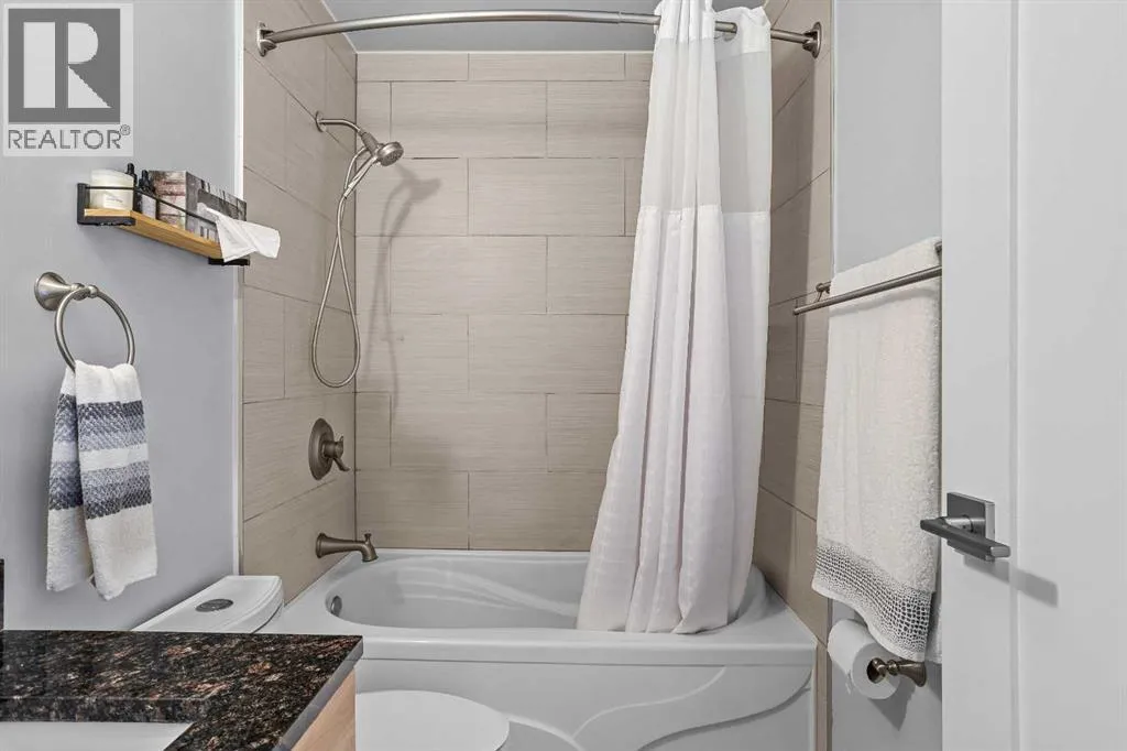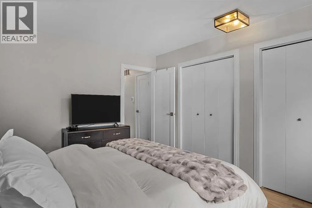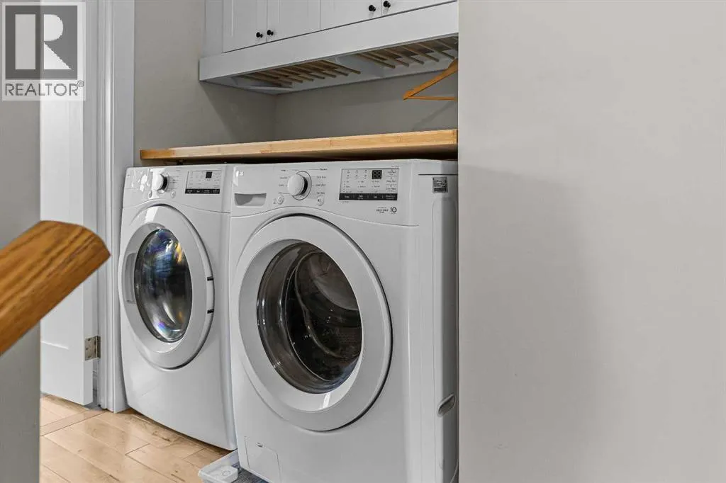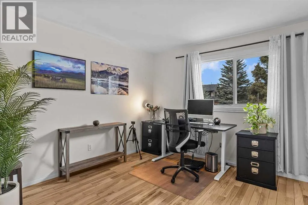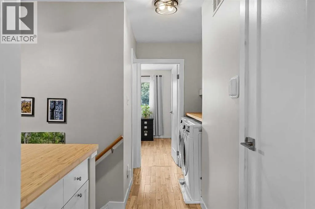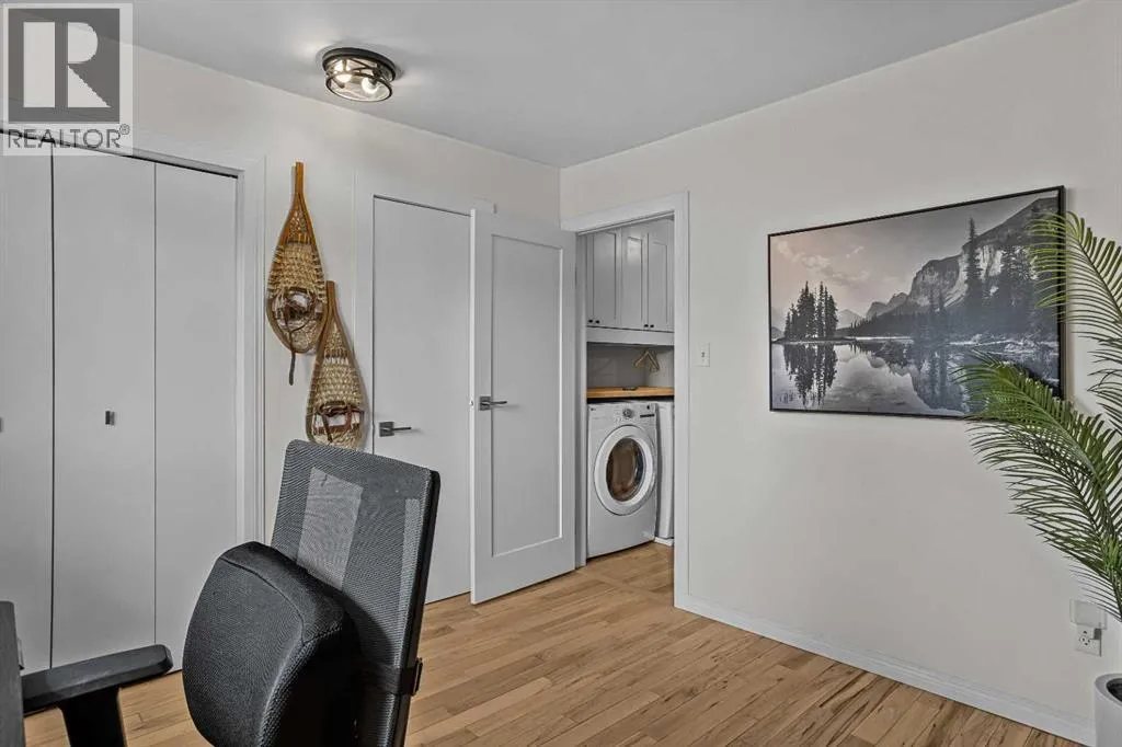 On a quiet street, only blocks from the Bow River as well as the enticing sights & sounds of Canmoreâs vibrant Main St, this mechanically & cosmetically, fully renovated 2 bed top level end unit townhome is a âturnkeyâ stand-out. Entering from ground level, the landing leads up to a spacious & completely remodelled eat-in kitchen. Light & bright finishes gleam as sun pours in through recently replaced south-facing windows. New flooring & smooth, âpaint gradeâ ceilings transition to the living room in a seamless fashion. Here, an airtight wood-burning stove is a major upgrade from the original fireplace & is a wonderful focal point in this restful space. Through new sliding doors, a covered deck adds outdoor living space where convenient stairs take you to the rear yard of the complex. Up stairs flanked in new handrails, you arrive at a broad landing complete with side-by-side laundry, storage & a convenient laundry folding area. The mechanical room contains a new furnace & hot water tank. The bedrooms are a hallmark of a time when developers built more generous floor plans, where the primary bedroom size rivals those in far more costly homes. The second bedroom is also comfortably proportioned. Both share a 4-pc bathroom with designer touches. One off street parking space, a sizable storage shed, all in a well-managed corporation offers value second to none. (id:27476)