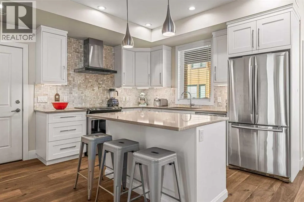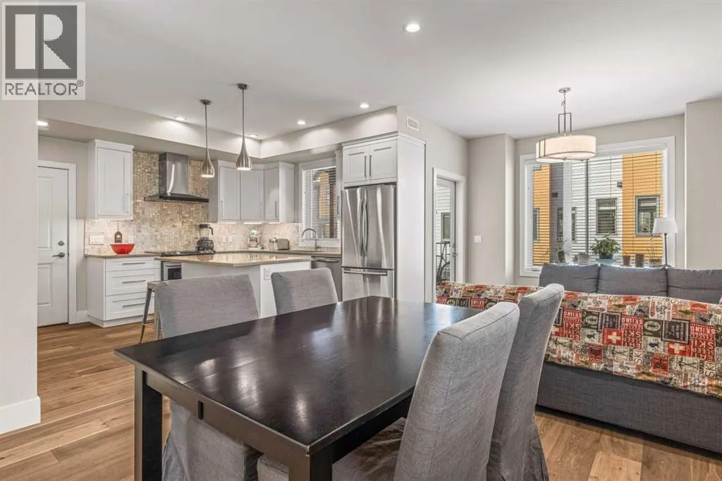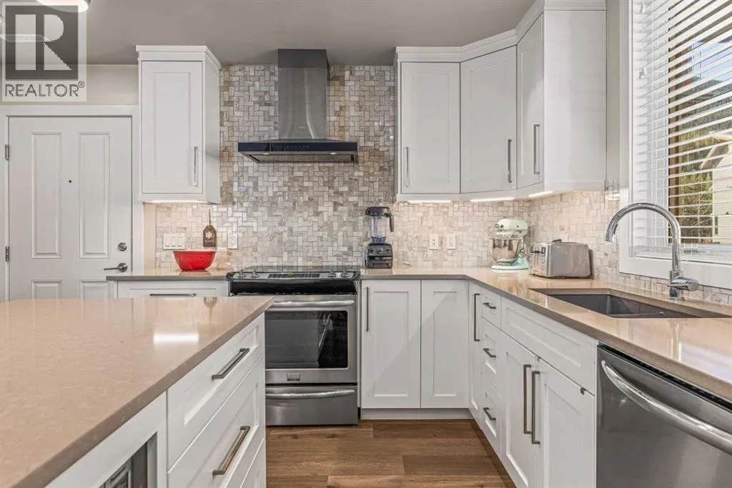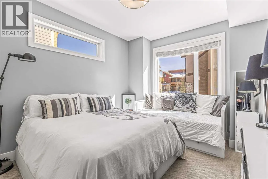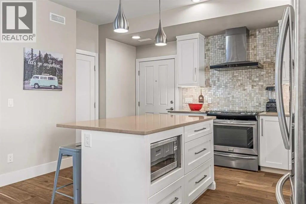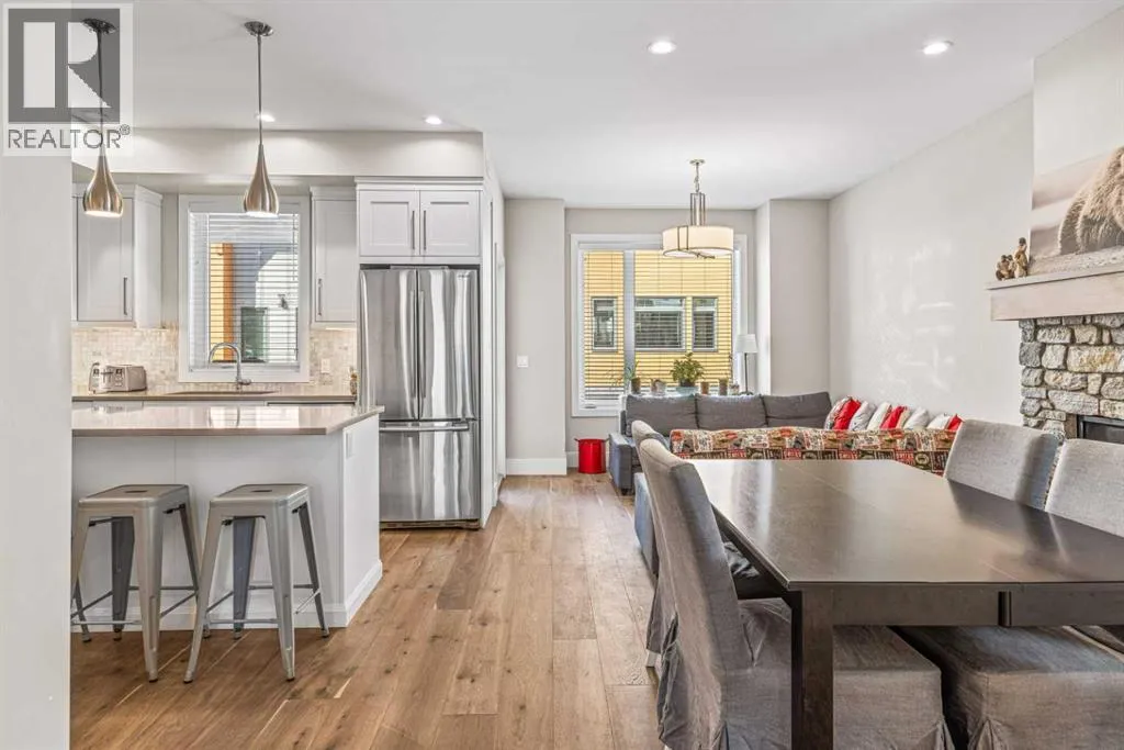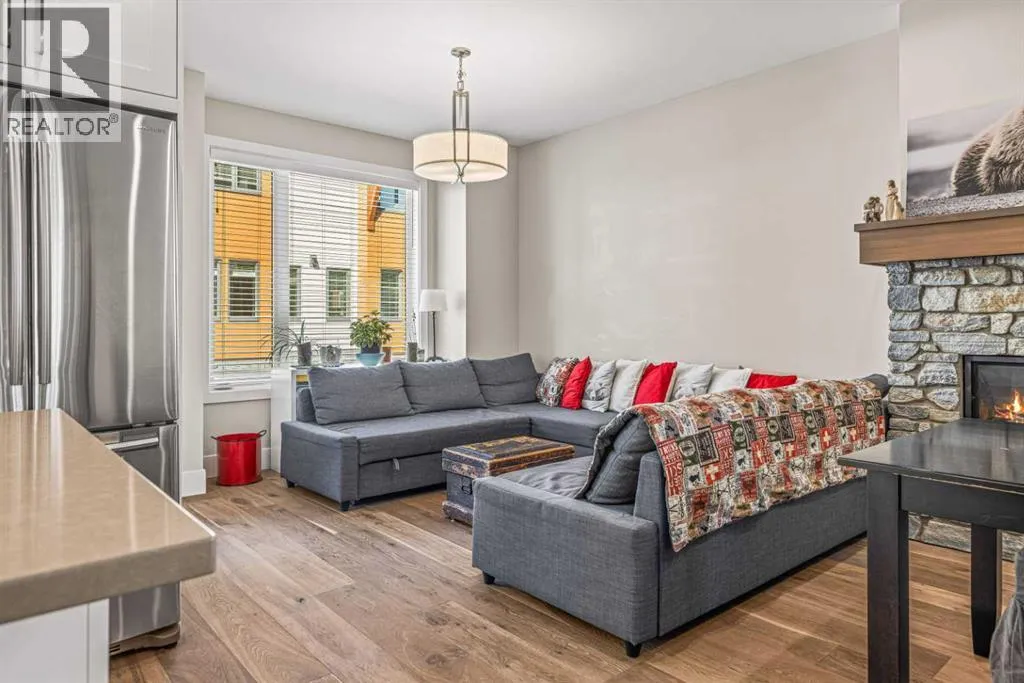 Located in the highly desirable Three Sisters Mountain Village, this meticulously maintained single-level end unit presents an open-concept floor plan with modern finishes. The kitchen boasts sleek quartz countertops, stainless steel appliances, and luxury vinyl plank flooring, seamlessly extending to the spacious deck. The unit features two large bedrooms and two bathrooms, with lovely mountain views. Residents enjoy easy access to nearby hiking and biking trails, playgrounds, the renowned Stewart Creek Golf Course, and in close proximity to âThe Gatewayâ commercial space, which promises an IGA along with additional amenities. The property includes a single attached garage and a separate heated gear and storage area, ideal for full-time living or a weekend retreatâall complemented by low condo fees! (id:27476)