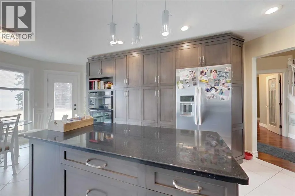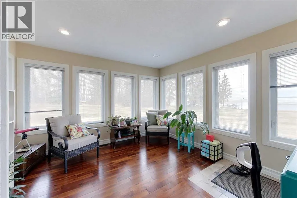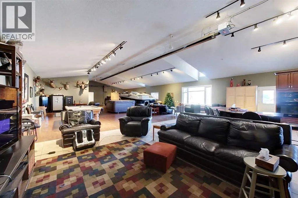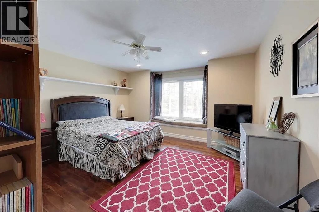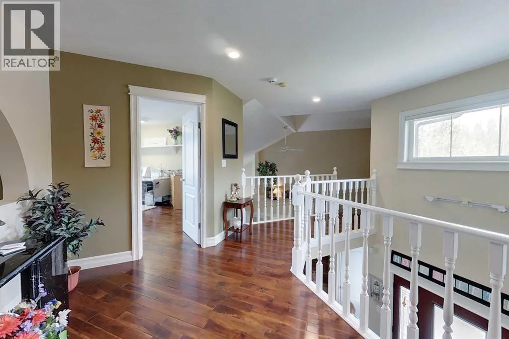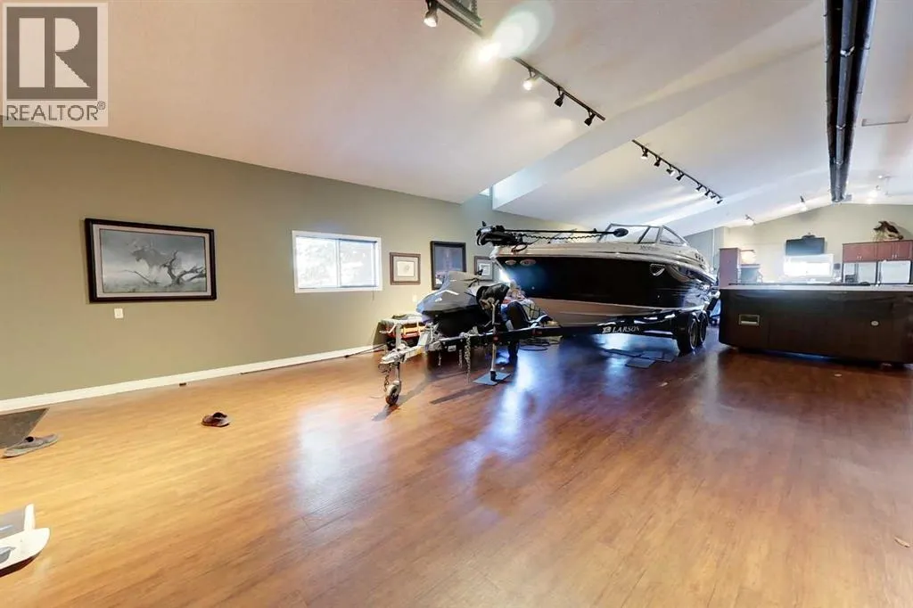 Yowza! Executive Lakefront Living with Every Feature You Could Dream Of â And More! This extraordinary 3700+ sqft estate in Executive Estates, Canyon Creek is truly one-of-a-kind. Nestled on a breathtaking lakefront 3.8-acre lot, this property combines luxury, functionality, and outdoor adventure like no other. The main home offers 4 bedrooms and 4 bathrooms, including a spacious primary suite with hardwood floors, soaker tub, stand-up shower, and stunning lake-facing windows. The chefâs kitchen is a showstopper with rich dark walnut cabinetry, granite countertops, built-in oven, microwave hood fan, countertop stove, and a sunny breakfast nook overlooking the lake. A four-season sunroom adds to the charm and provides year-round relaxation. The original attached garage has been thoughtfully converted into a bright and expansive family room, complete with porcelain tile flooring, large windows, and a cozy pellet stove. Also on the main floor: a home office with built-in cabinetry, laundry room, and a 3-pc bath with a built-in sauna. Head upstairs to find three more generously sized bedrooms and a full bath, all connected by a unique hallway cut-out feature that overlooks the main level. The basement boasts an additional bedroom, a 4-pc bathroom, and a large recreation roomâperfect for family movie nights or guests. Outside, this property is an entertainerâs dream: "Toyshop" building with full kitchen, bedroom, and room to park your RVs, quads, or snowmobilesâplus a covered patio for BBQs and gatherings; Detached double garage; a Massive 4-bay woodshop with a walk-in cooler and hooks for the hunting enthusiast; Asphalt driveway leads to all buildings, offering convenience and a clean aesthetic; Backup generator for peace of mind; Rubber shingles on all buildings for uniformity and function, the hot tub on the deck for ultimate relaxation; Underground sprinkler system with 100% coverage of the entire property. Whether you're a hobbyist, entertainer, nature lover, or a ll of the above, this property delivers luxury, space, privacy, and functionality in equal measure. This is more than a homeâitâs a lifestyle. You have to see this property, and experience the unmatched value of this Canyon Creek gem! (id:27476)
