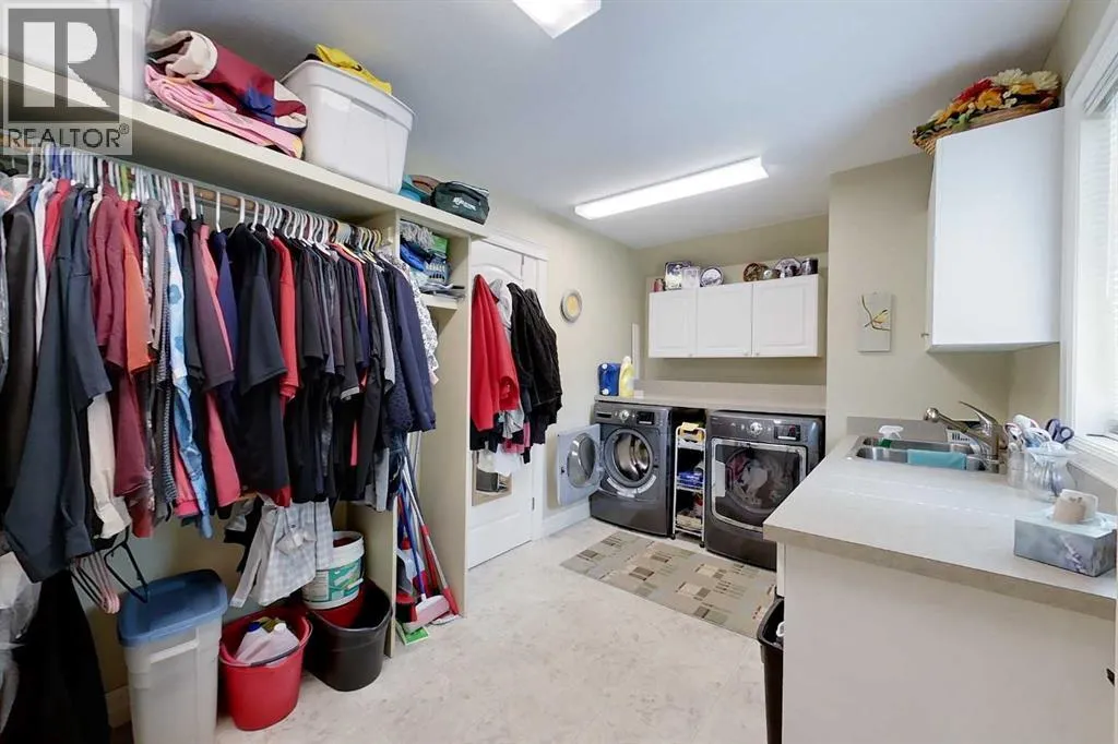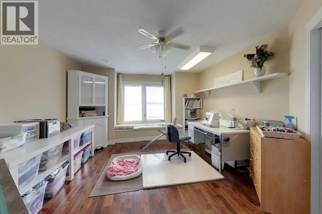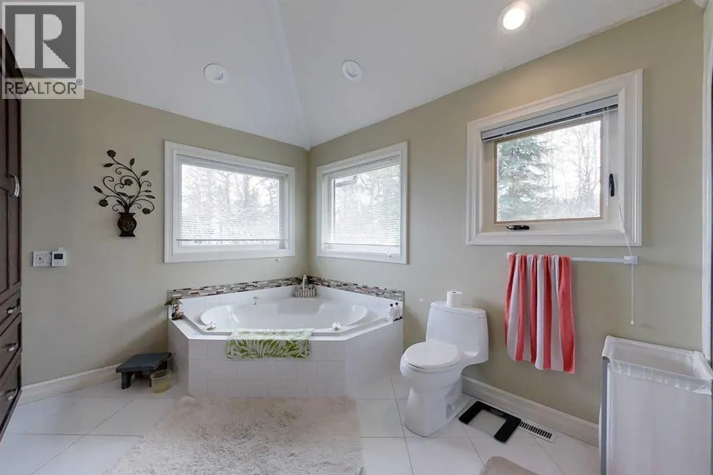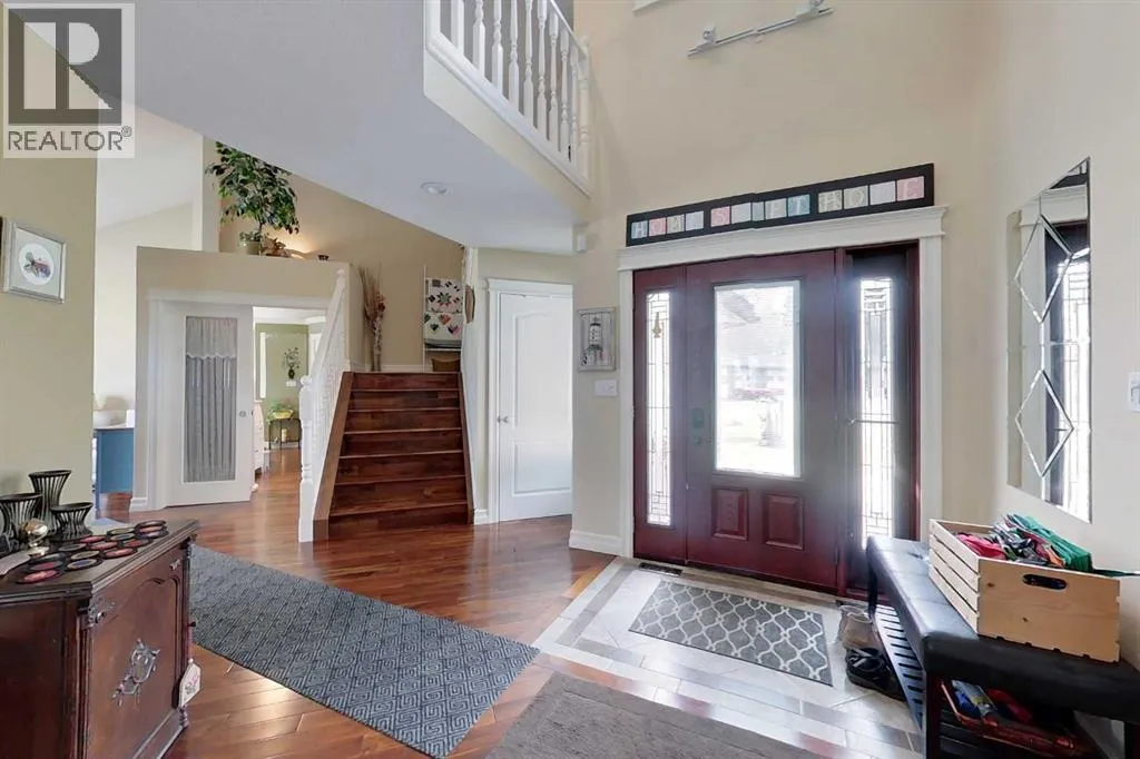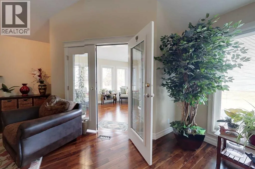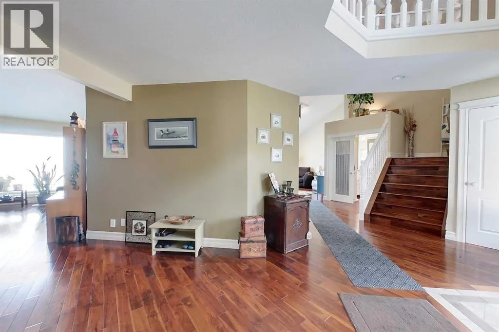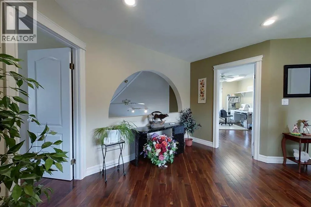 Yowza! Executive Lakefront Living with Every Feature You Could Dream Of â And More! This extraordinary 3700+ sqft estate in Executive Estates, Canyon Creek is truly one-of-a-kind. Nestled on a breathtaking lakefront 3.8-acre lot, this property combines luxury, functionality, and outdoor adventure like no other. The main home offers 4 bedrooms and 4 bathrooms, including a spacious primary suite with hardwood floors, soaker tub, stand-up shower, and stunning lake-facing windows. The chefâs kitchen is a showstopper with rich dark walnut cabinetry, granite countertops, built-in oven, microwave hood fan, countertop stove, and a sunny breakfast nook overlooking the lake. A four-season sunroom adds to the charm and provides year-round relaxation. The original attached garage has been thoughtfully converted into a bright and expansive family room, complete with porcelain tile flooring, large windows, and a cozy pellet stove. Also on the main floor: a home office with built-in cabinetry, laundry room, and a 3-pc bath with a built-in sauna. Head upstairs to find three more generously sized bedrooms and a full bath, all connected by a unique hallway cut-out feature that overlooks the main level. The basement boasts an additional bedroom, a 4-pc bathroom, and a large recreation roomâperfect for family movie nights or guests. Outside, this property is an entertainerâs dream: "Toyshop" building with full kitchen, bedroom, and room to park your RVs, quads, or snowmobilesâplus a covered patio for BBQs and gatherings; Detached double garage; a Massive 4-bay woodshop with a walk-in cooler and hooks for the hunting enthusiast; Asphalt driveway leads to all buildings, offering convenience and a clean aesthetic; Backup generator for peace of mind; Rubber shingles on all buildings for uniformity and function, the hot tub on the deck for ultimate relaxation; Underground sprinkler system with 100% coverage of the entire property. Whether you're a hobbyist, entertainer, nature lover, or a ll of the above, this property delivers luxury, space, privacy, and functionality in equal measure. This is more than a homeâitâs a lifestyle. You have to see this property, and experience the unmatched value of this Canyon Creek gem! (id:27476)
