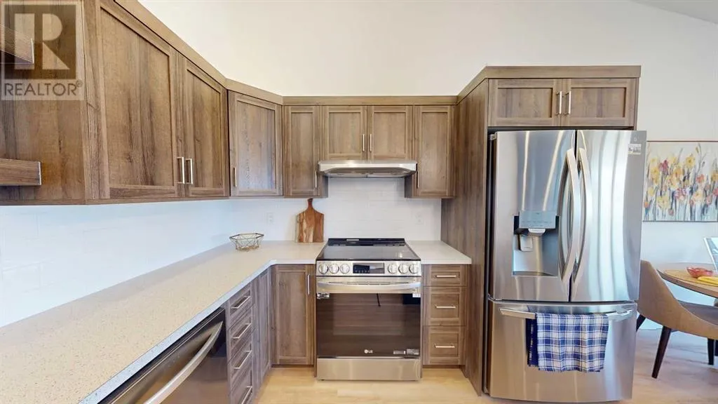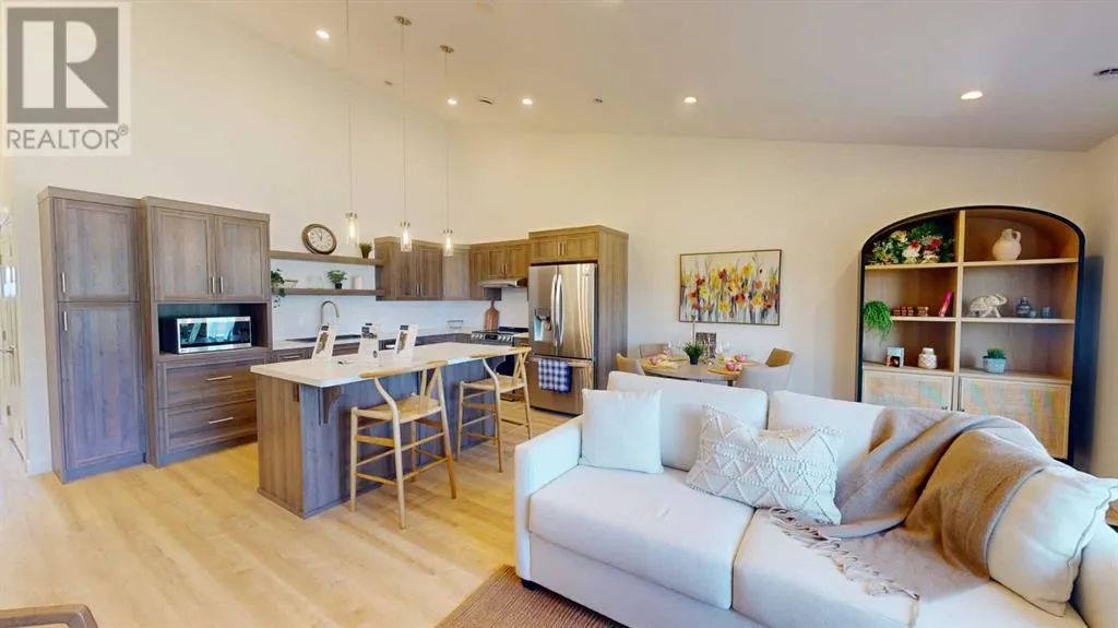 *PLEASE SEE THE 3D TOUR* *PLEASE ASK ABOUT POTENTIAL UPGRADES OR ADD-ONS*Welcome to Cottonwood Creek Cardston's “The Poplar”. The Perfect home for those who want to simplify their lives without sacrificing style and function. At 1173 sq. ft., The Poplar has everything you need to live comfortably through all the stages of your life. All doors are 36” wide to allow easy access to each room, with no Steps, no stairs, and no barriers anywhere! As you enter the home and turn right you will find a spacious bedroom with a vaulted ceiling. Right outside of this room is a four-piece bathroom with a tub and shower and outside the bathroom is your new stacked washer & dryer. Continuing inside the unit the primary bedroom also has a vaulted ceiling and is very spacious. The primary bedroom features an en-suite with an easily accessible toilet and a curbless shower. Featured in these units is a secret storage compartment located above the ensuite bathroom, this area is perfect for storing all your extra belongings and keeping them out of the way of your everyday life. Outside of the primary bedroom is the beautiful open concept kitchen, dining area and living room that are perfect for entertaining family and friends. The lovely kitchen has an island and plenty of cupboards, a large pantry and counter space for preparing your favourite meals. The open layout mixed with the beautiful windows and vaulted ceilings keep everything feeling light and spacious all day long.Added features such as the in-floor heating system will keep you cozy during those chilly winter days with the benefit of multiple heating control zones and heat recovery ventilation. There is even a rough-in for A/C. You will find plenty of storage space in the oversized single car garage for your needs, with optional additional storage lofts available. You’ll also love staying connected to friends and neighbors while enjoying a BBQ on your durable concrete patio, accessible from your dining area. This lovely hom e is a dream to live in and so easy to maintain due to its premium finishes. Careful thought and design have gone into every aspect of this home. This is the home you’ve been dreaming about! Book your showing today and come see what Cottonwood Creek is all about! (id:27476)