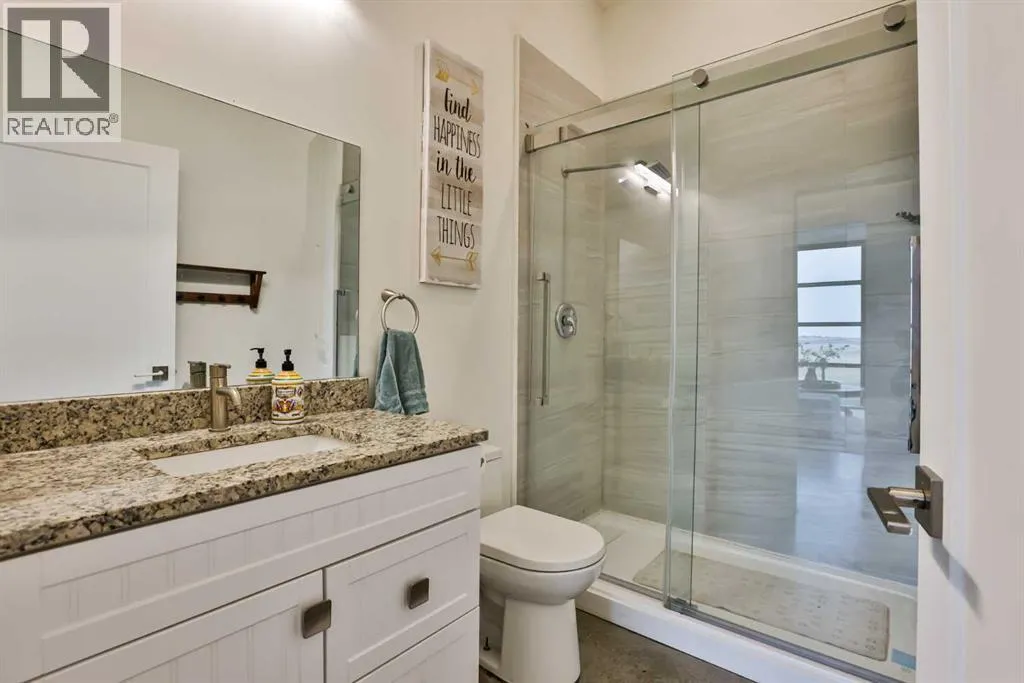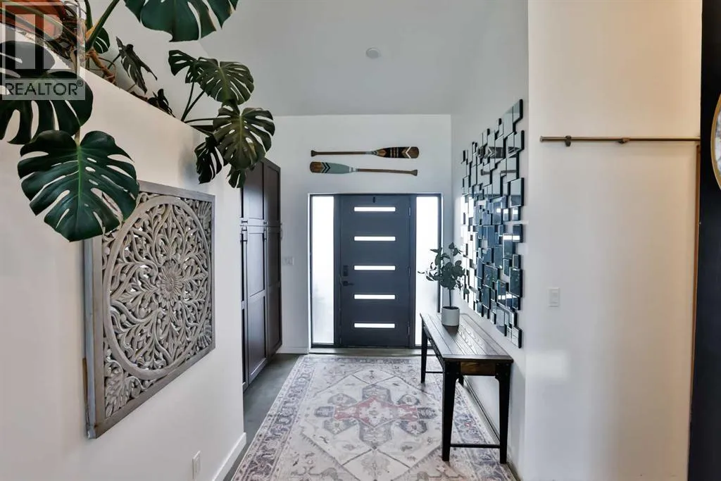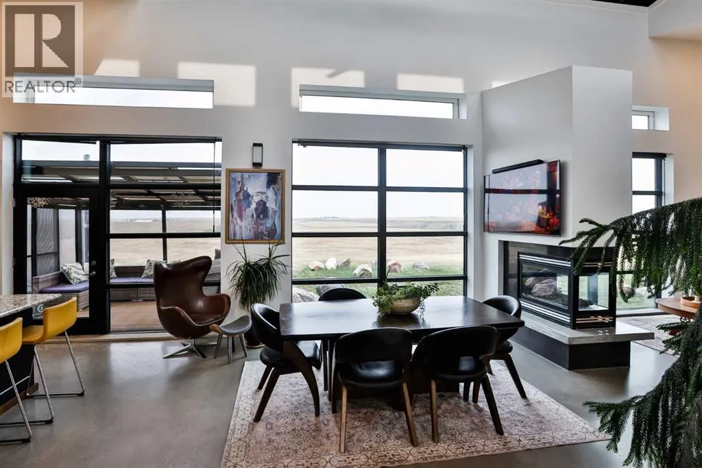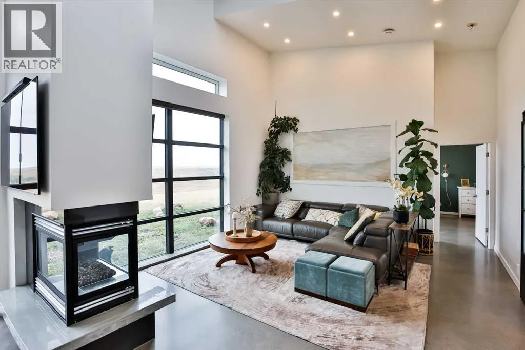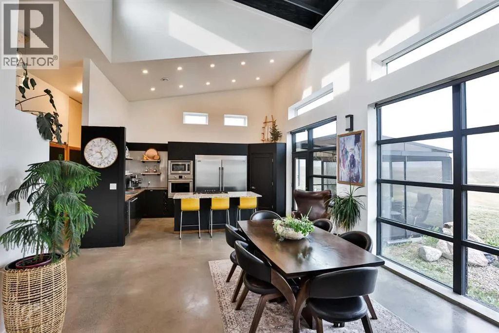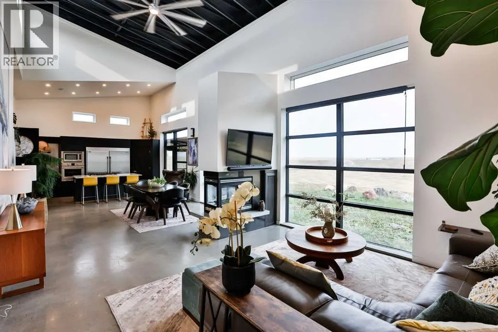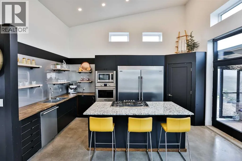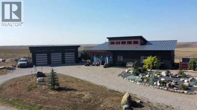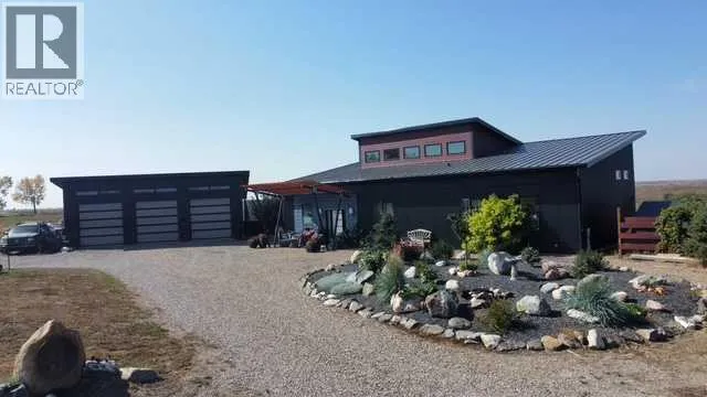 Welcome to 309 Alta Vista Blvd., a modern ranch-style oasis perfectly situated on 13.49 picturesque acres in Carmangay, Alberta. Backing onto the serene Coulee and the soothing flow of Little Bow River, this property offers the intimate charm of small-town living with all the comforts of modern designâonly 40 minutes from Lethbridge and 15 minutes from Vulcan.Built in 2018, the slightly over 1,700 ft² bungalow marries contemporary style with top-tier construction. The home features durable ICF block walls paired with Lux triple pane windows and spray foam insulation, ensuring energy efficiency and year-round comfort. Enjoy the luxury of in-floor heating and a state-of-the-art HRV system that circulates fresh air throughout the residence. An on-demand hot water system and 200 amp service. Step inside to discover a modern aesthetic defined by concrete floors, a shed roof vault design with additional transom windows, and a striking three-sided fireplace that creates a captivating focal point in the living area. The expansive kitchen is designed for the modern chef, boasting a built-in fridge & freezer, wall oven & microwave, five-burner gas cooktop, butcher block countertops, granite counters, stainless steel backsplash, and a convenient corner pantryâperfect for gourmet gatherings and everyday meal prep.The soaring ceilings flow gracefully into the primary bedroom, a tranquil retreat with awe-inspiring views of the coulee. Elegant barn doors separate the spacious closets, the ensuite has double sinks, a large tiled shower and a thoughtfully placed window flood the space with natural light. Two additional bedrooms, divided by a stylish black metal and glass barn door, share a full bathroom featuring a generous five-foot tile shower, ensuring ample space for family or guests. Practicality meets design with abundant built-in storage right from the welcoming entrance, complemented by a laundry room and a discreet mechanical room tucked behind the kitchen. For those loo king to harness the beauty of nature, the property offers access to the river. All the conveniences of modern town living are at your fingertips with in-town water. Outside, enjoy low maintenance yet eye-catching curb appeal. The exterior is finished in dark, rich colours accented with textured steel details. A detached triple-car garage spans an impressive 32 feet wide by 24 feet deep, featuring three overhead doorsâone operated remotelyâfor all your storage and vehicle needs. Between the home and garage, a specially protected area hosts a hot tub, windscreen, and fire pit area, creating an ideal outdoor retreat.The natural landscaping around the house artfully blends with the surrounding coulees. Larger decorative shrubs add captivating texture while maintaining a seamless connection to the land, making this property a perfect sanctuary for those who appreciate modern comforts amid rustic beauty. (id:27476)
