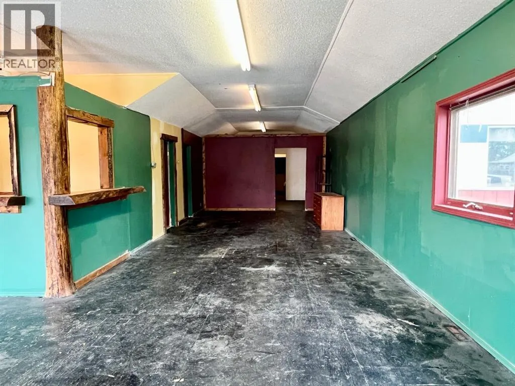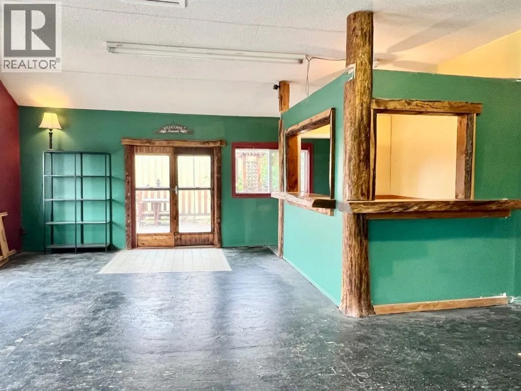 Excellent main-street commercial and live/work opportunity in Caroline. Located between the grocery store and the library for high visibility and foot traffic. Approximately 2,000 sq ft offering flexible space with front reception / retail area, large rear work shop or storage area, plus full kitchen, full bath, and living quarters with side deck and yard. Residential use is permitted if business is maintained. Rear parking and storage, plus street parking at the front. An ideal, versatile space with multiple potential uses. (id:27476)