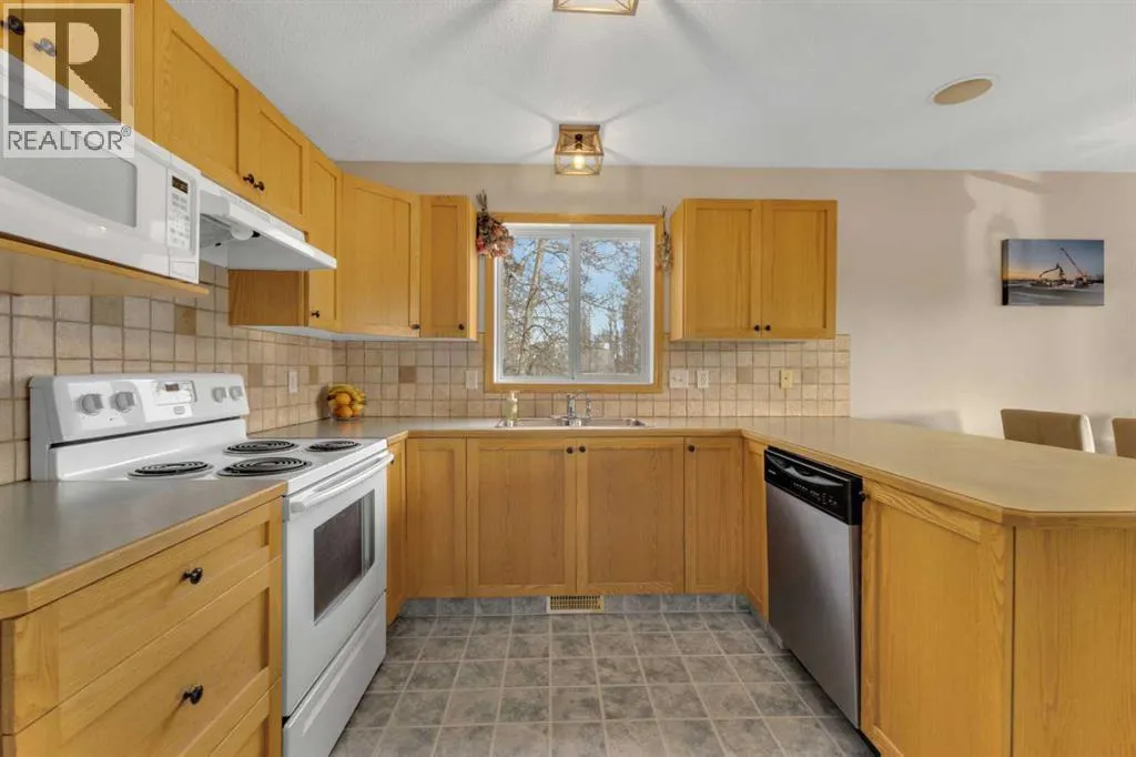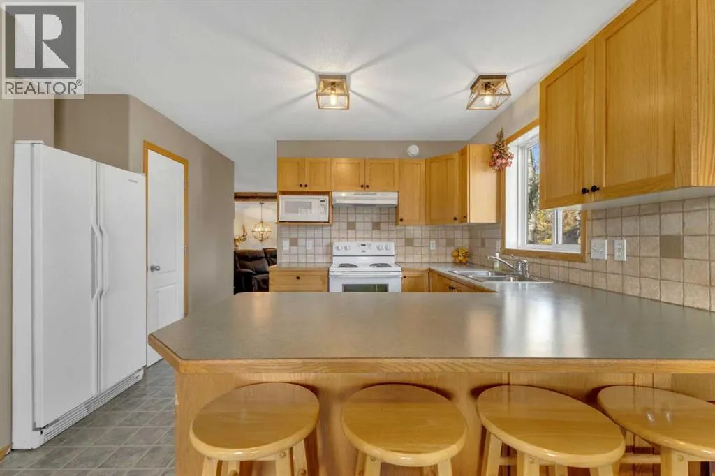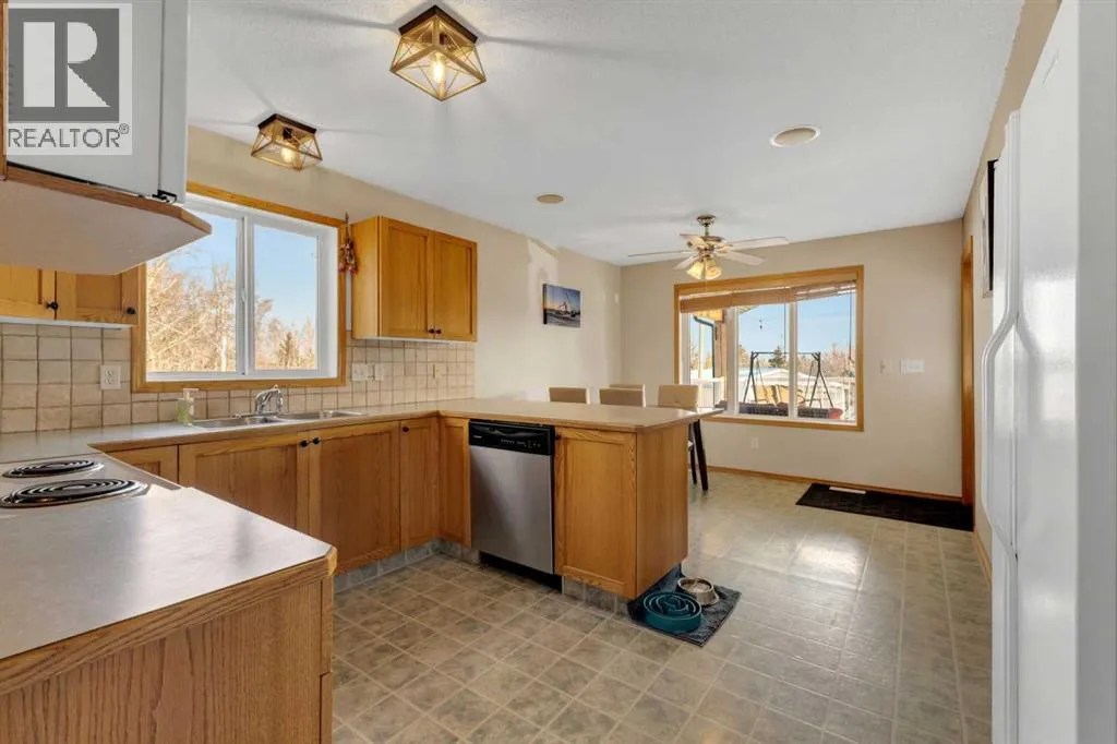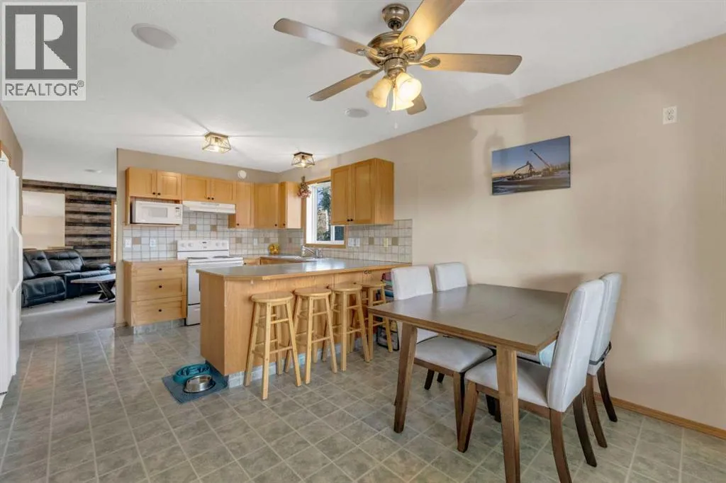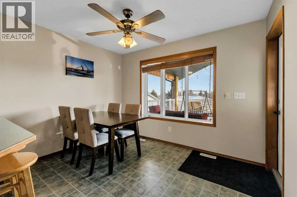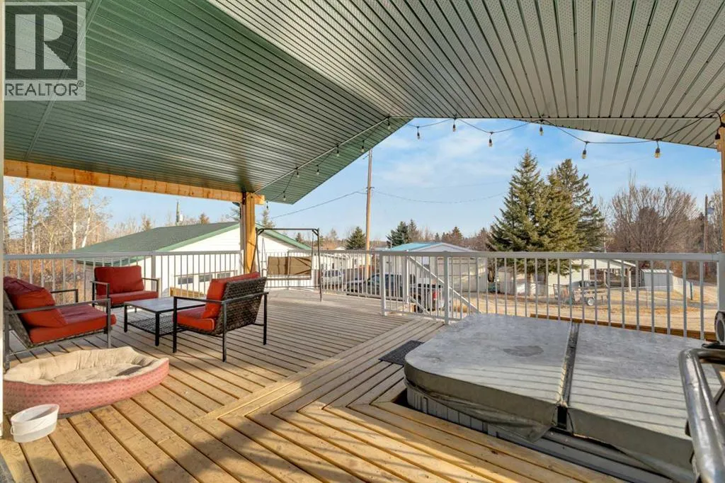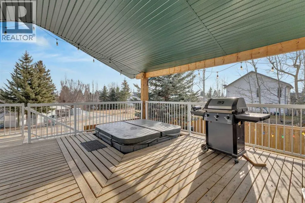 Welcome to this beautiful and meticulously maintained property in the charming Village of Caroline, AB â an incredible lot offering a country-like feel with the convenience of municipal services. From the moment you step inside, the pride of ownership is unmistakable.Heading upstairs, youâre greeted by a sizeable and inviting living room that sets a warm, welcoming tone. The efficient kitchen features oak cabinets, a tile backsplash, and a bright dining area with plenty of room for hosting dinners or family get-togethers. The upper level also includes two bedrooms, including the primary, as well as a 4-piece bathroom.Moving downstairs, the fully developed walkup basement offers a spacious second family room â perfect for movie nights, watching sports, or entertaining friends. Youâll also find the third bedroom, an additional 4-piece bathroom, and a cozy natural gas fireplace that adds to the comfort of the space.Outside, this property truly shines. Enjoy the oversized (18x28) covered rear deck complete with a sunken hot tub, ideal for relaxing year-round. The 30x28 detached garage features 220 power and an overhead natural gas furnace, making it perfect for vehicles, projects, or additional storage. Thereâs ample RV and off-street parking, mature landscaping, and an inviting outdoor firepit area. This property offers space, comfort, and a peaceful setting â a must-see to be fully appreciated! (id:27476)