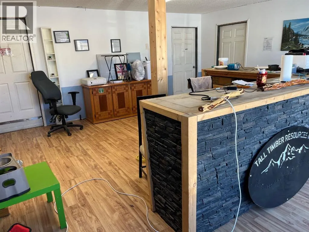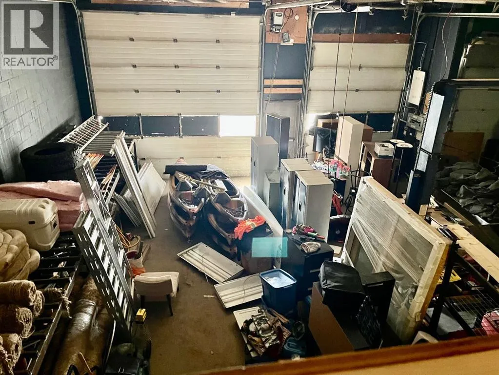 Commercial building on main street in Caroline. Lots of opportunity here with the front being all retail space and windows visible to main street. The back of the building houses 3 big bays 17X59, 12X43, 19X34 with over head doors being 12 and 14 feet. This building has a mezzanine (45X50) with room for storage, office space and accommodations. The front half is currently set-up as office space, kitchen and washroom. Beautiful updated board-room or office space with gas fireplace is an ideal space. In the loft area there is a bedroom space, 3 office spaces and 2 lounging areas. Some recent improvements include; paint, laminate flooring, furnace, a/c, electrical panel, updated washrooms (3-pce. w. shower & 2-pce.), sound proof insulation above the board room. Lots of room for many types of businesses. The building was used for a delivery business and mechanics shop. (id:27476)